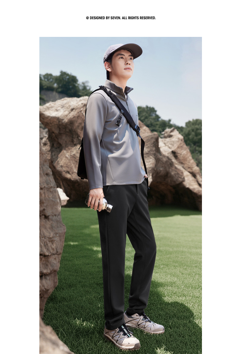 【四面弹/3D复合羽绒】柒牌休闲裤男2025冬季新款直筒休闲长裤子129H71130