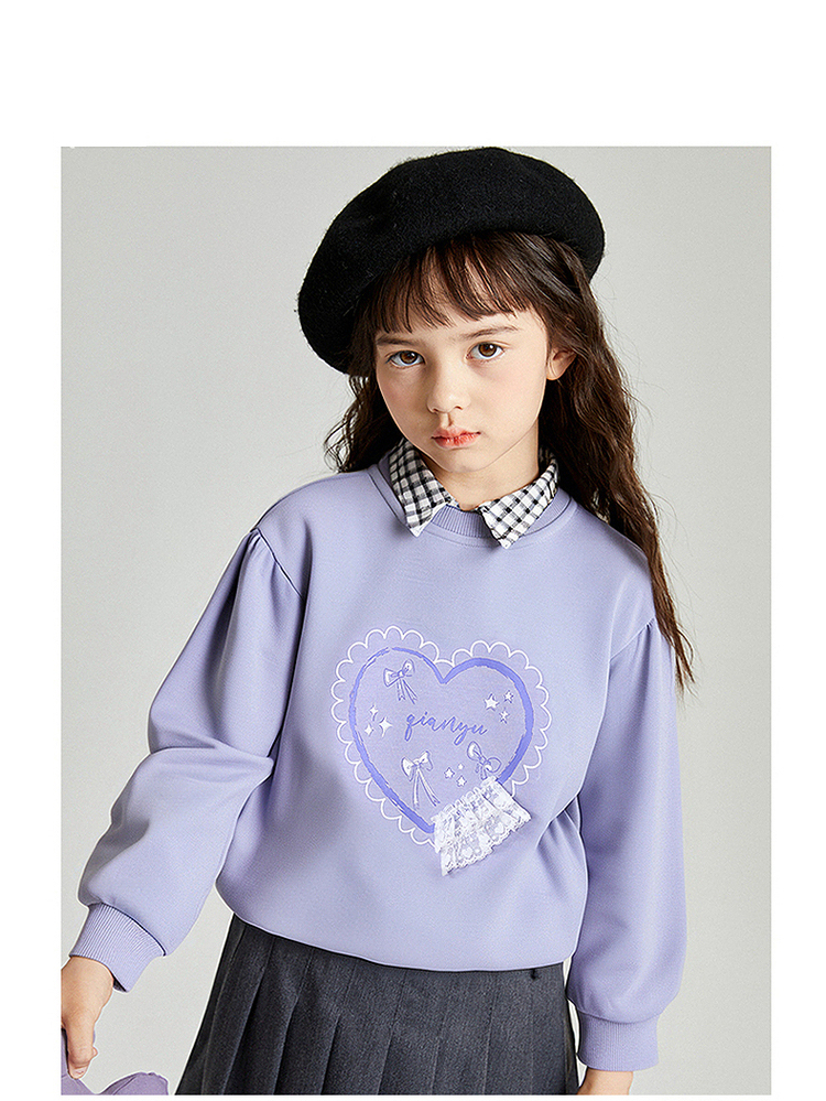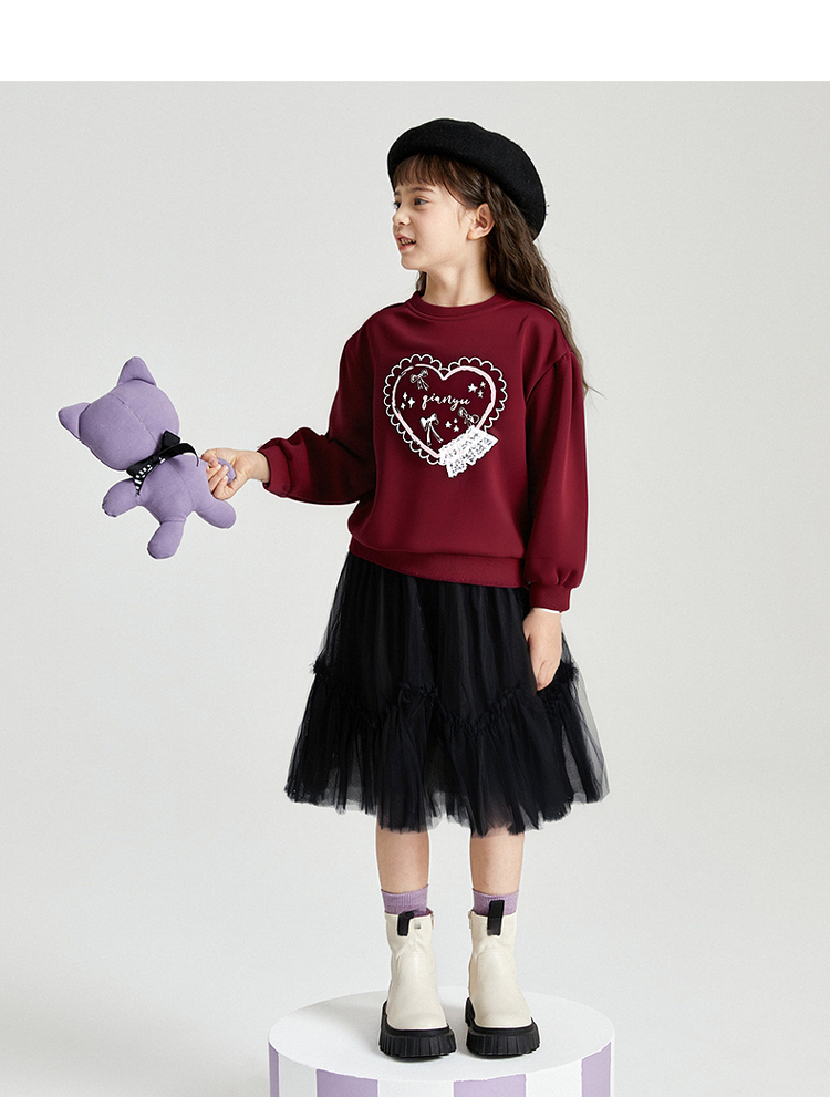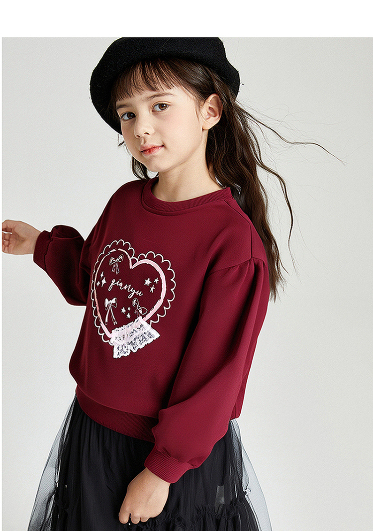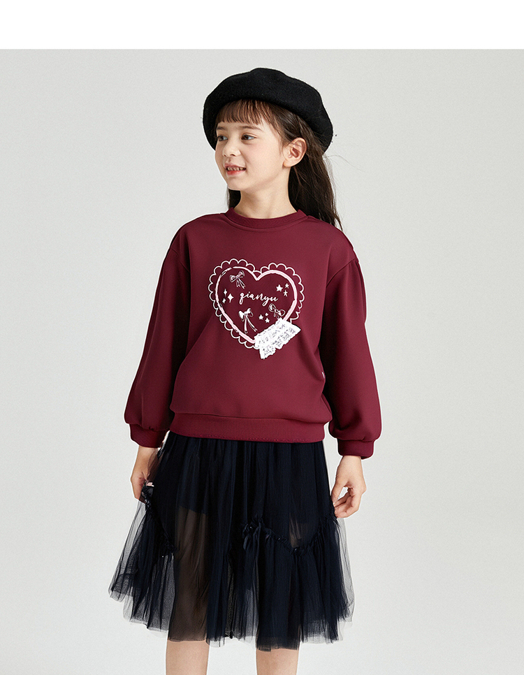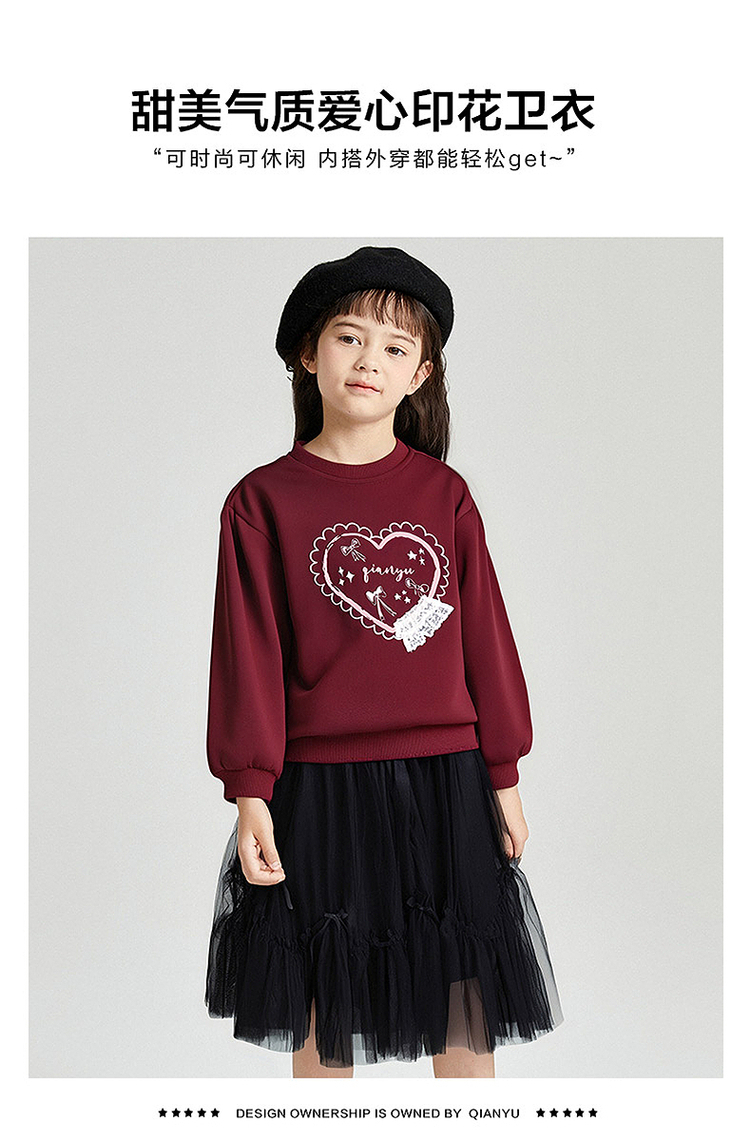 笛莎Deesha 2025秋季新款女童甜美气质爱心印花卫衣