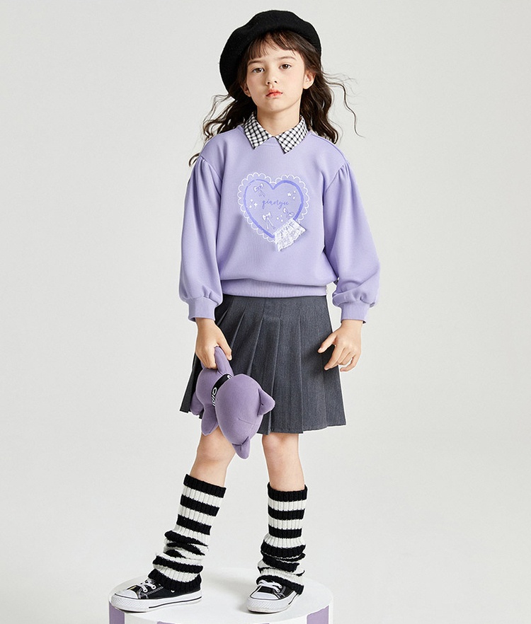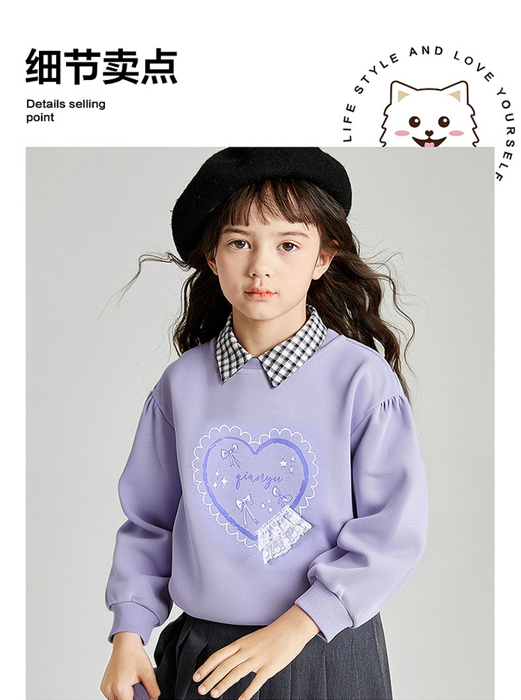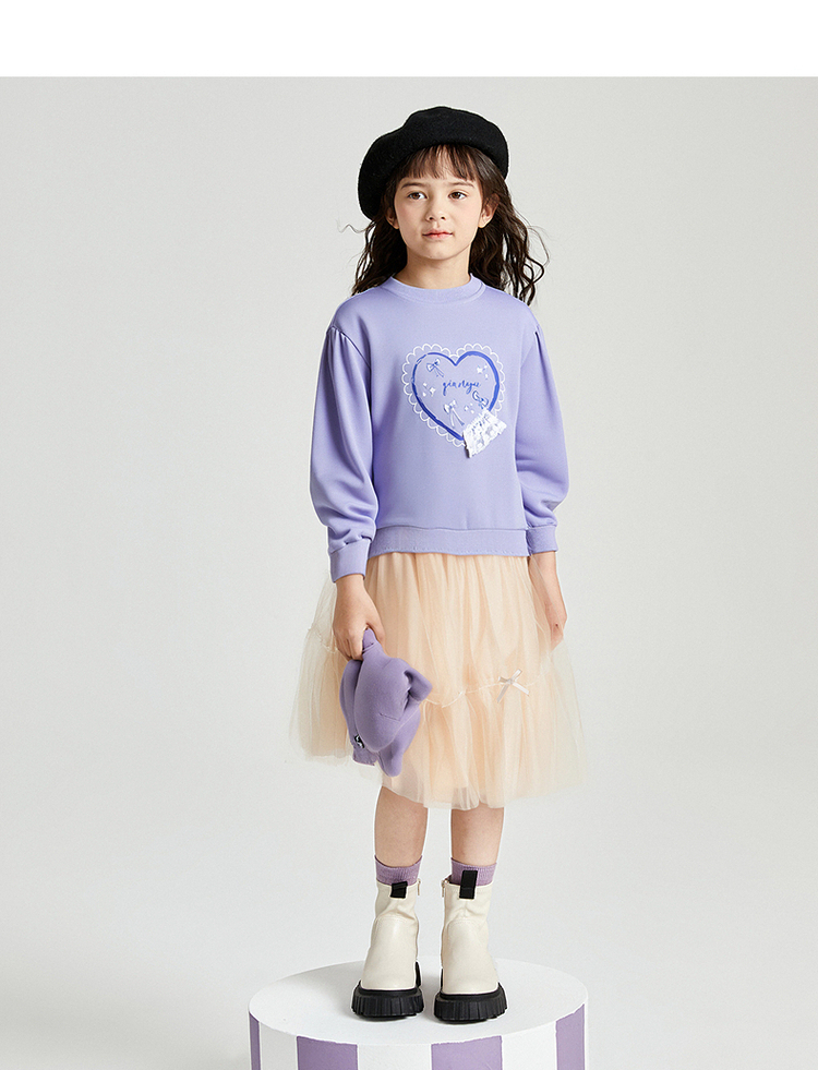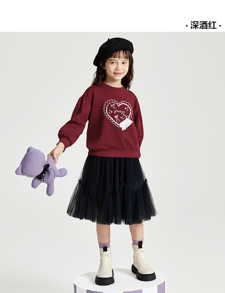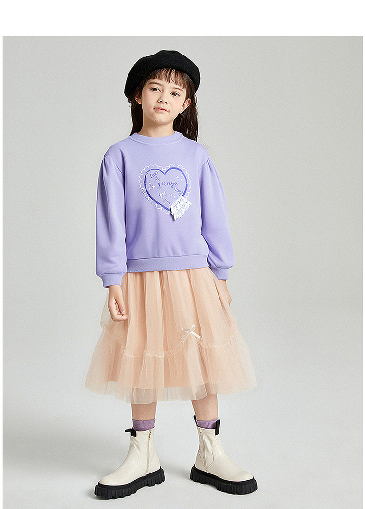 笛莎Deesha 2025秋季新款女童甜美气质爱心印花卫衣