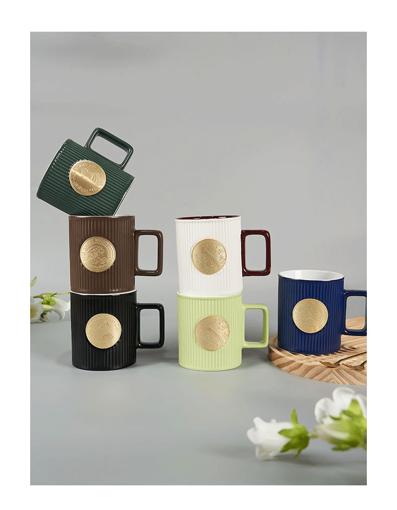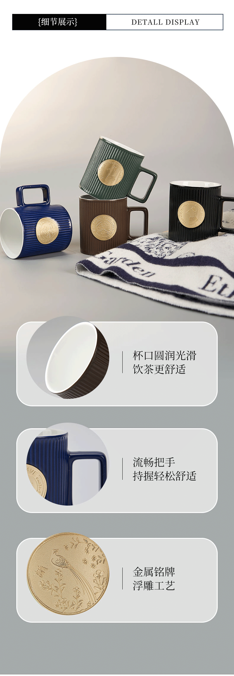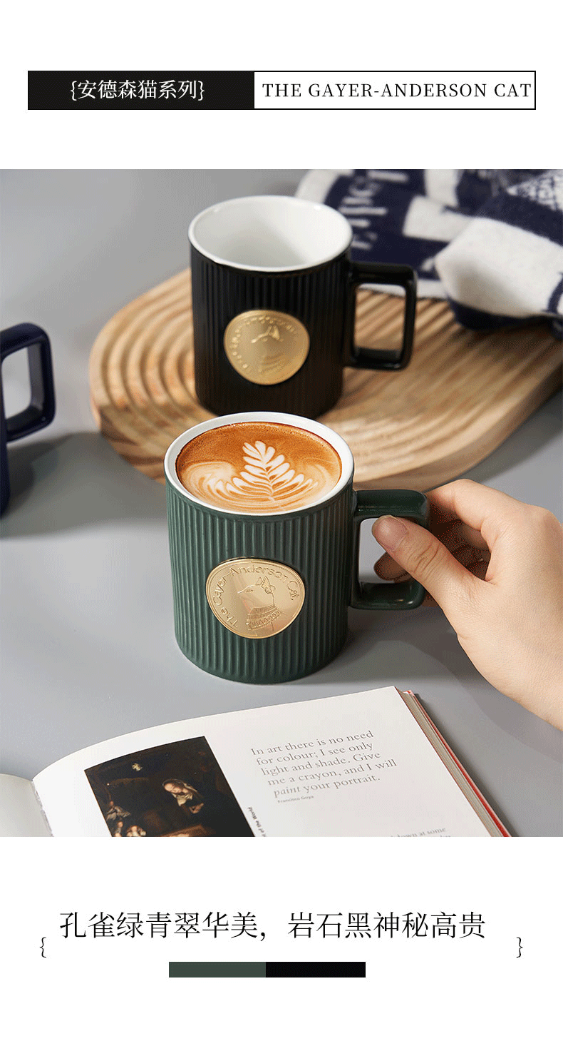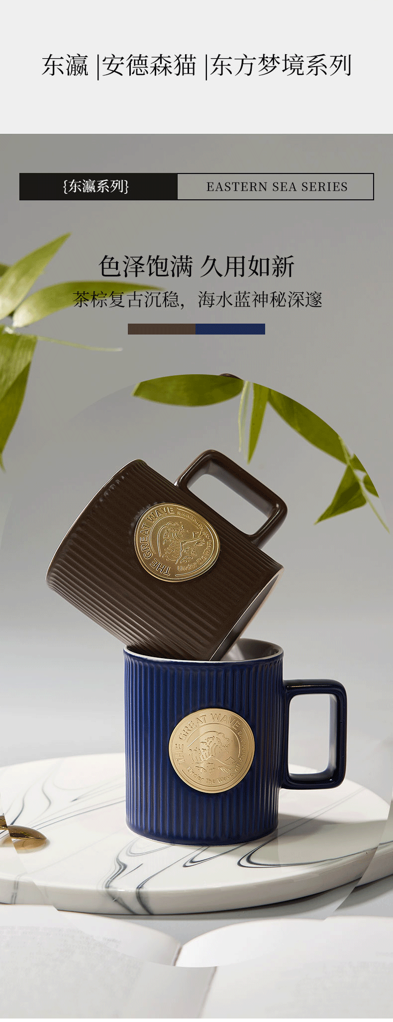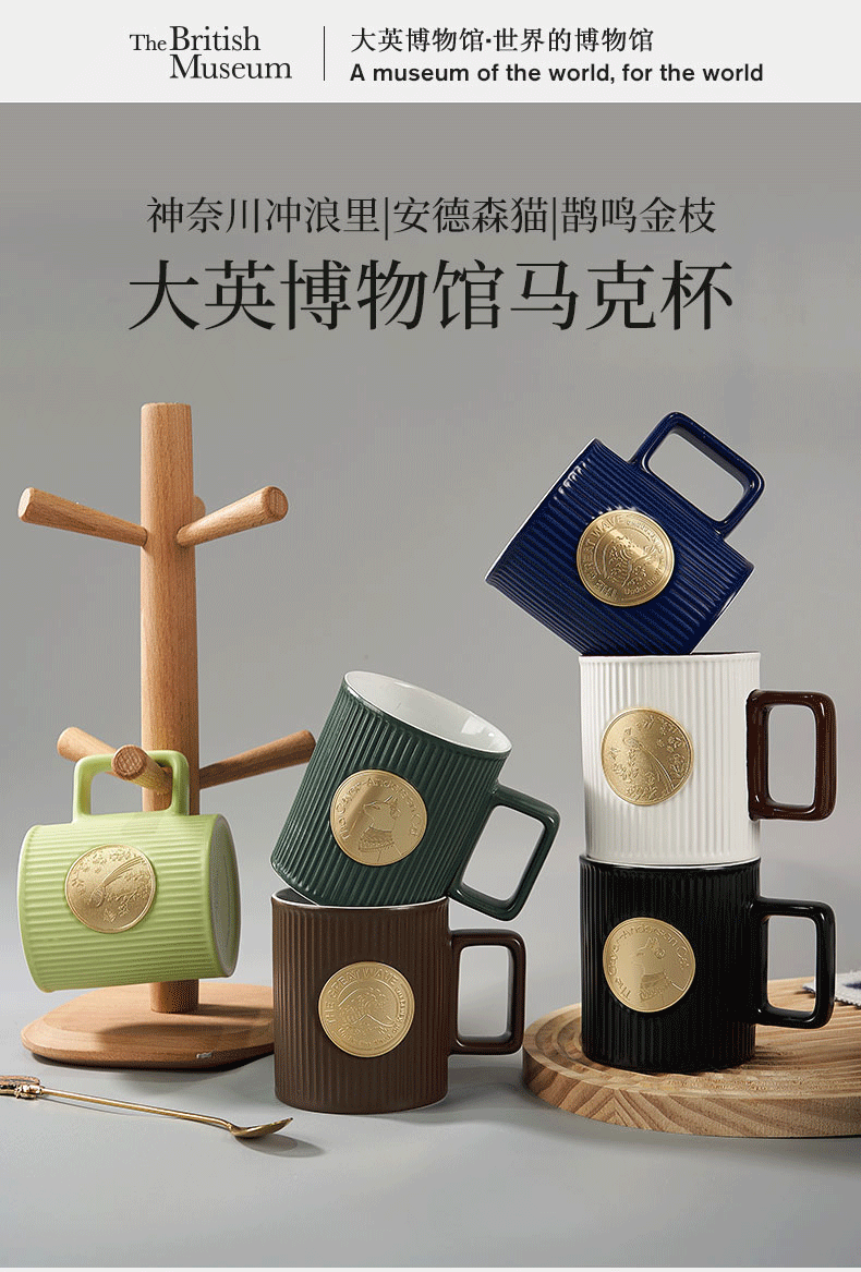 大英博物馆 东瀛系列神奈川冲浪里茶棕/海水蓝 盖亚·安德森猫系列金属铭牌棱纹马克杯岩石黑/孔雀绿 东方梦境系列鹊鸣金枝金属铭牌棱纹马克杯朱砂红/春日绿 金属铭牌棱纹马克杯