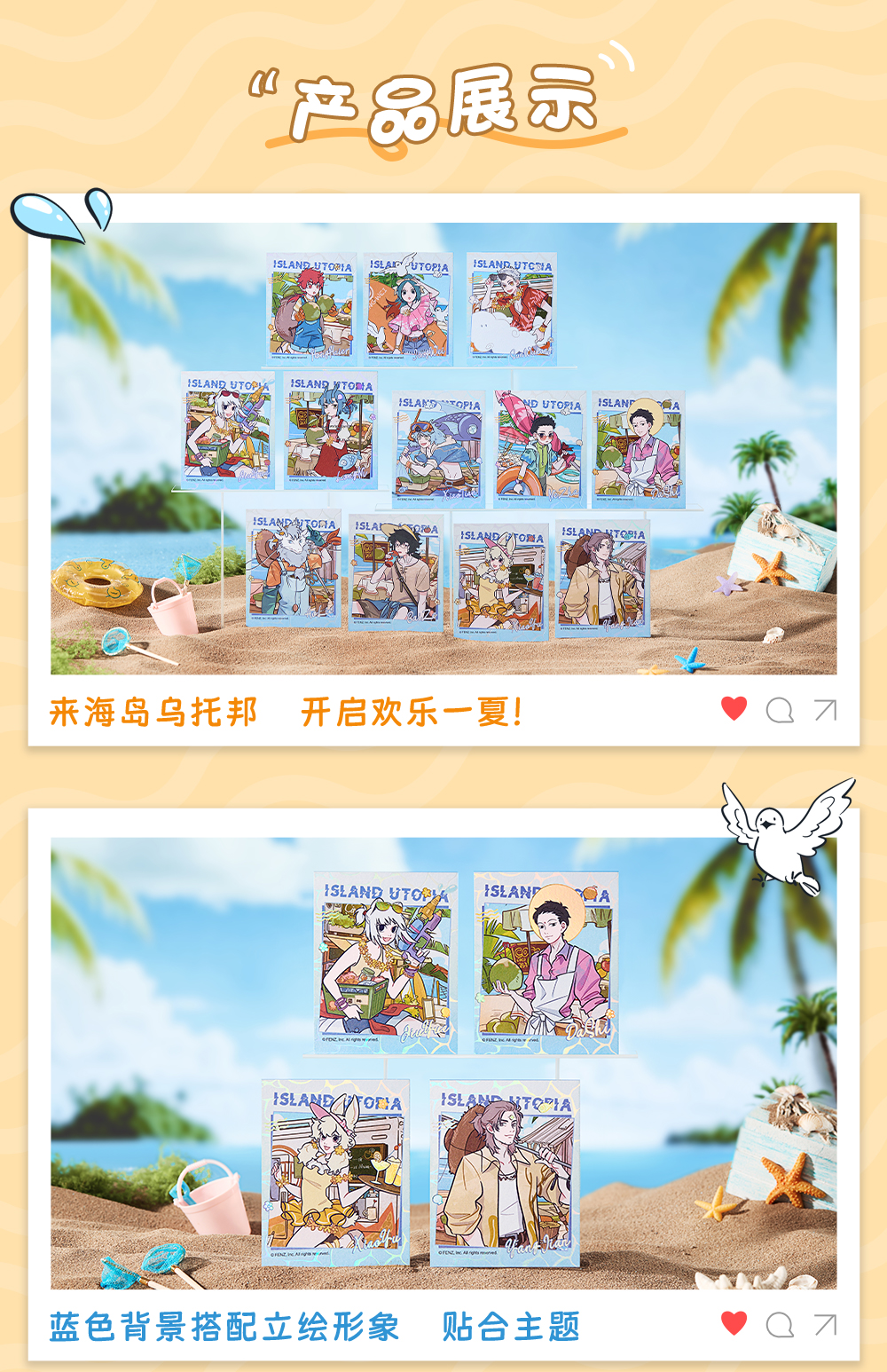 《非人哉官方店》海岛乌托邦系列拍立得盲盒原创镭射水波纹收藏卡