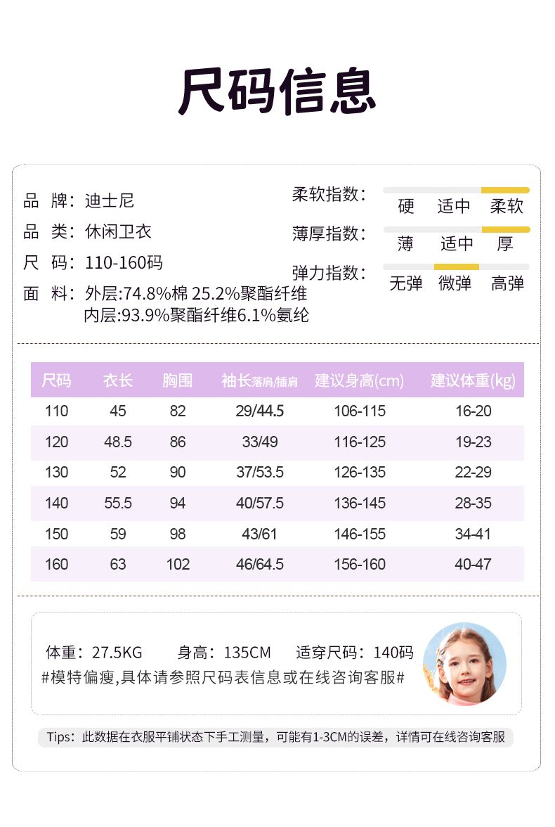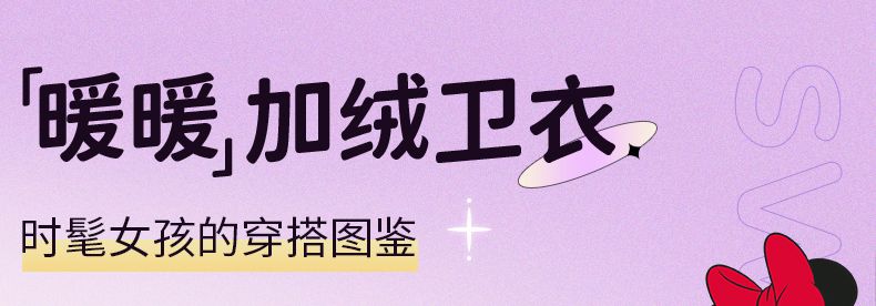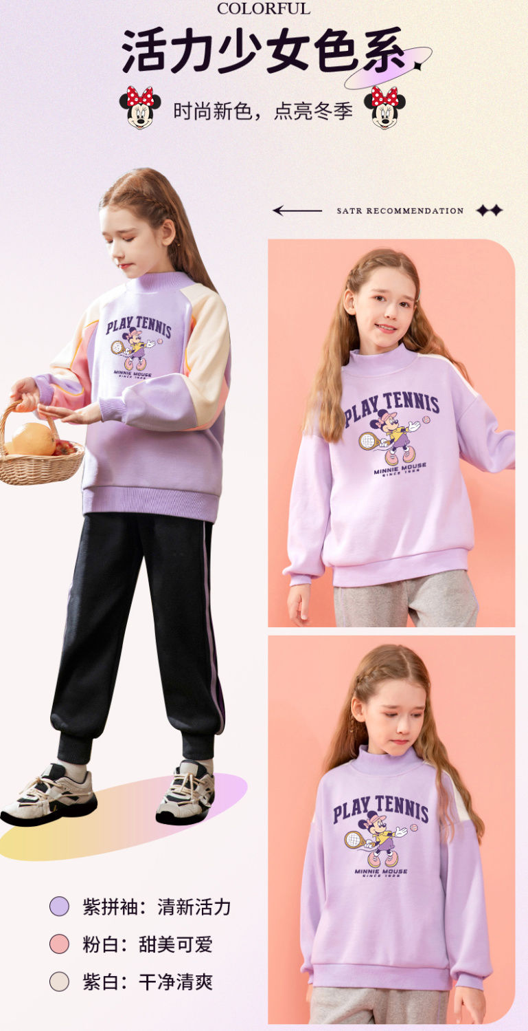 迪士尼女童卫衣冬季加绒加厚新款儿童打底衫女大童保暖衣冬季