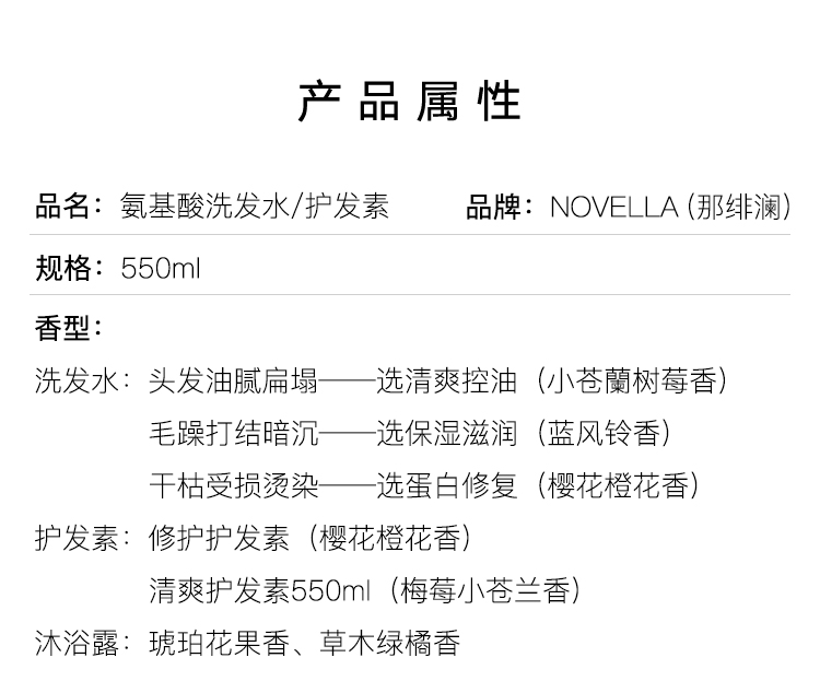 【任选4瓶99,下单自动满减,单瓶不发】NOVELLA(那绯澜)氨基酸洗发水/护发素,3种香型,洗出自然漂亮的头发(72小时发)