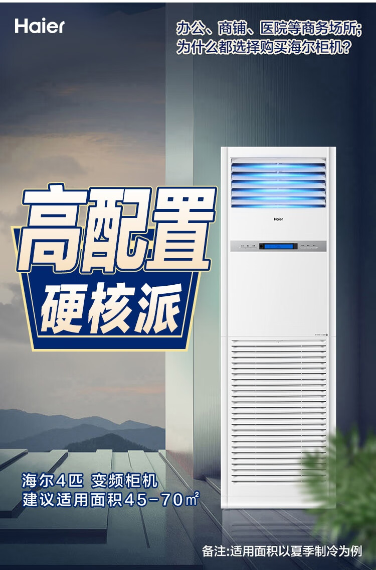 海尔(Haier) 4匹柜式空调二级能效变频立式商用立式空调 强劲制冷手机控制 KFRd-100LW/52BAC22SU1