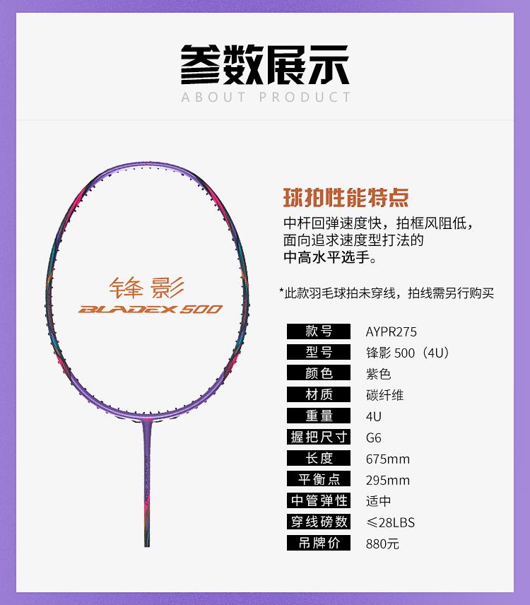 李宁Lining锋影500羽毛球拍全面速度型AYPR273 快速回弹锋影800简化版