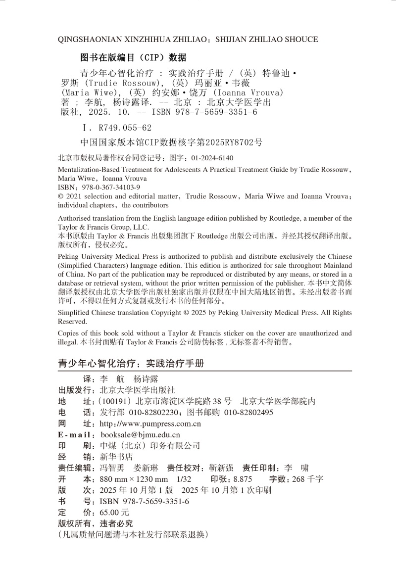 青少年心智化治疗实践治疗手册 心智化治疗实践指南系列 李航 杨诗露 儿童和青少年心理健康专业人士的实践指导北京大学医学出版社