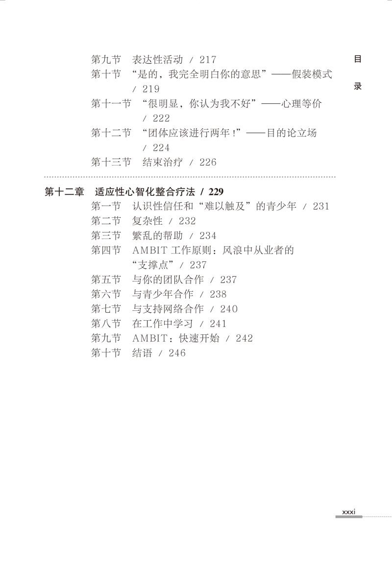 《青少年心智化治疗》(Mentalization-BasedTreatmentforAdolescents,MBT-A)是一本面向儿童和青少年心理健康专业人士的实践指导,旨在帮助他们提升知识、技能和实践能力。本书从实操的角度详细描述了如何在日常的临床实践中与青少年进行基于心智化的治疗(MBT)。书中的各个章节由各国专家撰写,清晰地阐述了在个体、家庭和团体的设置中,如何运用基于心智化的框架与青少年工作。第一部分介绍了基于青少年发展的MBT-A理论基础;第二部分详细阐述了在与青少年工作时所采用的MBT立场和技术,以及用于支持MBT-A治疗师专业发展的督导结构;第三部分探讨了如何运用MBT-A来治疗各种问题的青少年。本书的受众是那些希望在MBT领域提升专业技能的青少年治疗师,以及其他从事儿童和青少年心理健康工作的专业人士。