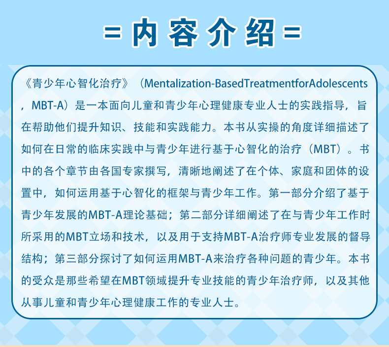 书名:青少年心智化治疗实践治疗手册 心智化治疗实践指南系列