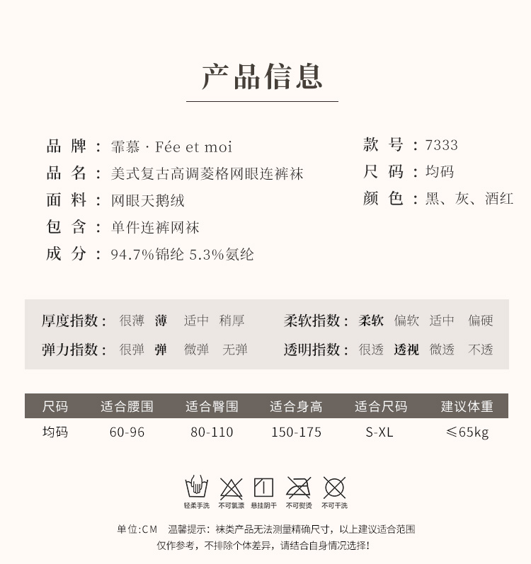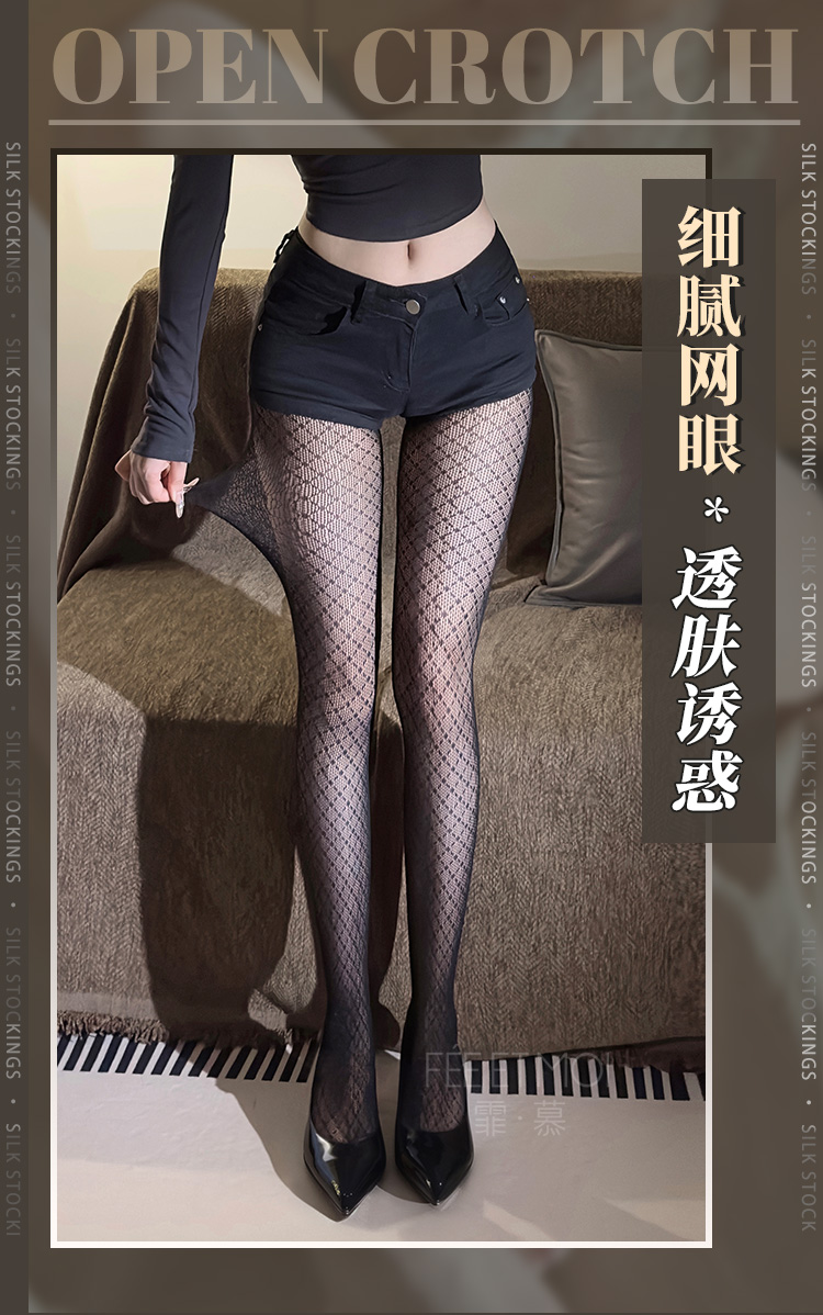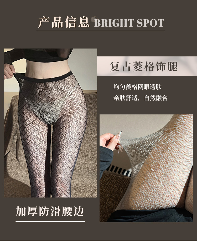 霏慕 美式复古高调菱格网眼连裤袜7333 情趣内衣搭配夫妻房事诱惑游戏女士性感丝袜
