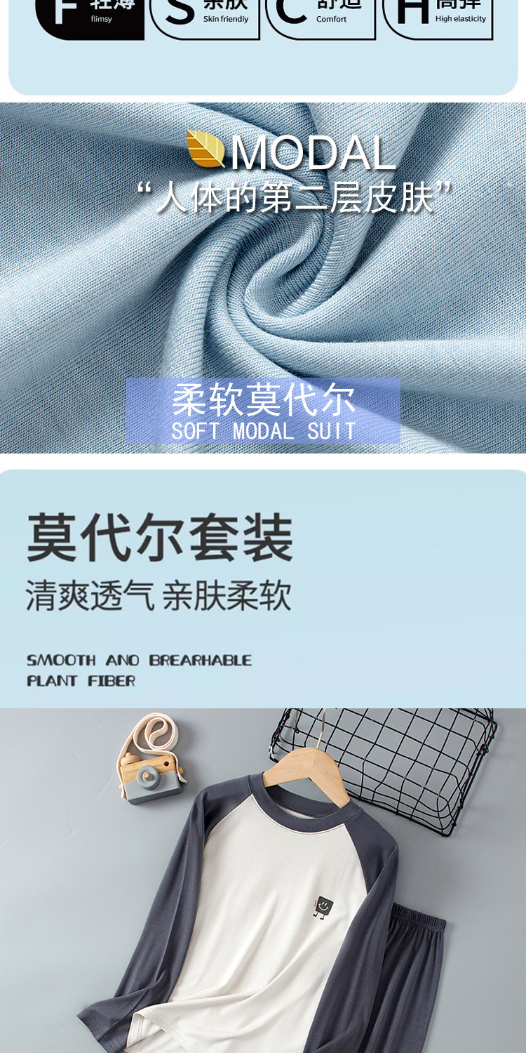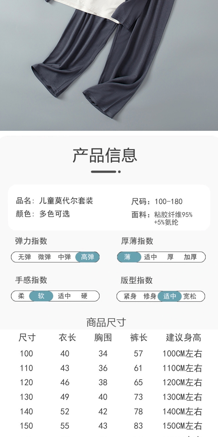 莫代尔儿童睡衣男童家居服套装宝宝空调服青少年秋衣秋裤女童内衣