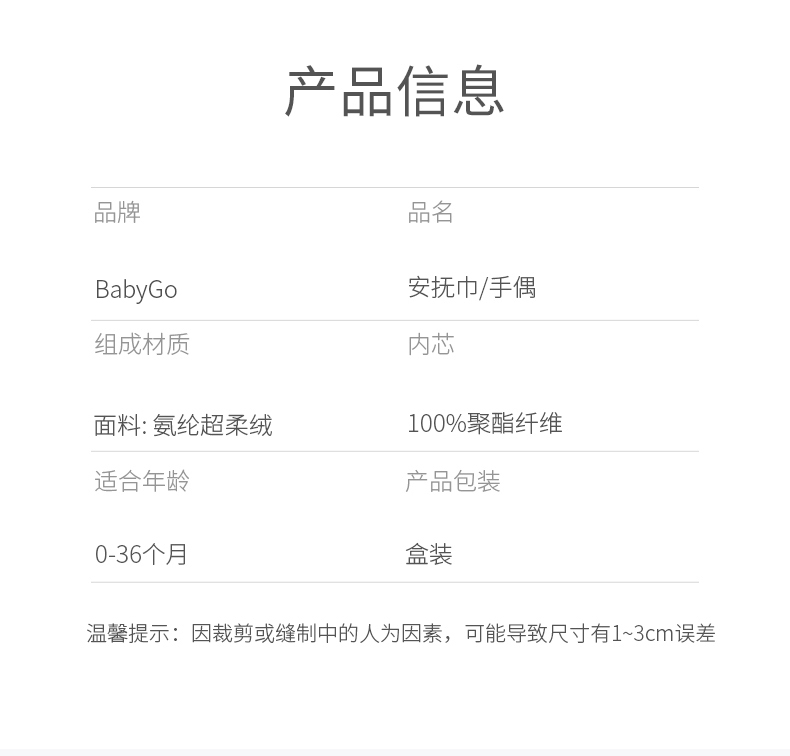【BG秒杀】babygo新款安抚巾 安抚玩偶(限量10件)