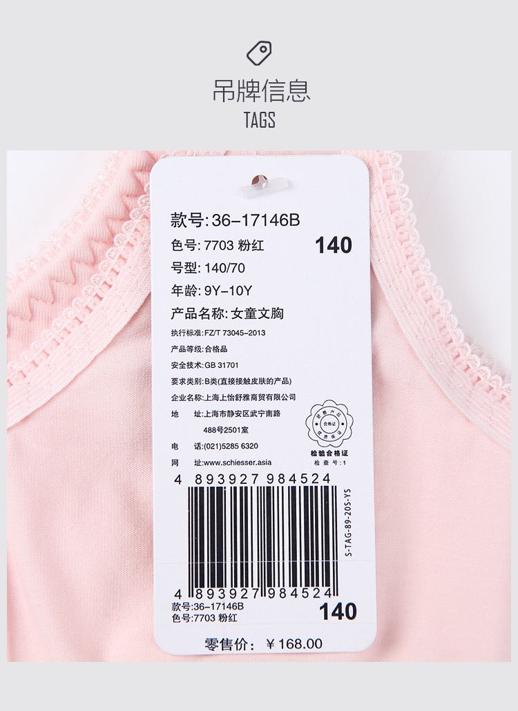 (清仓款,不退换)SCHIESSER 德国舒雅女童棉莫代尔无钢圈青春期二阶段少女文胸36/17146B