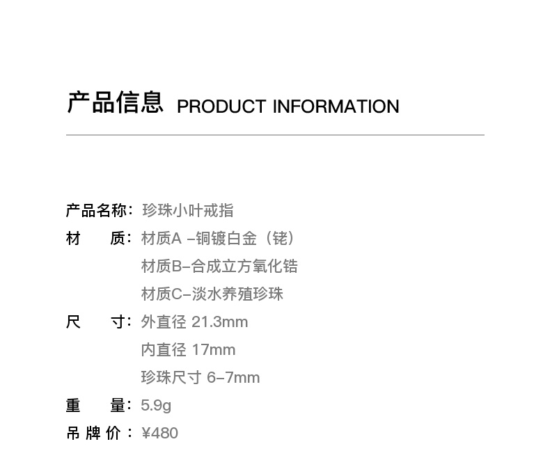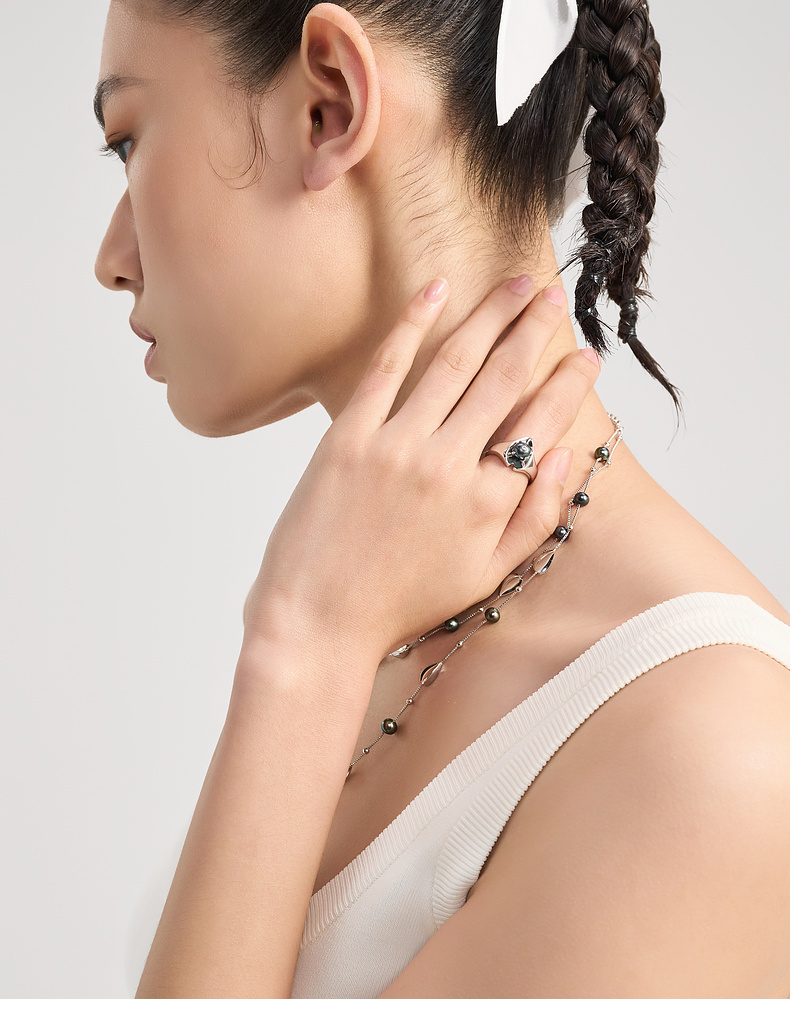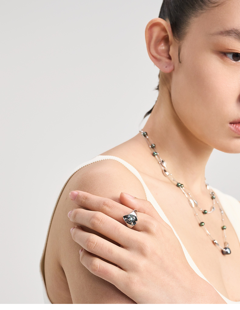 lost in echo2024夏季新款原创设计珍珠手工小叶可调节戒指指环女