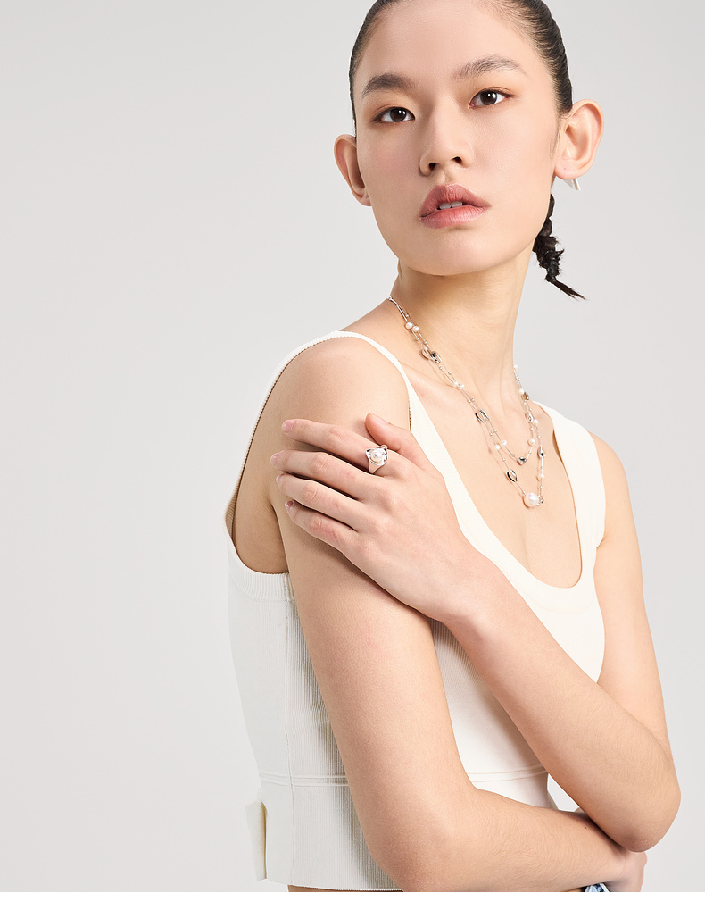 lost in echo 原创设计师品牌 个性设计感多层拼接大OT扣珍珠项链男女同款
