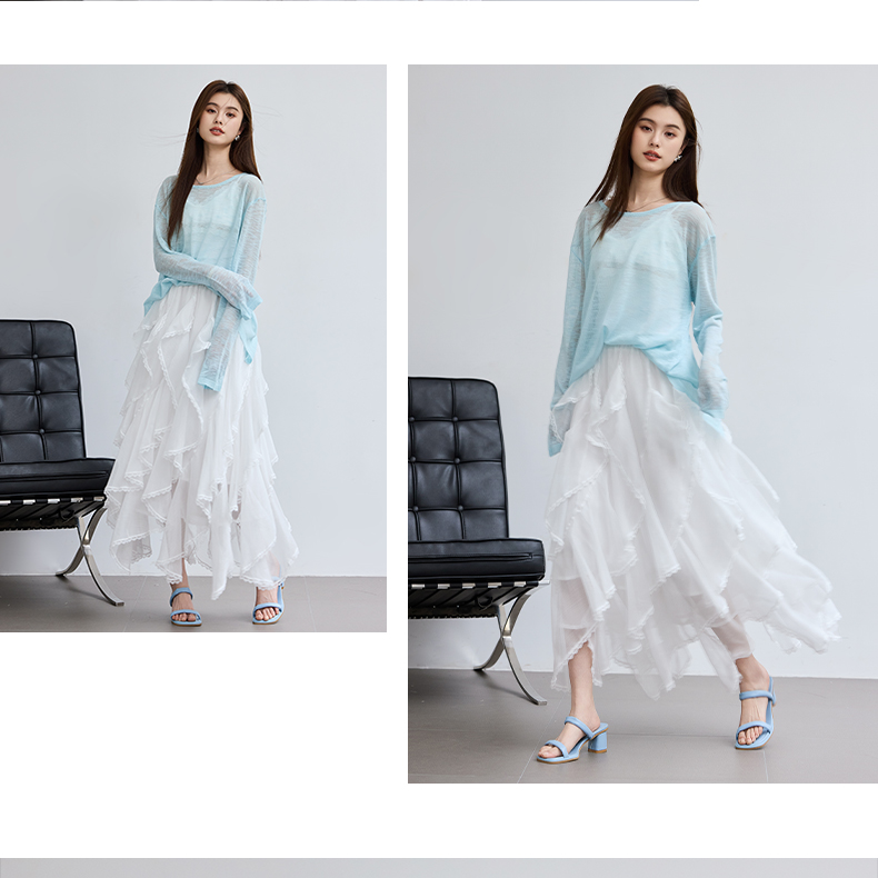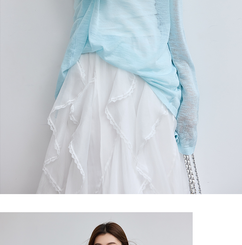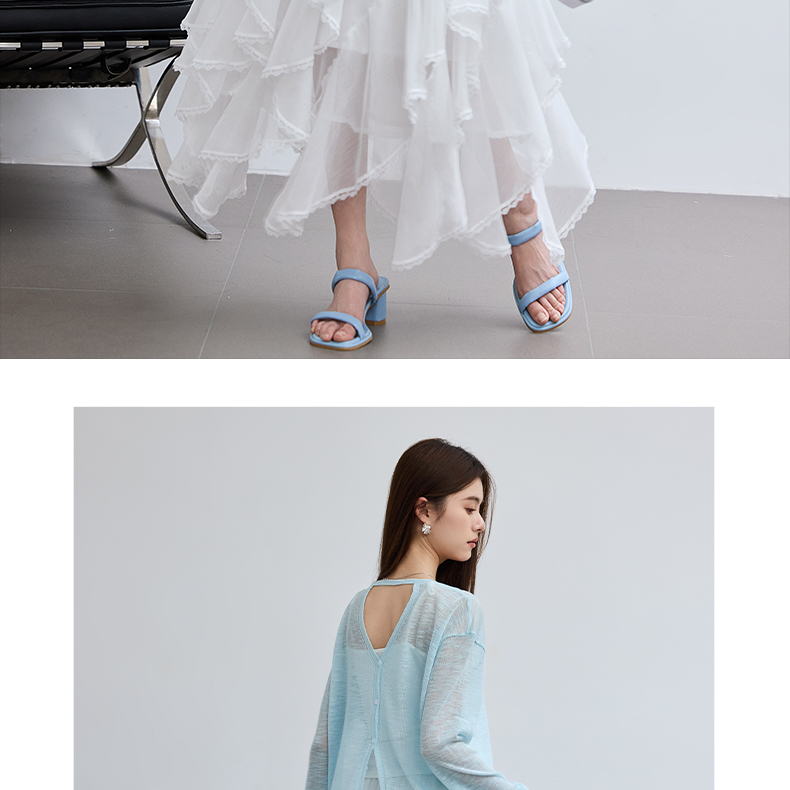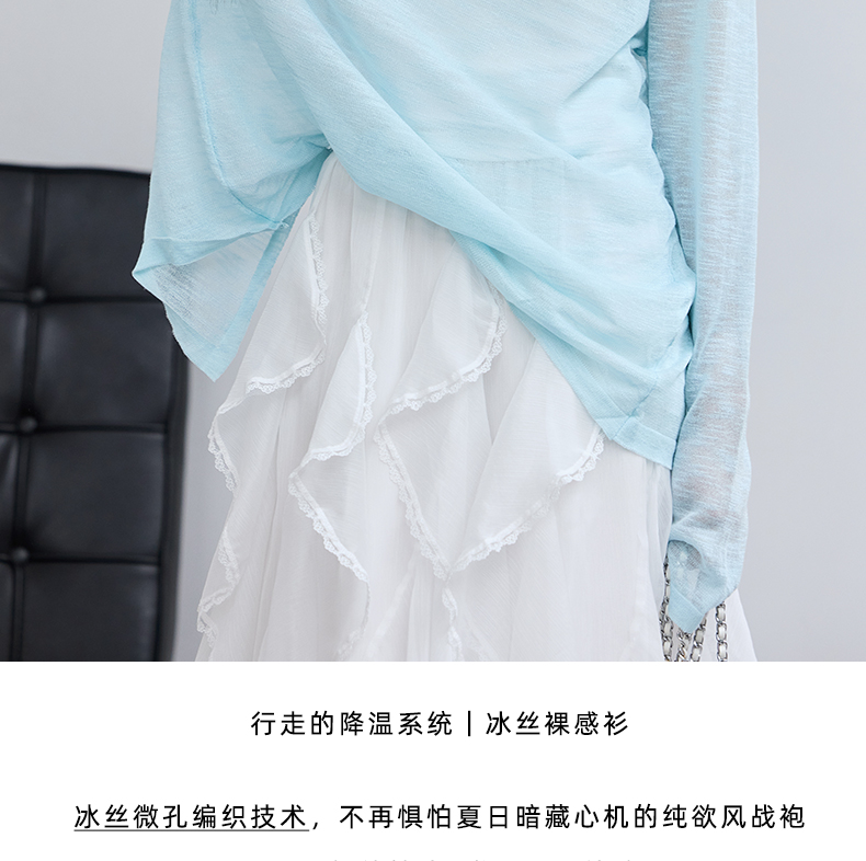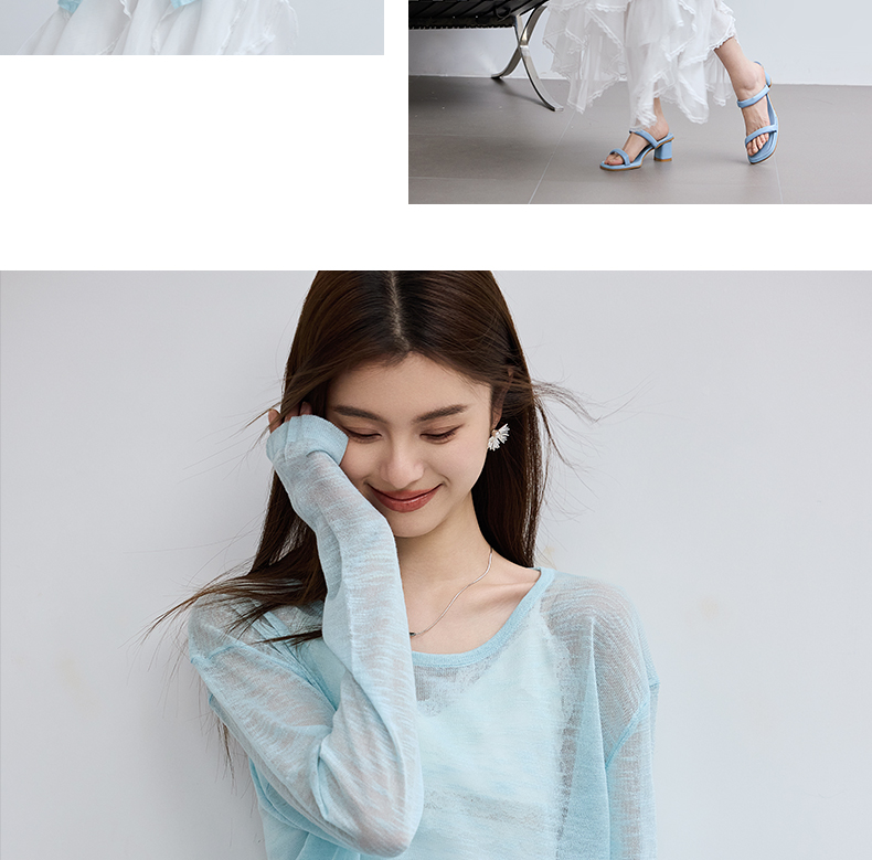 VICTORIA&VERA春季“懒人双面穿”雾蓝微透冰丝裸感针织衫长袖正反两穿春夏通勤显瘦心机装