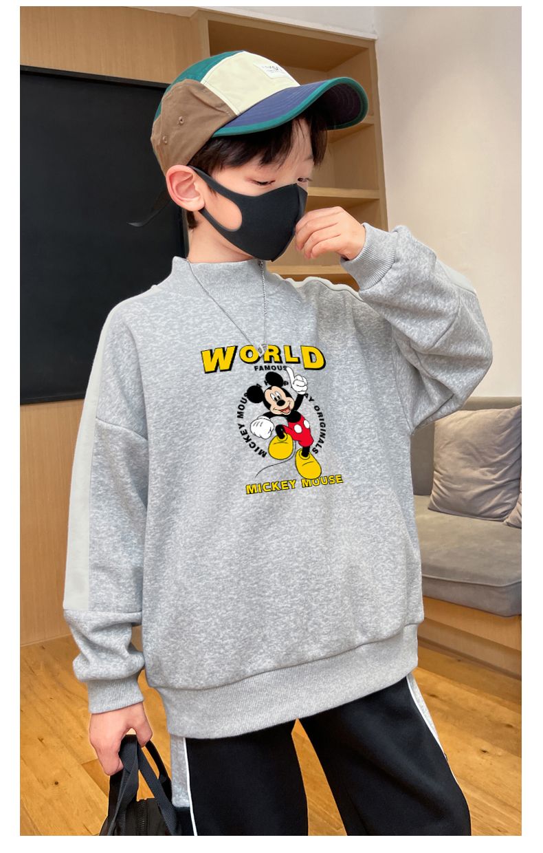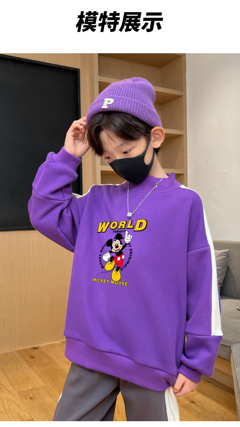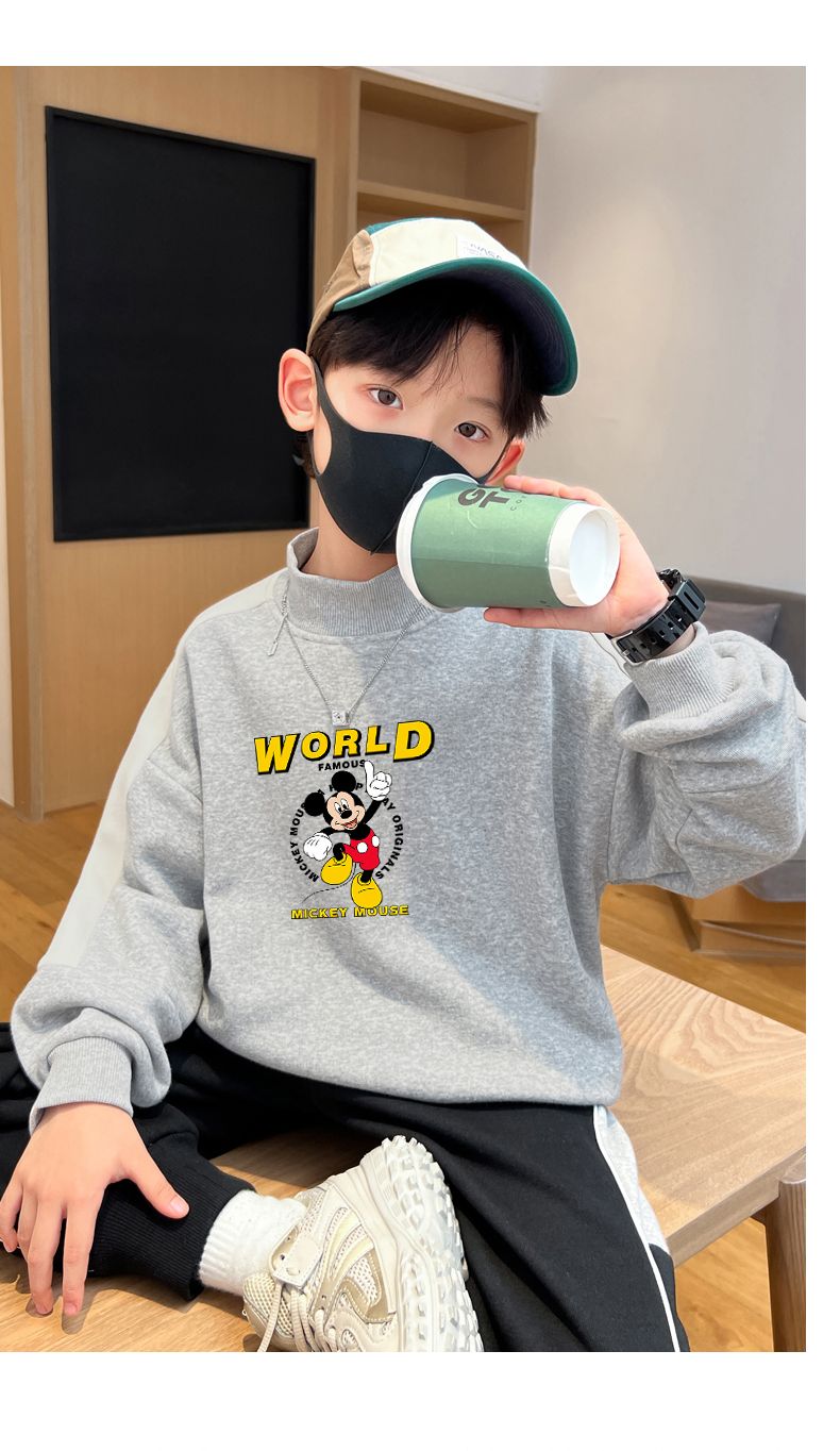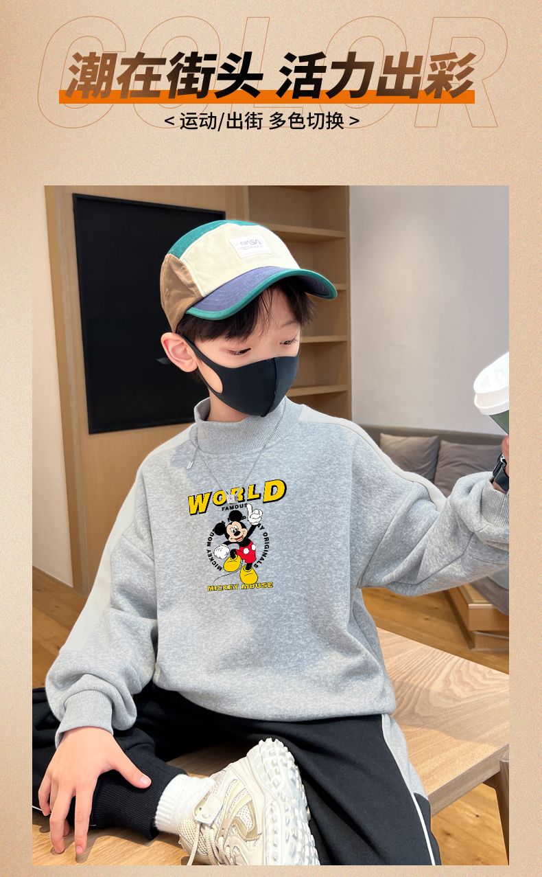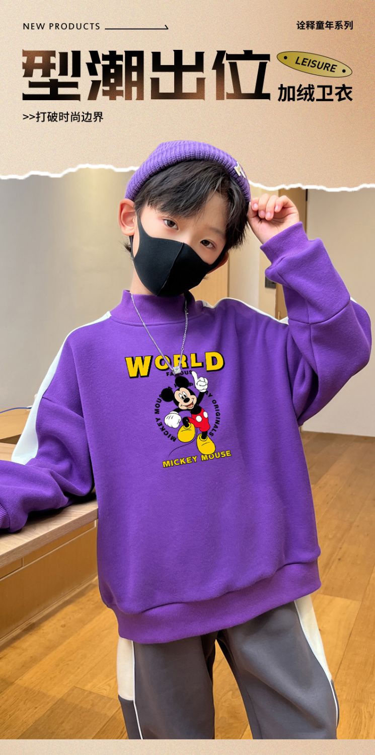 迪士尼男童卫衣秋冬2023新款儿童保暖衣加绒加厚大童上衣冬季棉衣