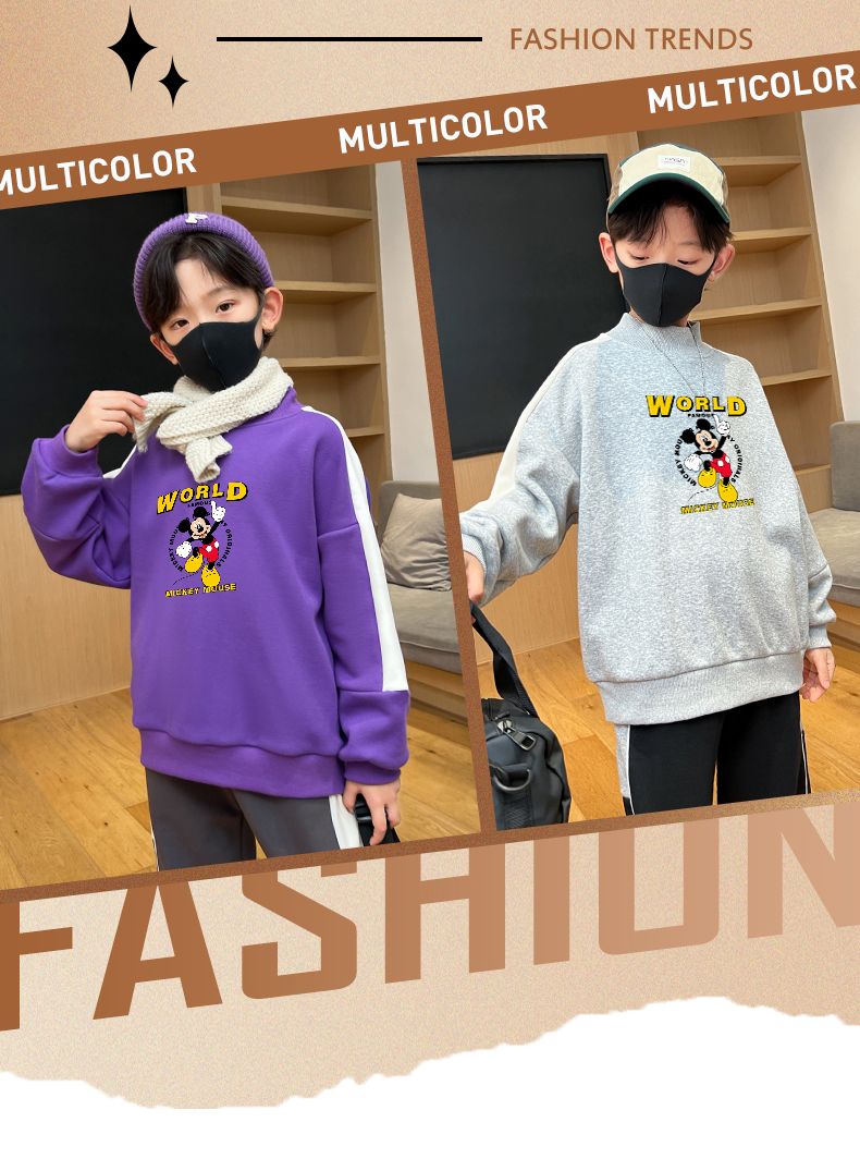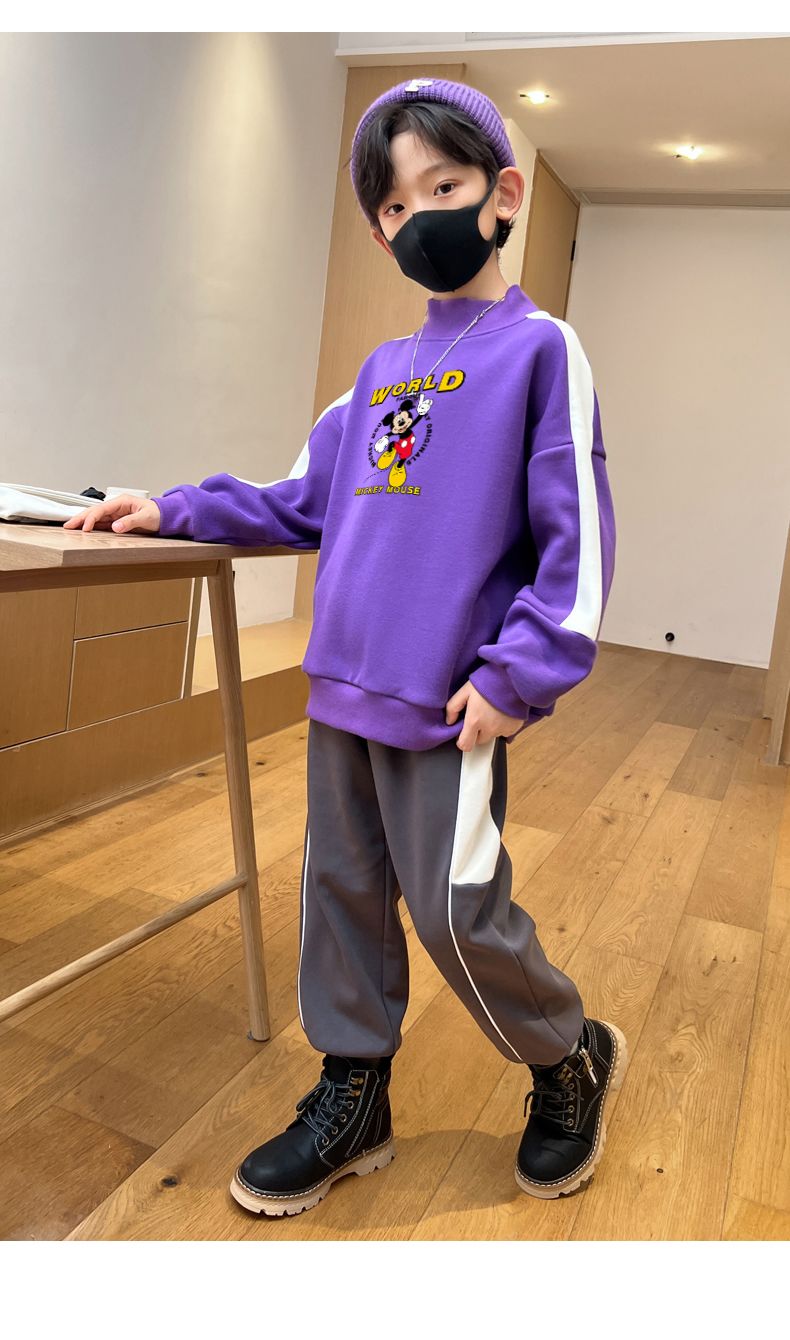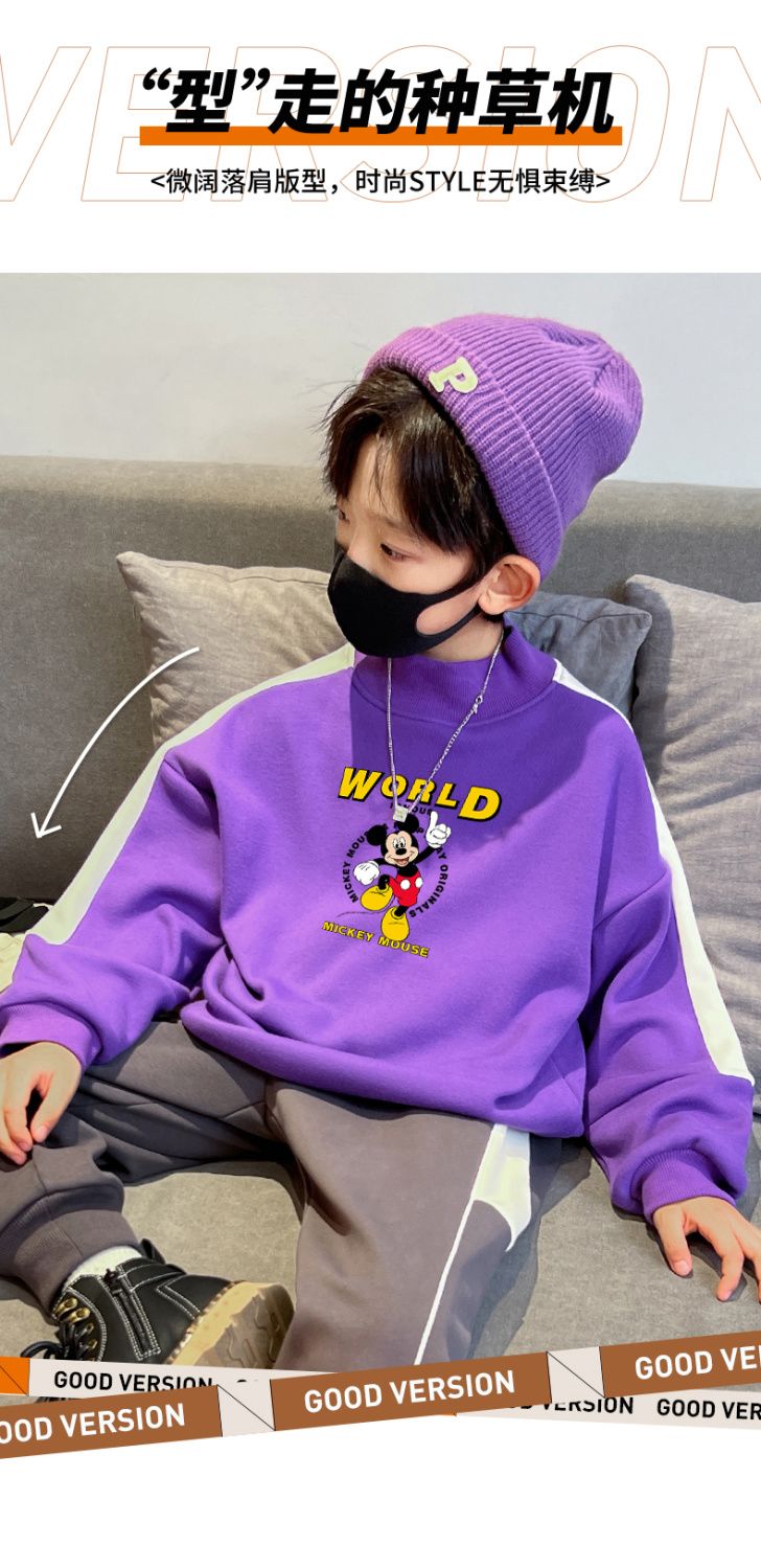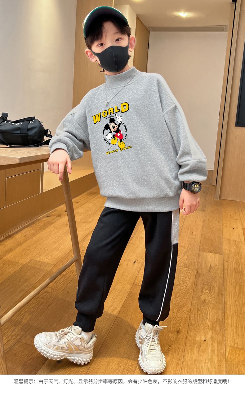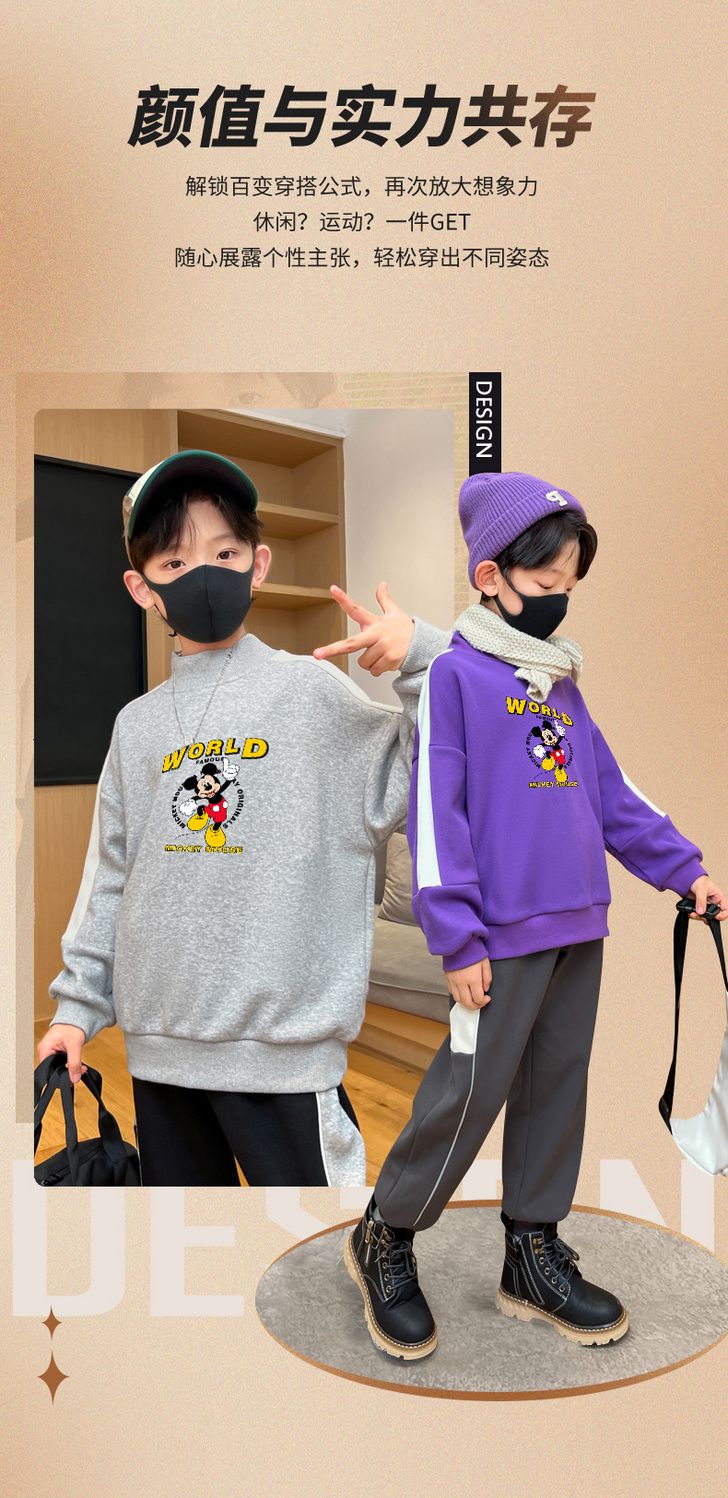 迪士尼男童卫衣秋冬2023新款儿童保暖衣加绒加厚大童上衣冬季棉衣