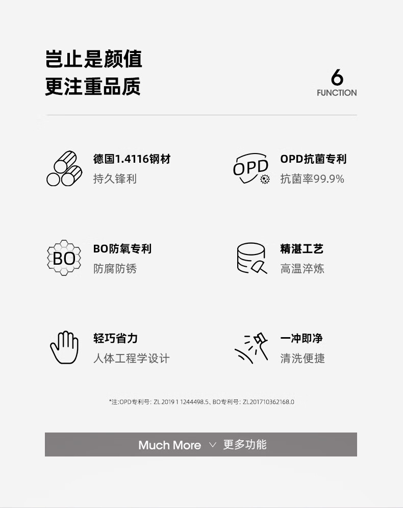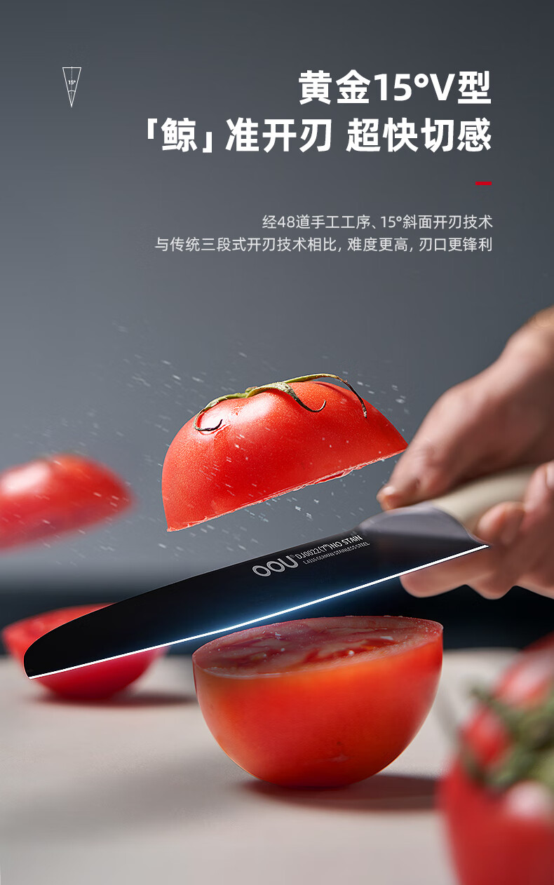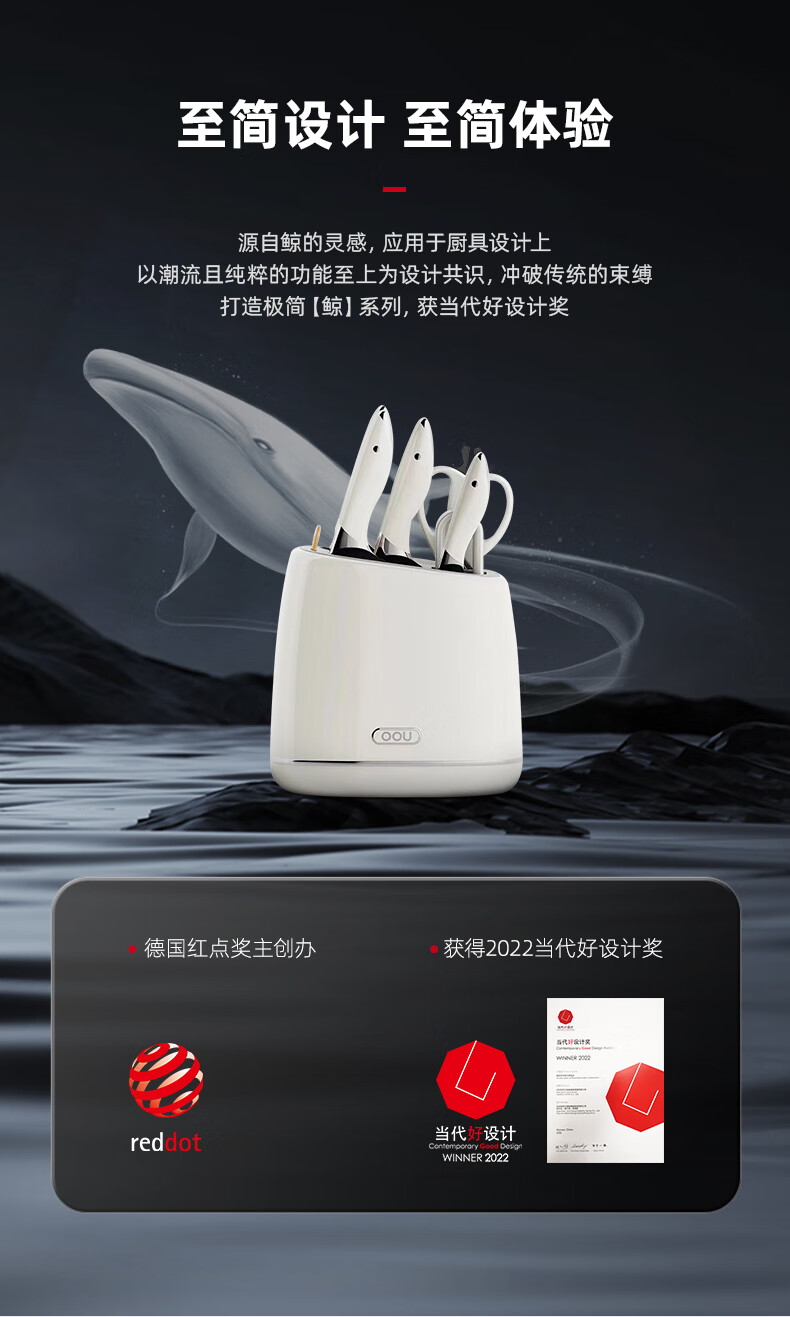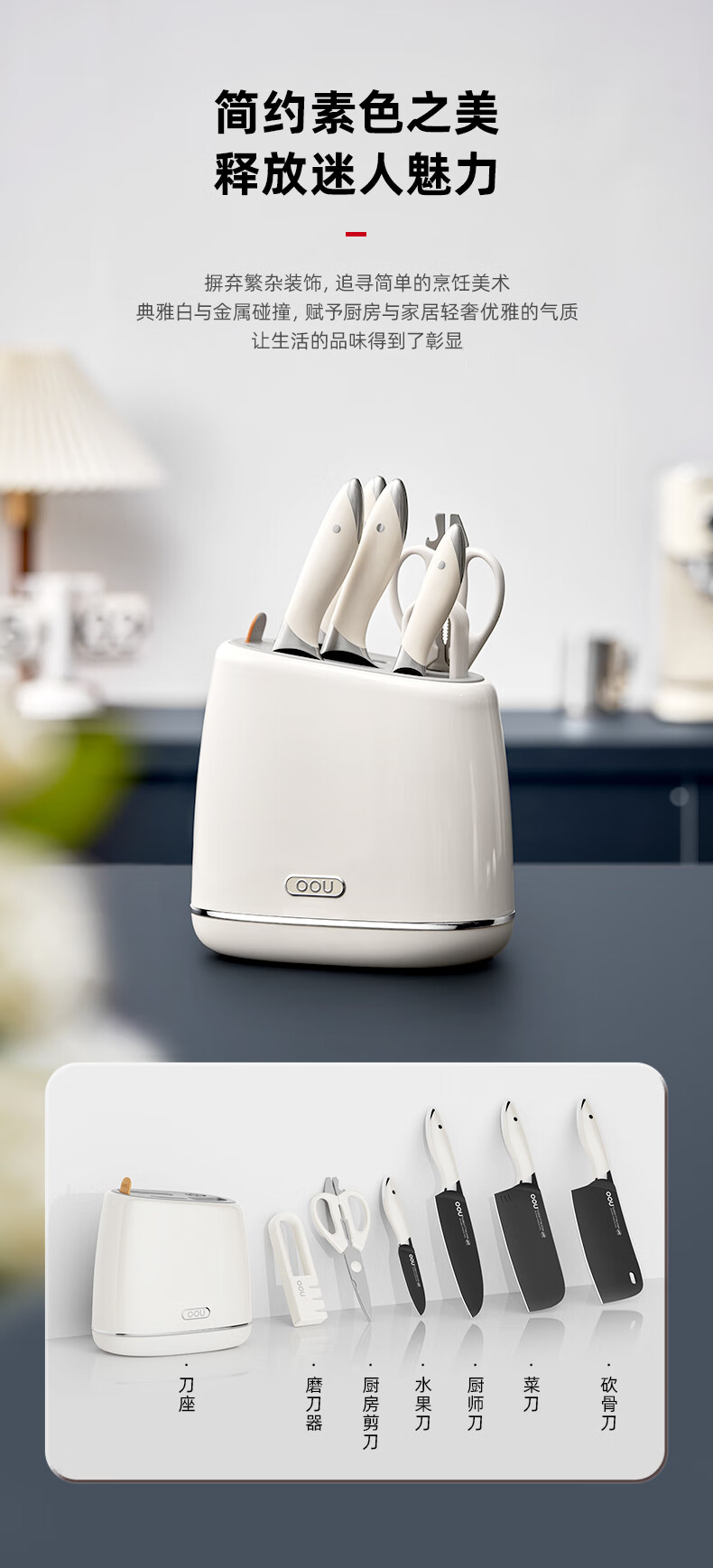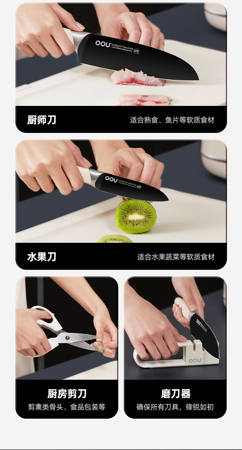 OOU!厨房刀具套装德国进口材质抗菌家用切菜刀剪刀带磨刀器黑鲸7件套DJ0022