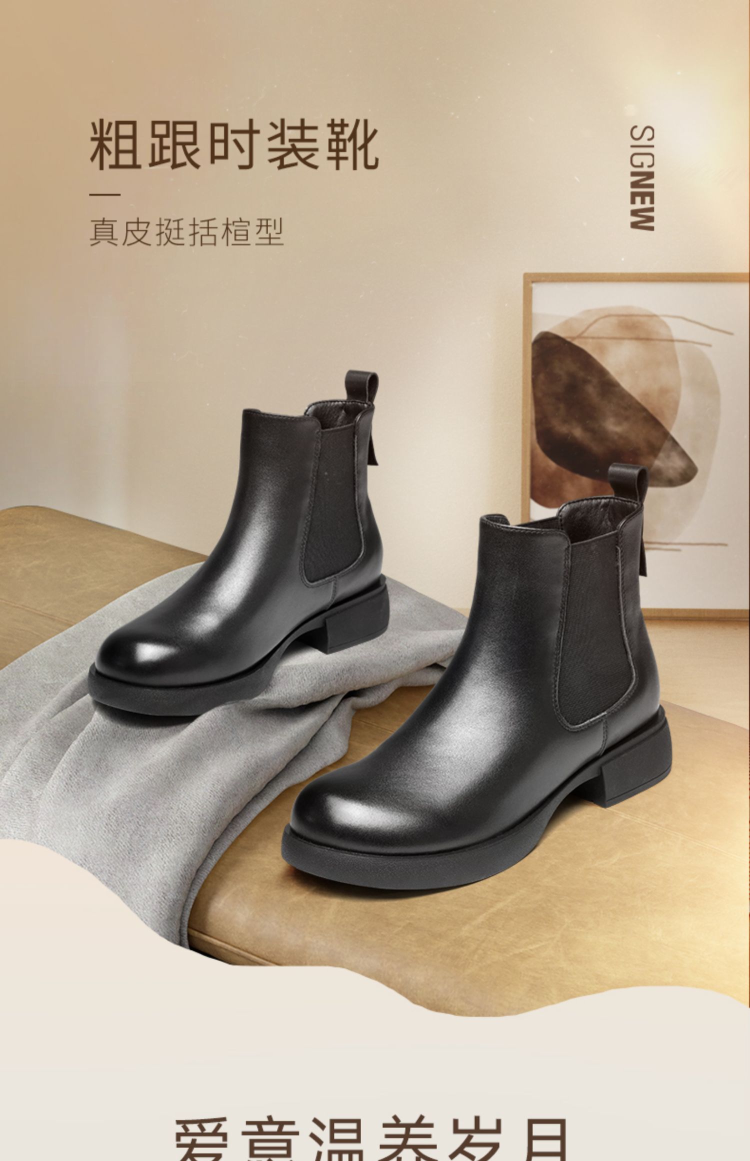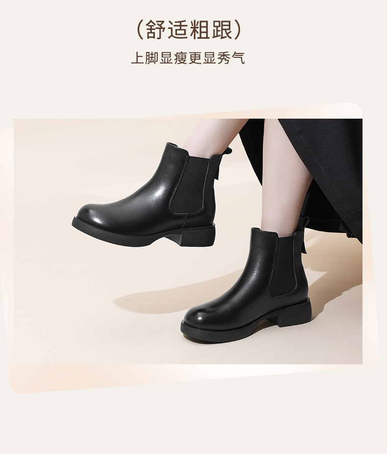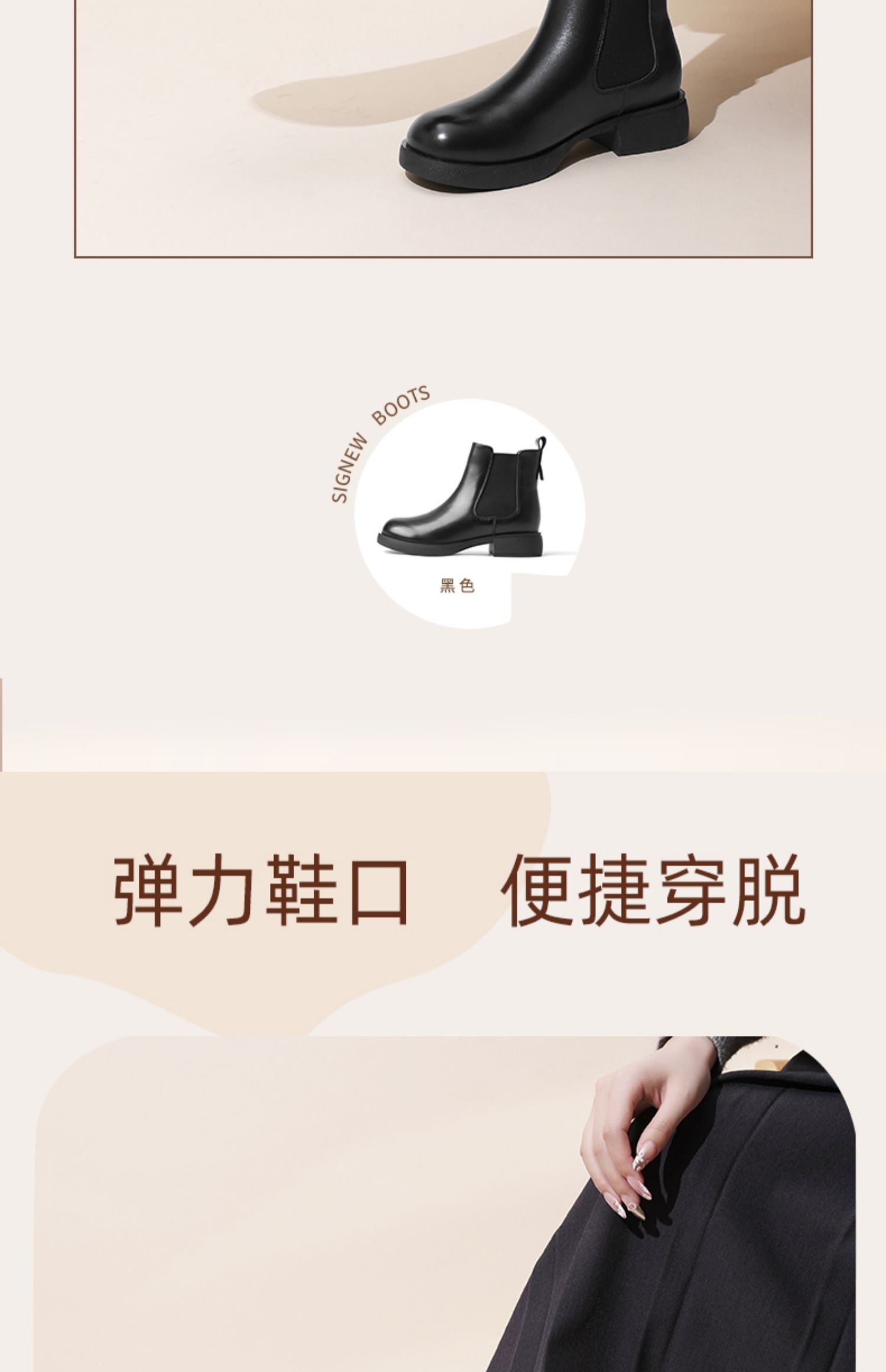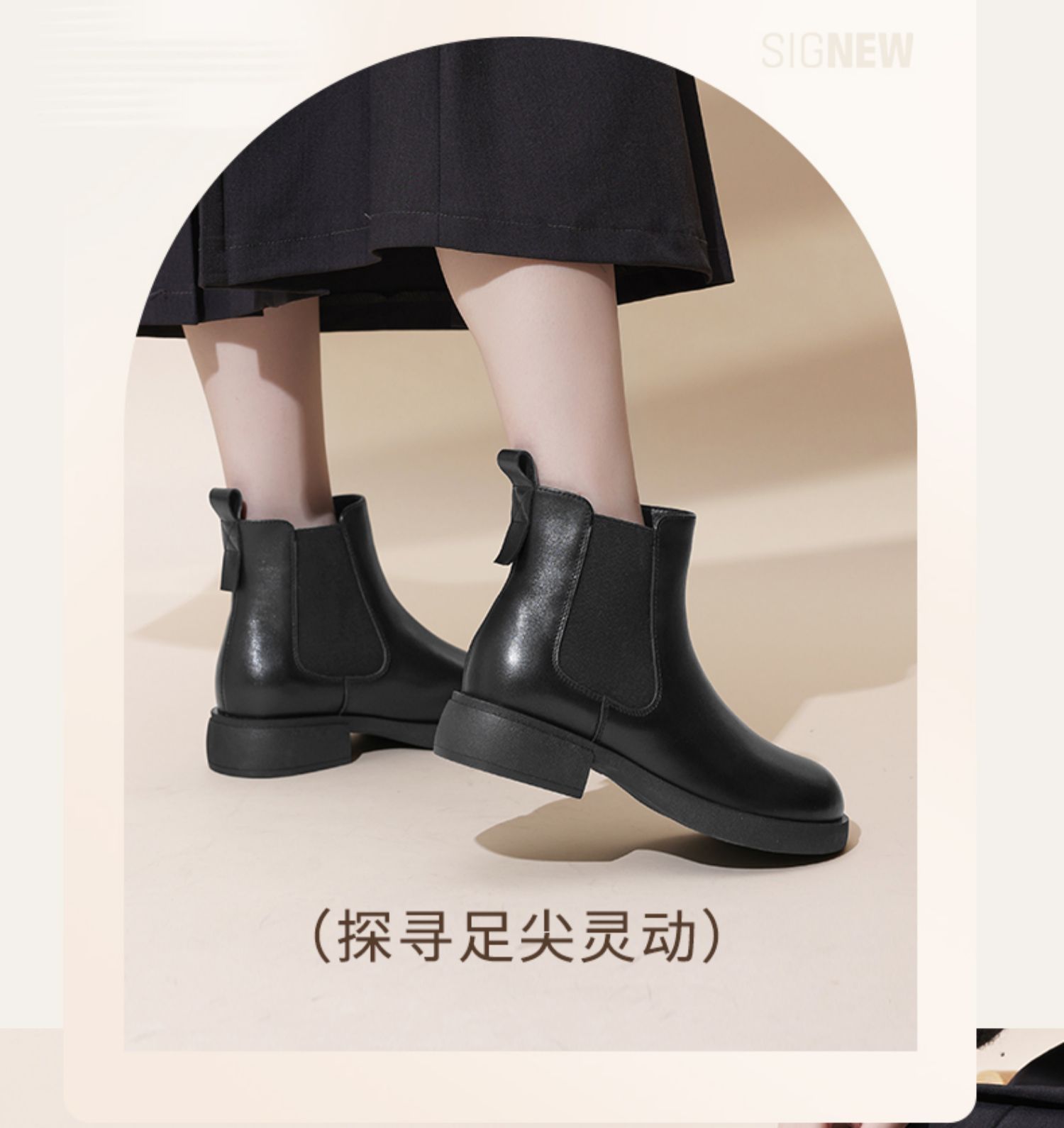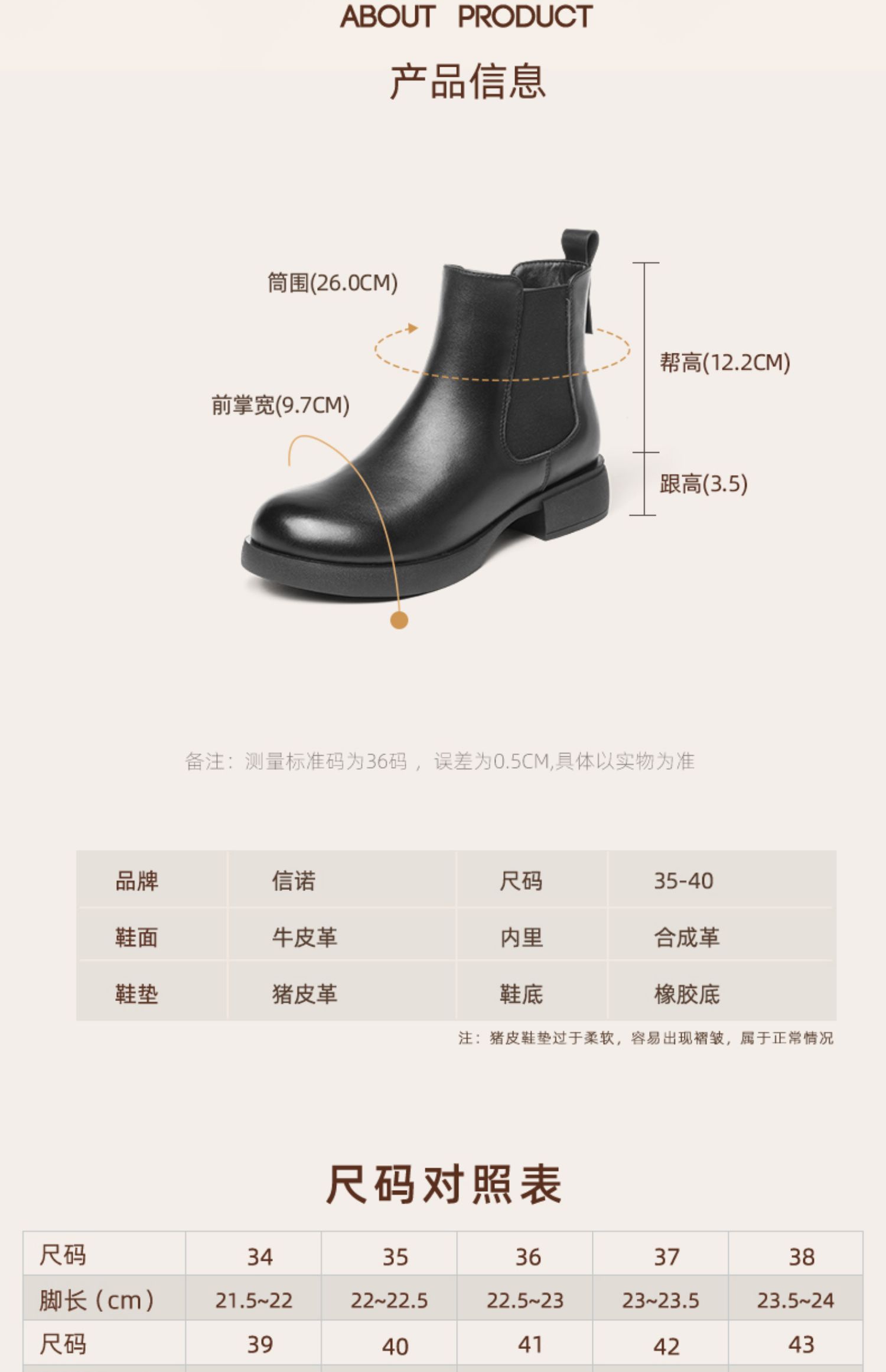 信诺真皮厚底英伦切尔西靴烟筒靴女鞋2024秋冬新款单靴短靴子皮靴M178-9C
