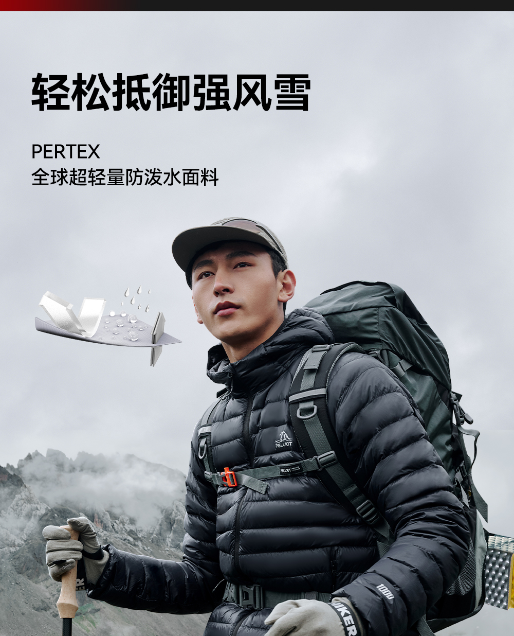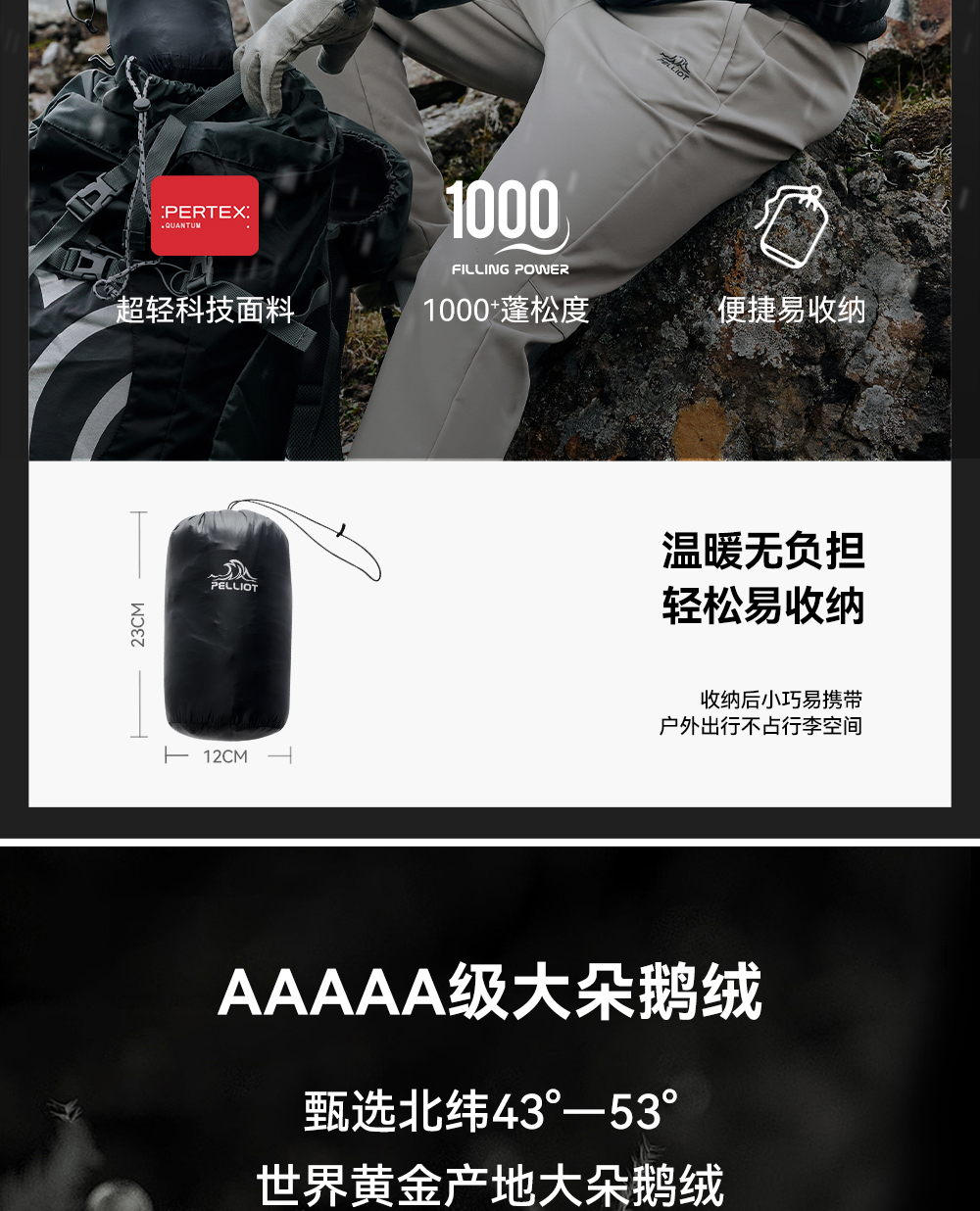 【P系列】伯希和户外1000蓬羽绒服男2025防风PERTEX鹅绒登山服
