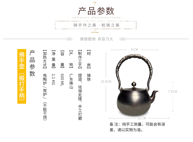 铸味 | 0.6L佛手壶铸铁茶壶生铁壶泡茶壶煮水壶手工铸造电磁炉适用