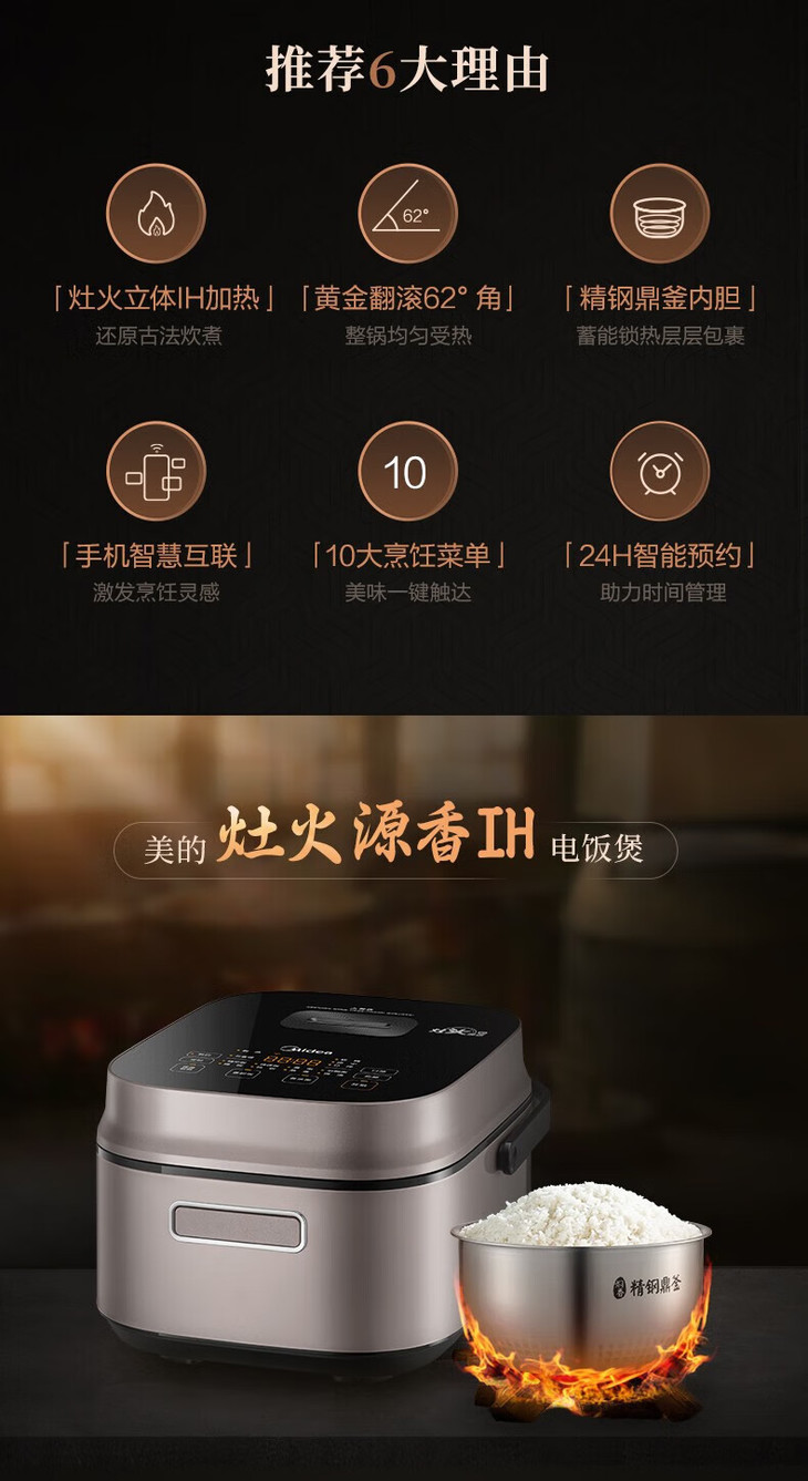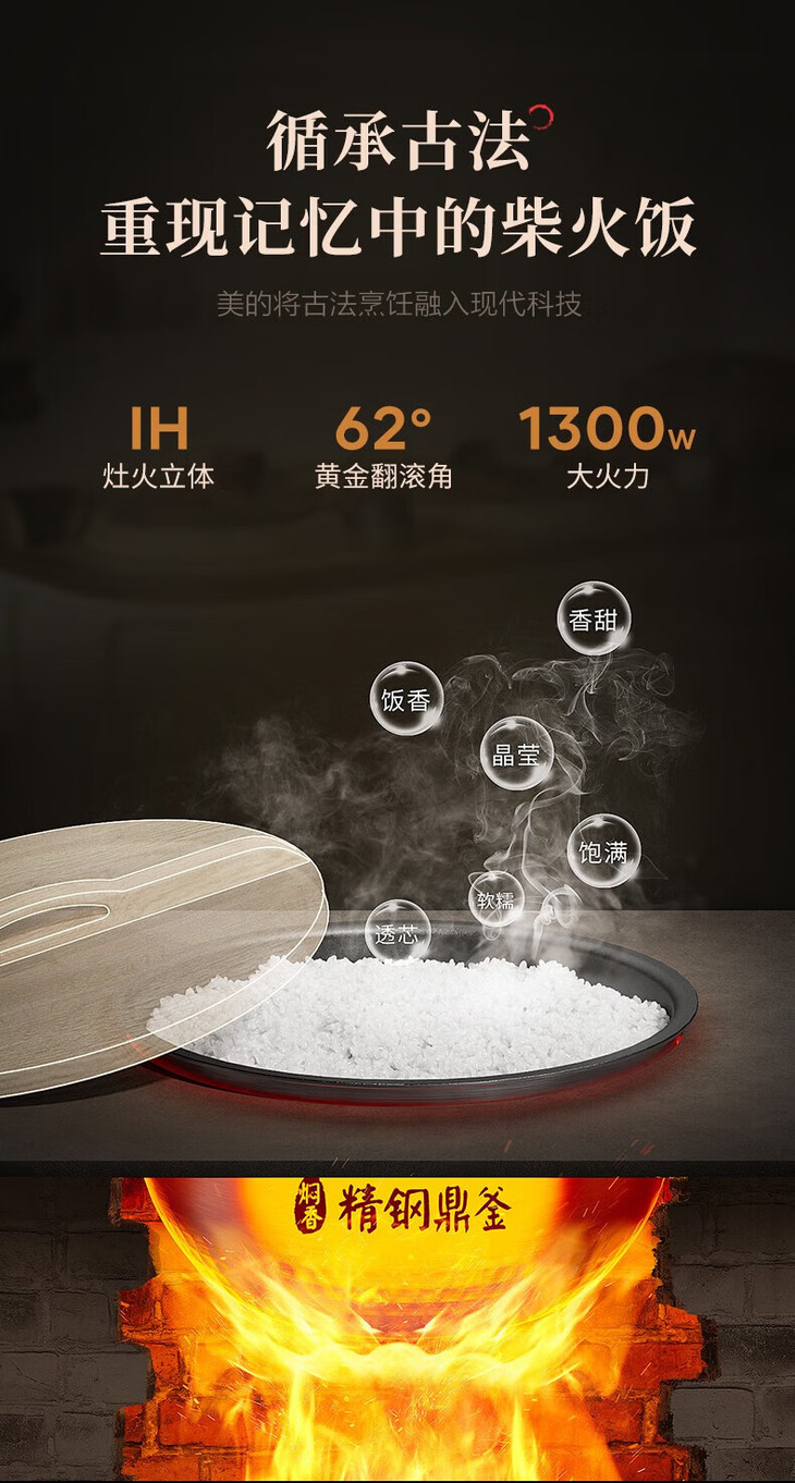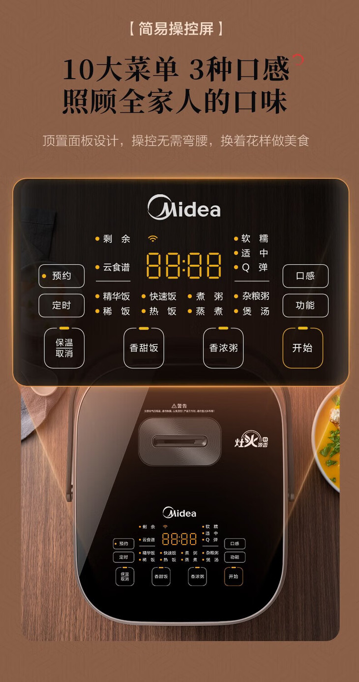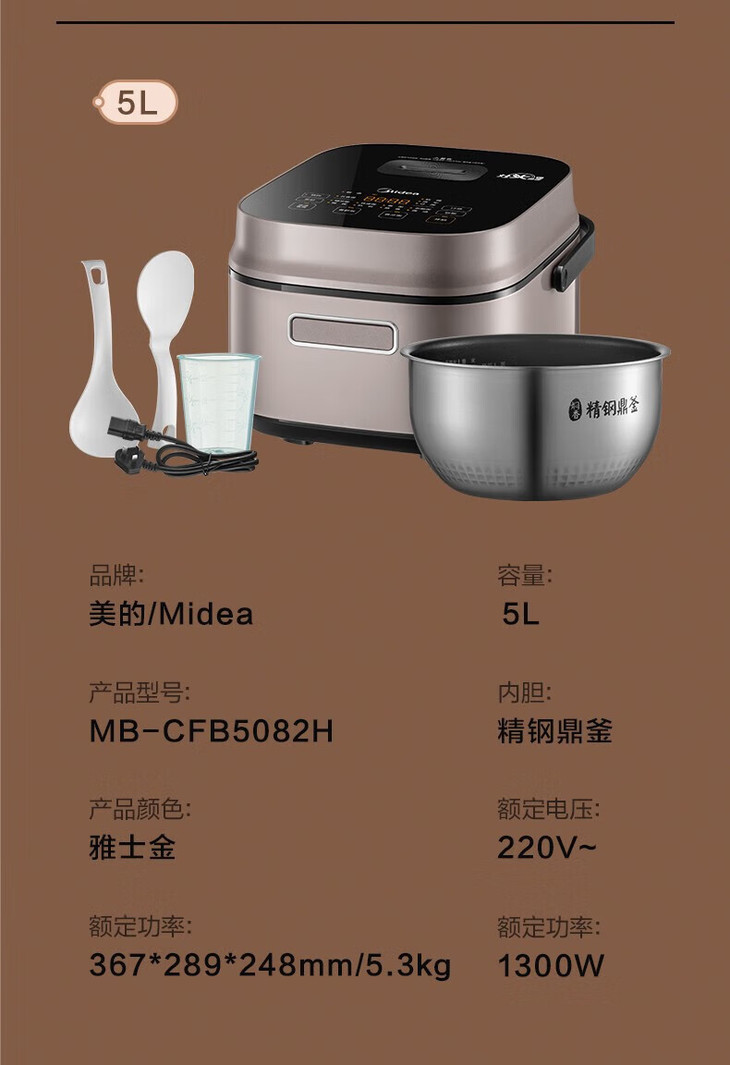 美的(509971)电饭煲家用大火力智能预约多功能焖煮电饭锅一键柴火饭 MB-CFB5082H