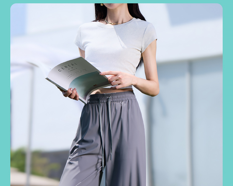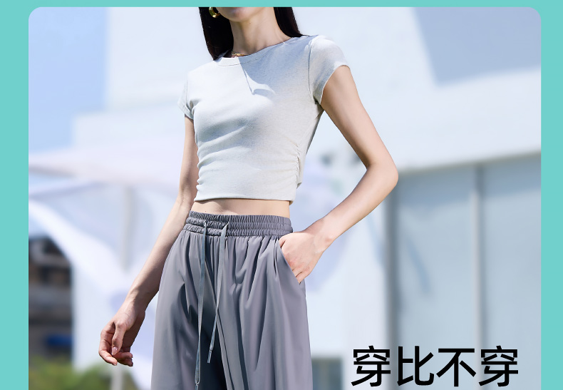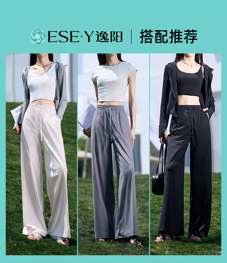 【冰皮凉爽阔腿裤】逸阳夏薄款高腰垂感显瘦休闲裤子6192
