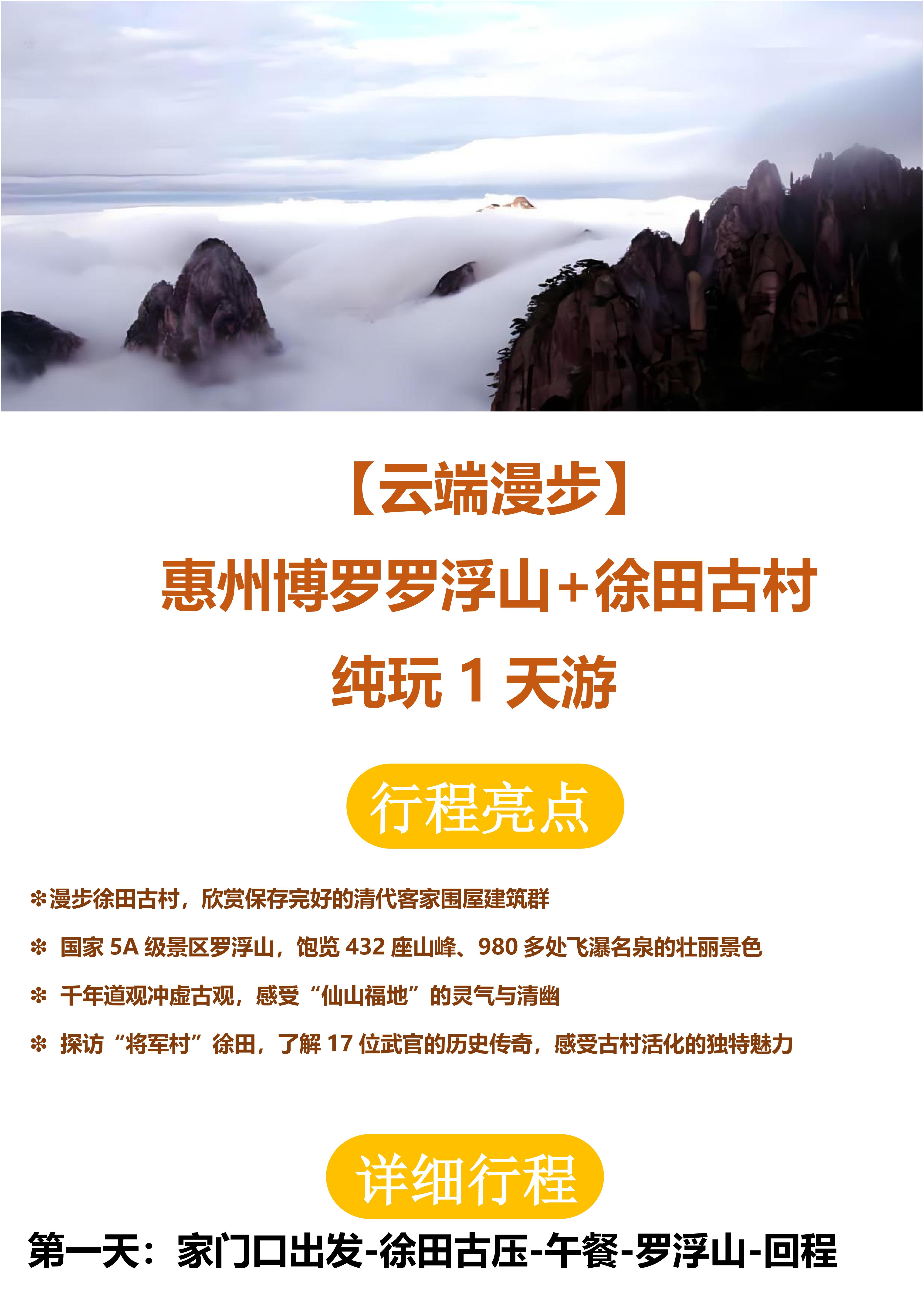 【云端漫步】惠州博罗罗浮山+徐田古村纯玩1天游
