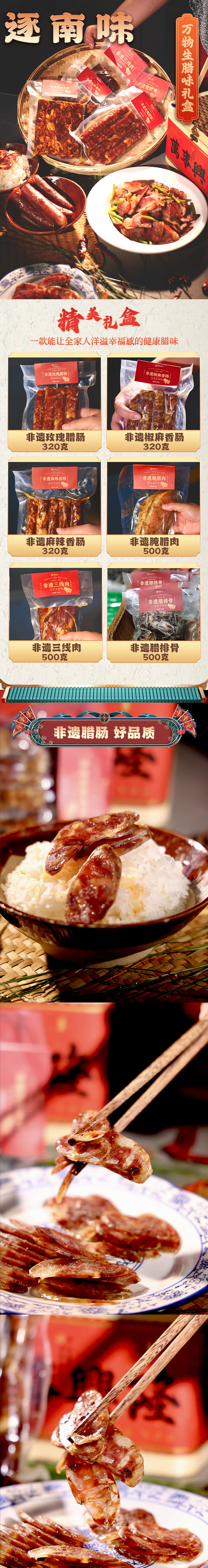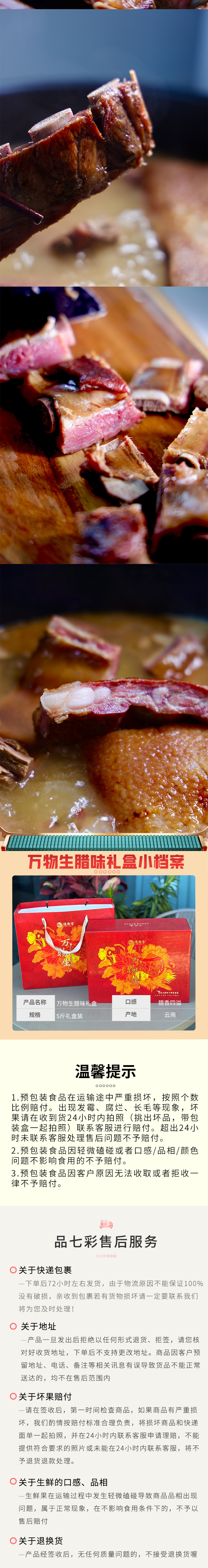 云南云南万物生腊味礼盒(320g原味腊肠*麻辣腊肠*椒麻腊肠*各1袋,500g后腿肉*1袋,500g三线肉*1袋,500g排骨*1袋)传统工艺 味觉传承 送礼佳品