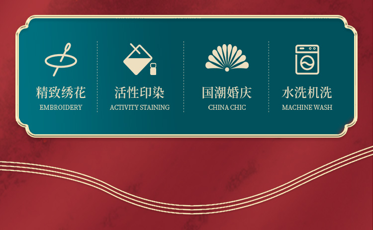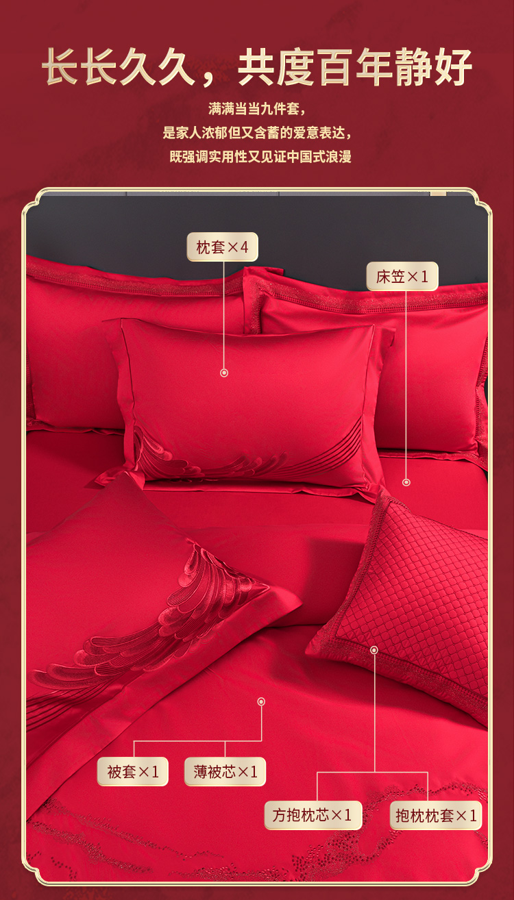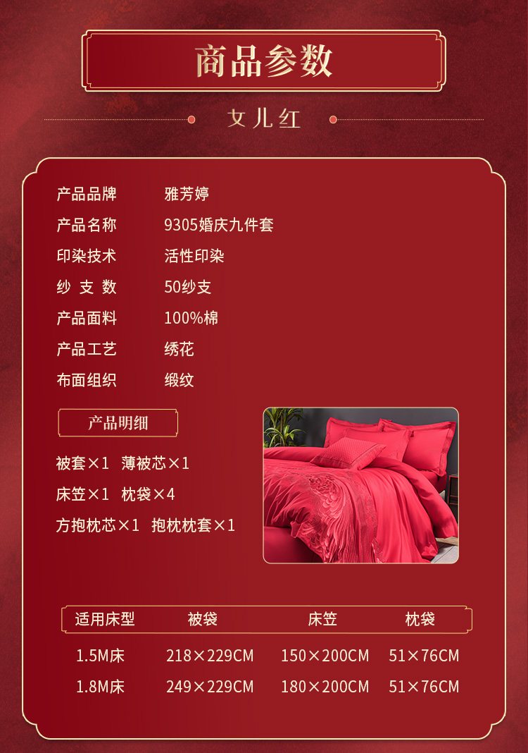 雅芳婷新中式全棉婚嫁九件套龙凤喜被结婚婚庆高级床上用品套件