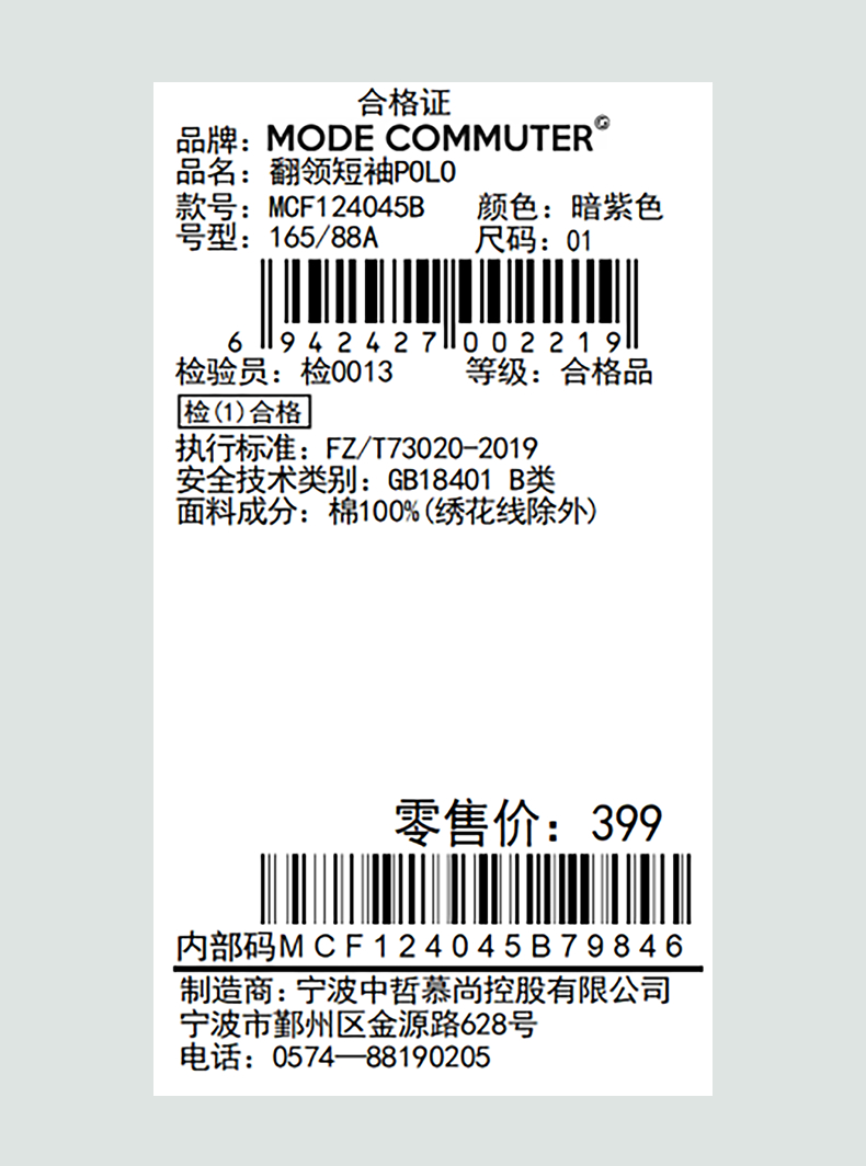MODE COMMUTER | MC全棉优质精纺棉纱翻领短袖POLOMCF124045B