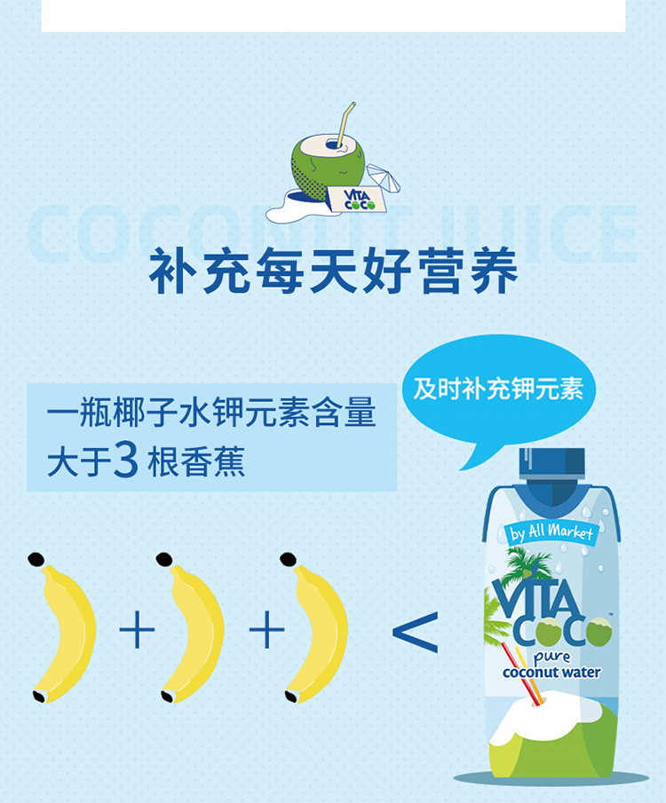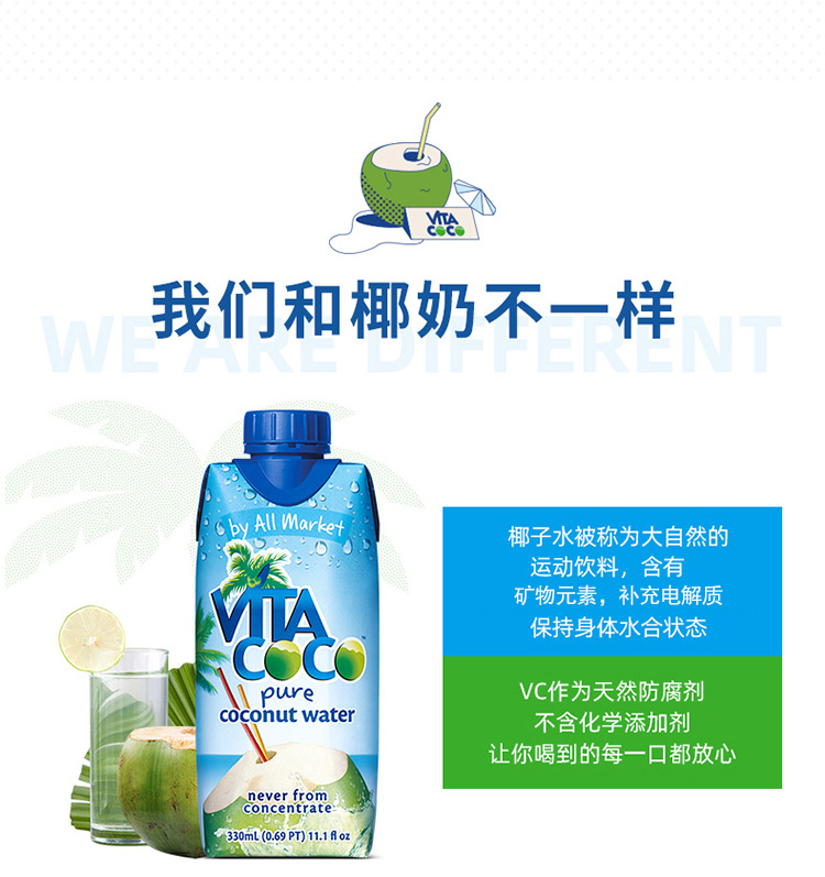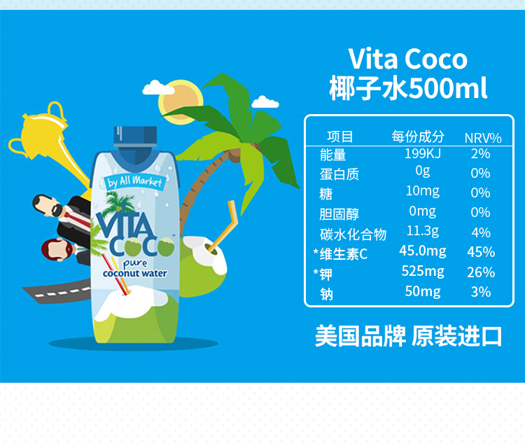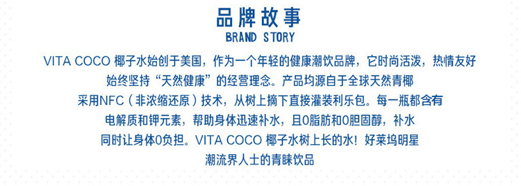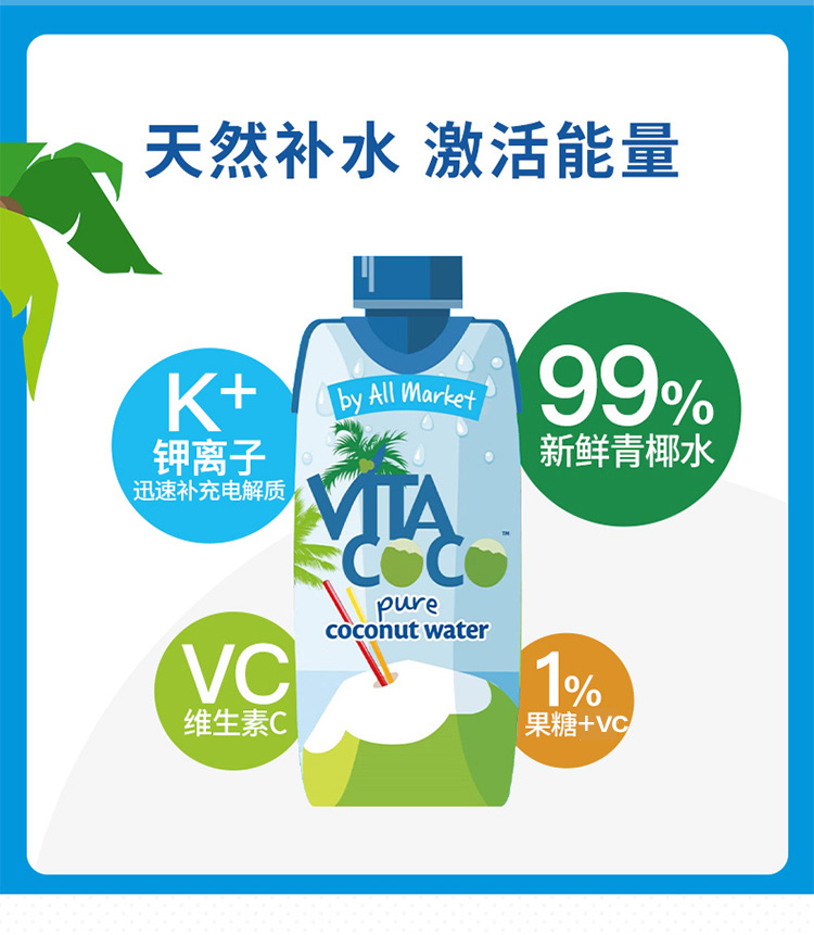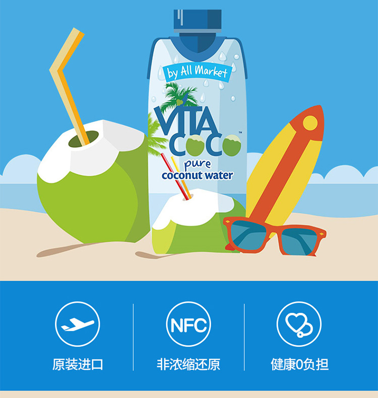 唯他可可(Vita Coco)椰子水 进口饮料 NFC果汁 天然原味椰子水 椰汁饮料 500ml*6瓶 整箱