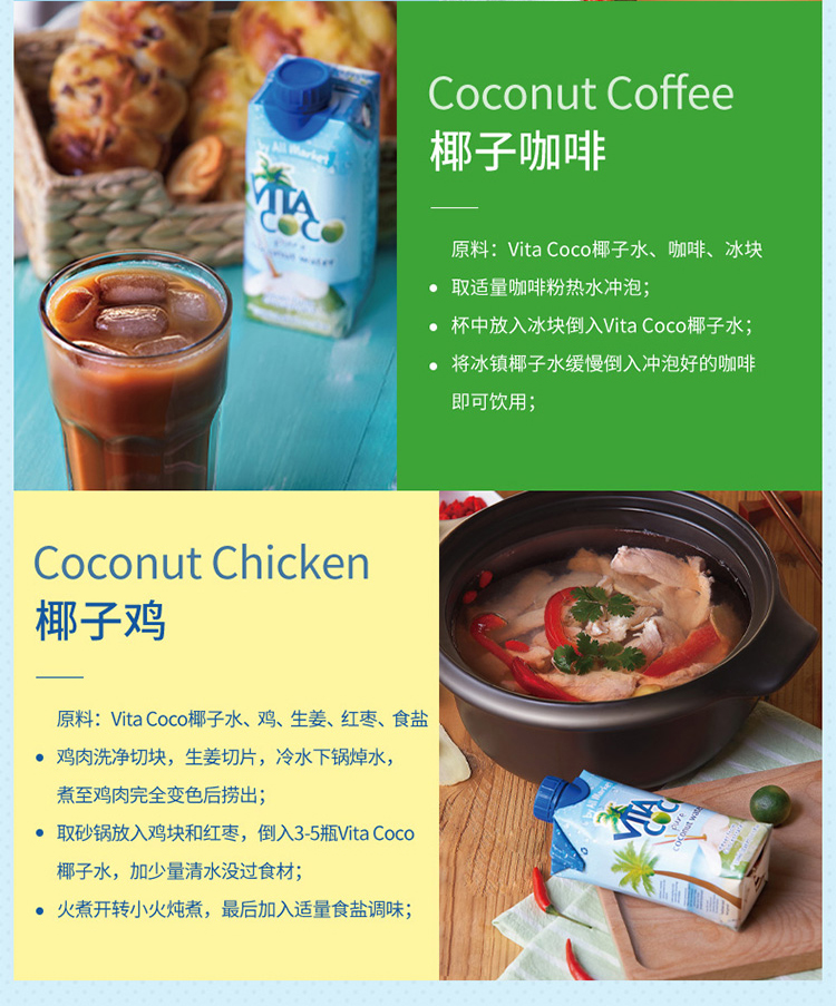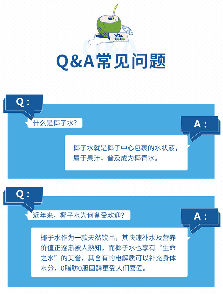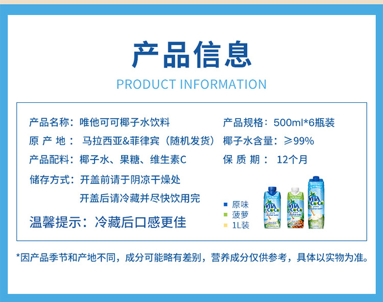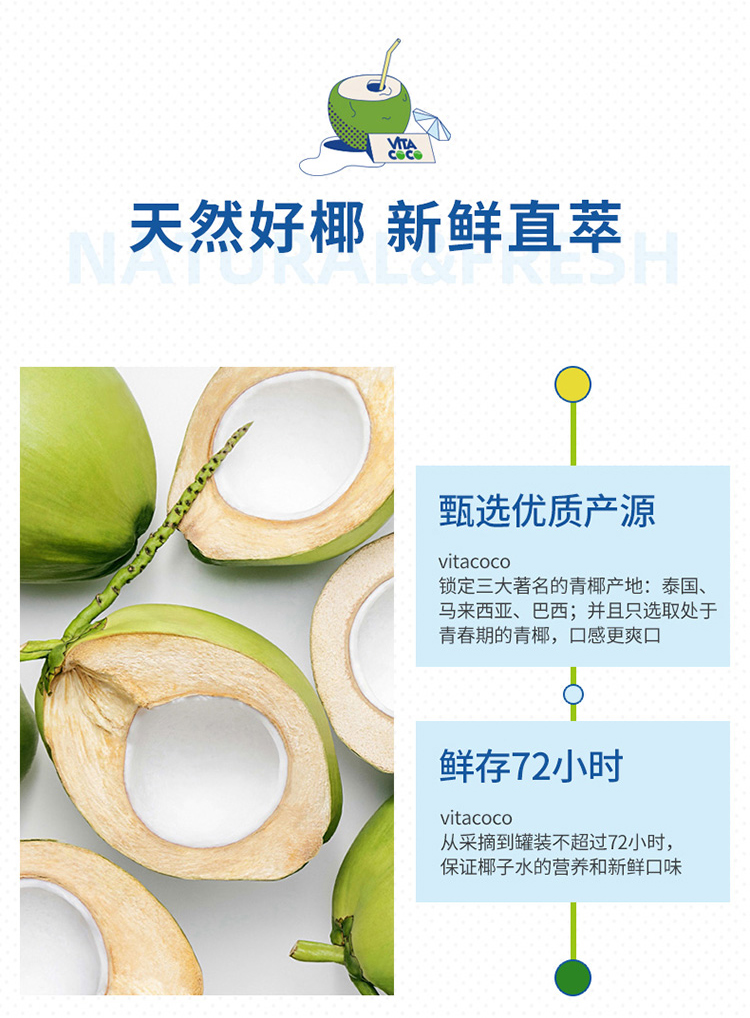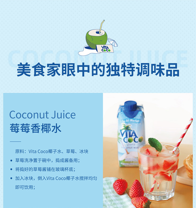 唯他可可(Vita Coco)椰子水 进口饮料 NFC果汁 天然原味椰子水 椰汁饮料 500ml*6瓶 整箱