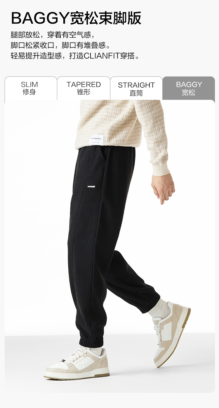 gxgjeans男装男士休闲裤25春新款纯色宽松舒适百搭卫裤运动校园束脚裤男K&C