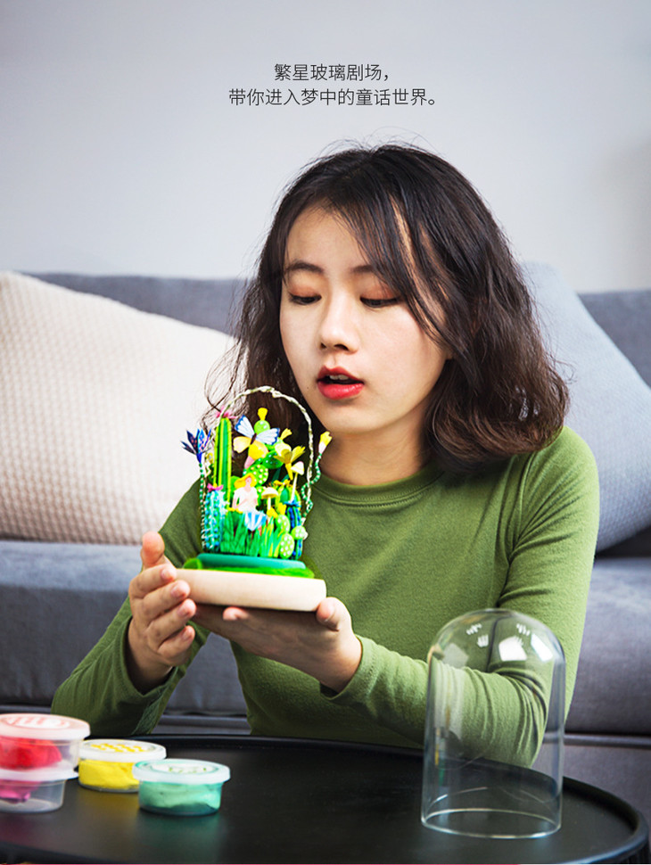 【DIY打造玻璃剧场 用粘土堆砌一个纯真童话世界】创意生日礼物 超轻粘土材料包 拼装摆件