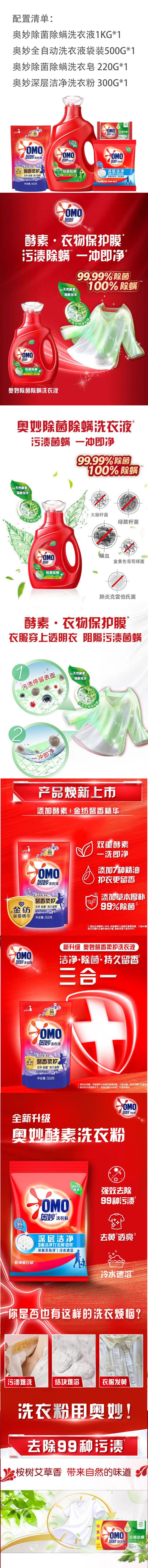 奥妙(OMO)洗衣液4.04斤组合装(洗衣液1kg+补充装500g+洗衣粉300g+洗衣皂220g)