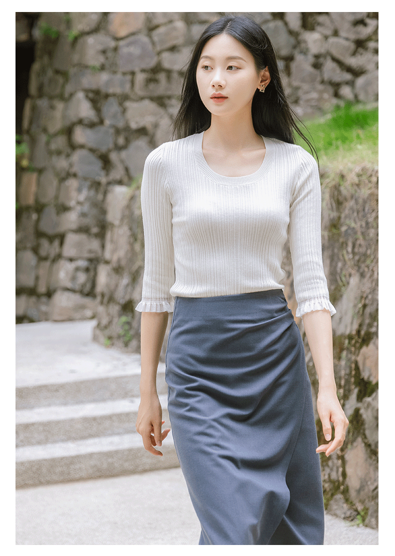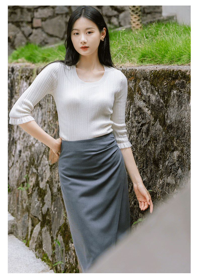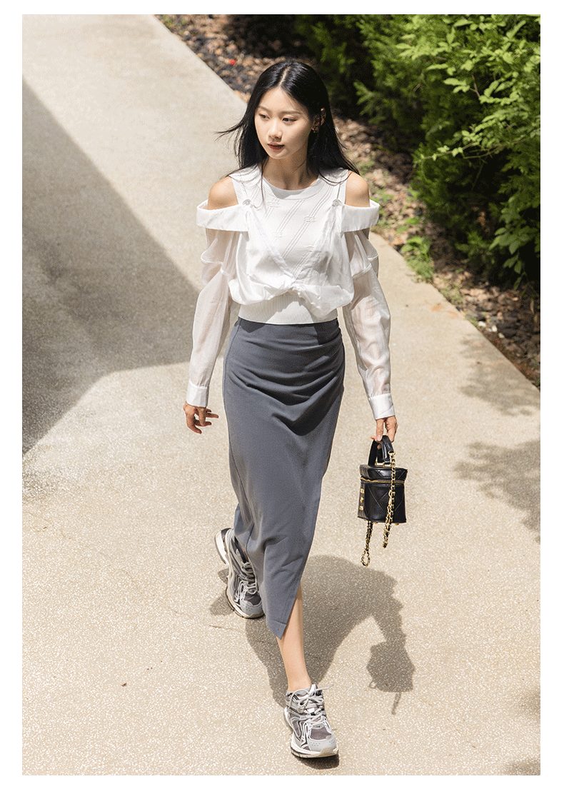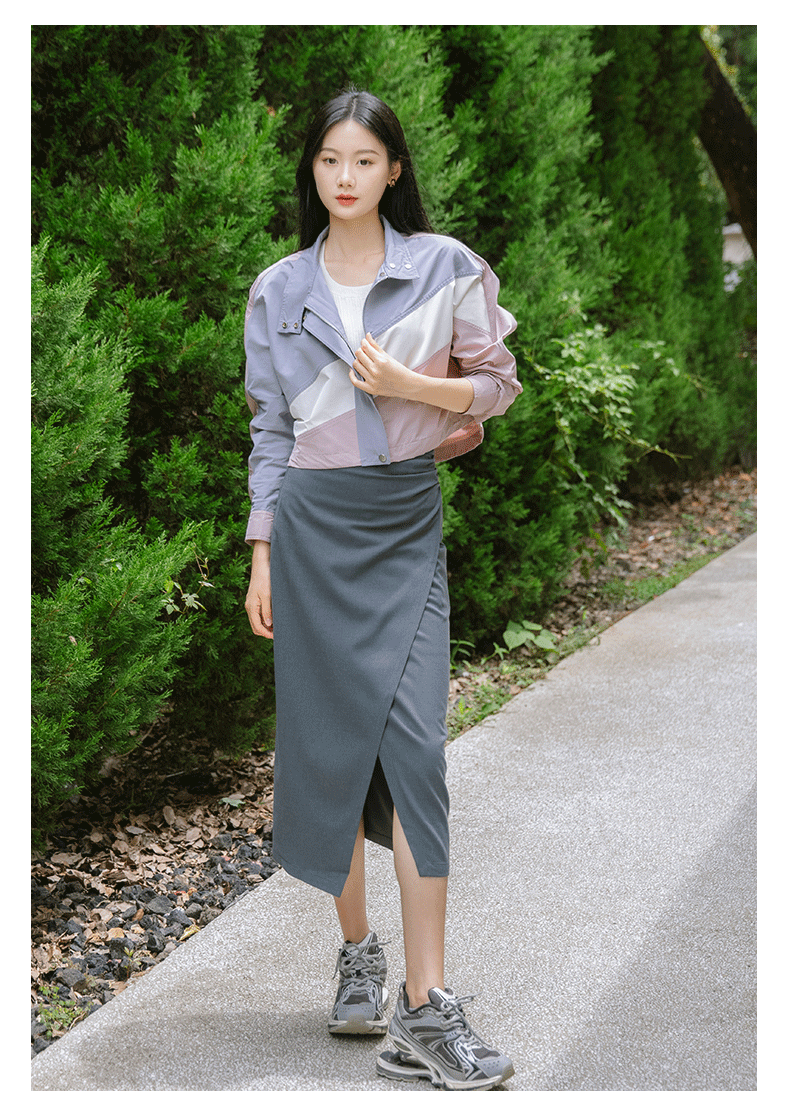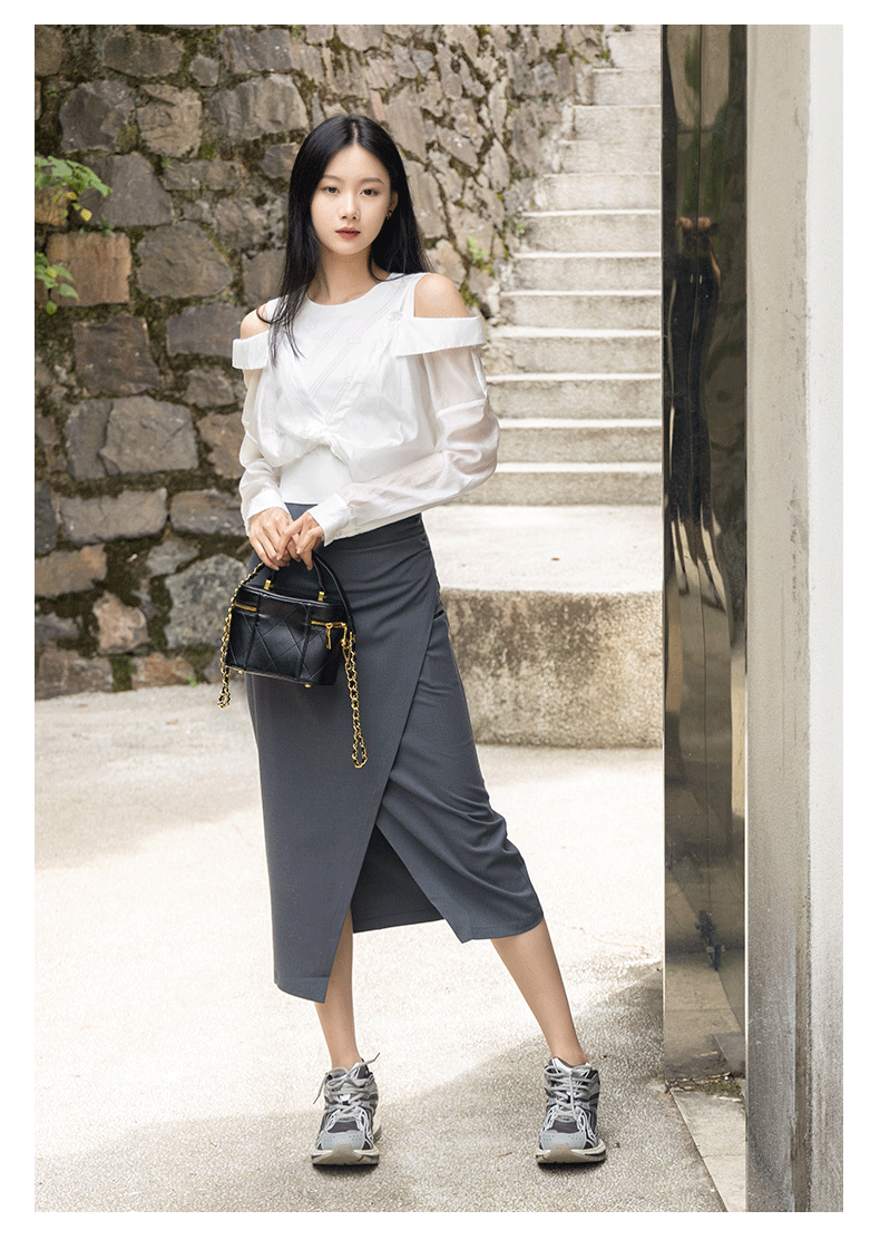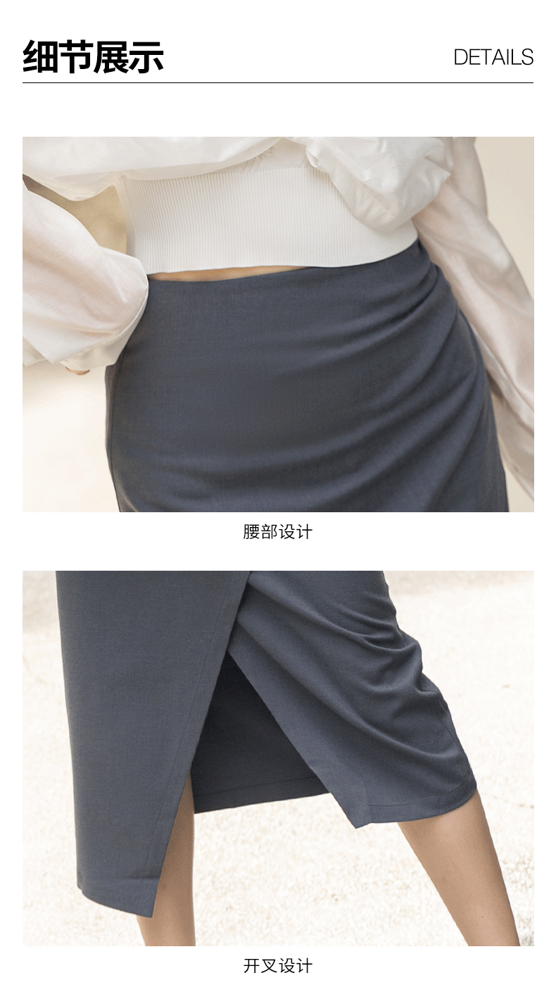 oldcolour秋季新款不规则开叉设计感高腰包臀半身裙女P340603A1