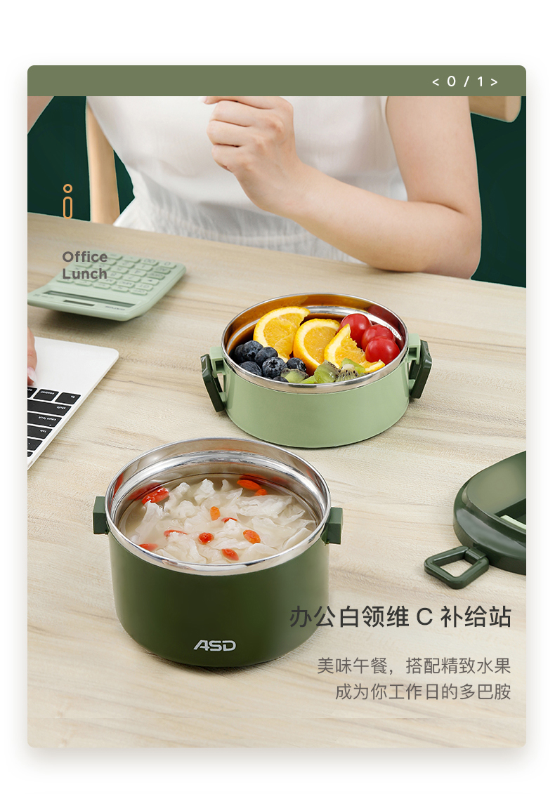 【分仓直发包邮】爱仕达臻韵系列分层保温饭盒RWS22H4WG-G