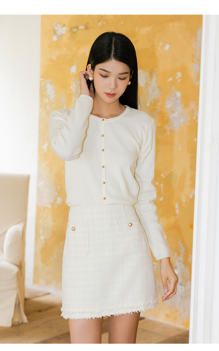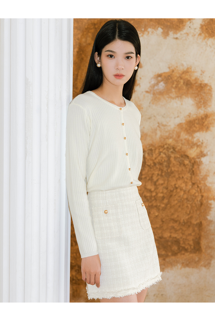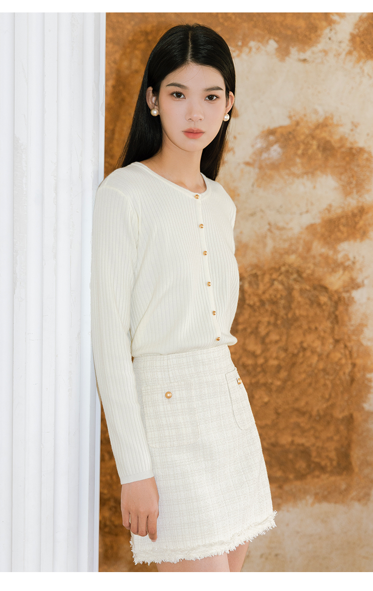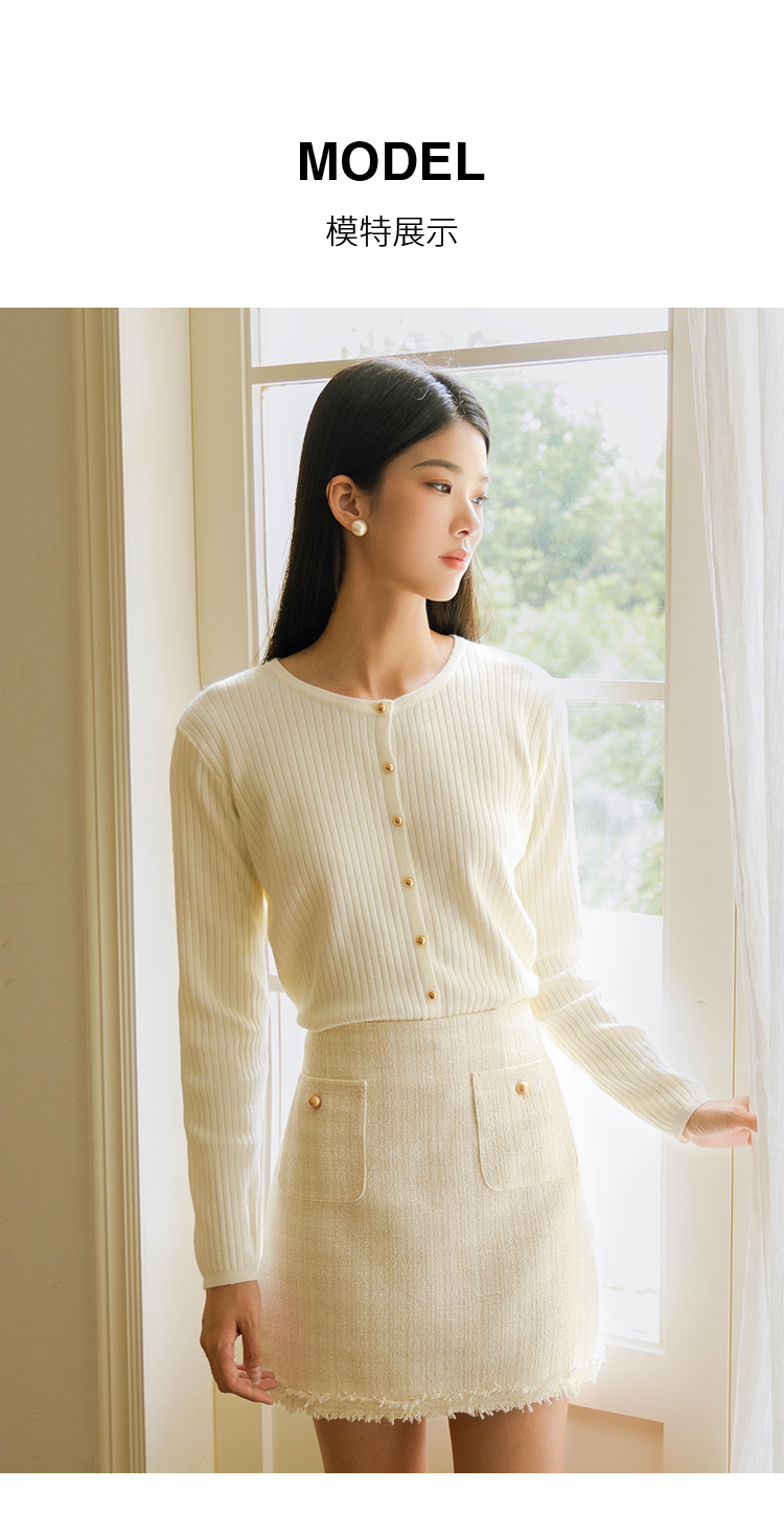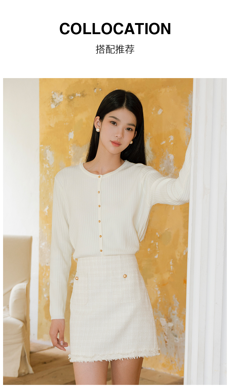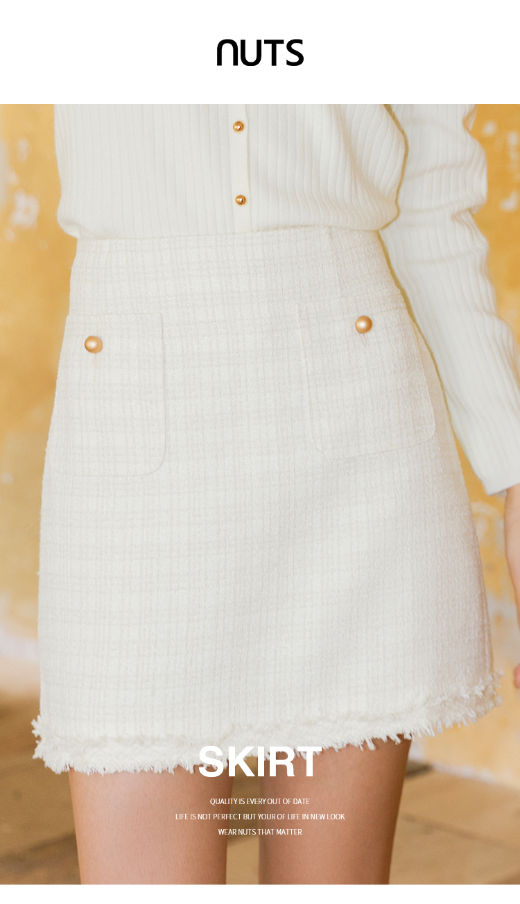 NUTS秋季新款小香风粗花呢高腰A字半身裙女4320601A1