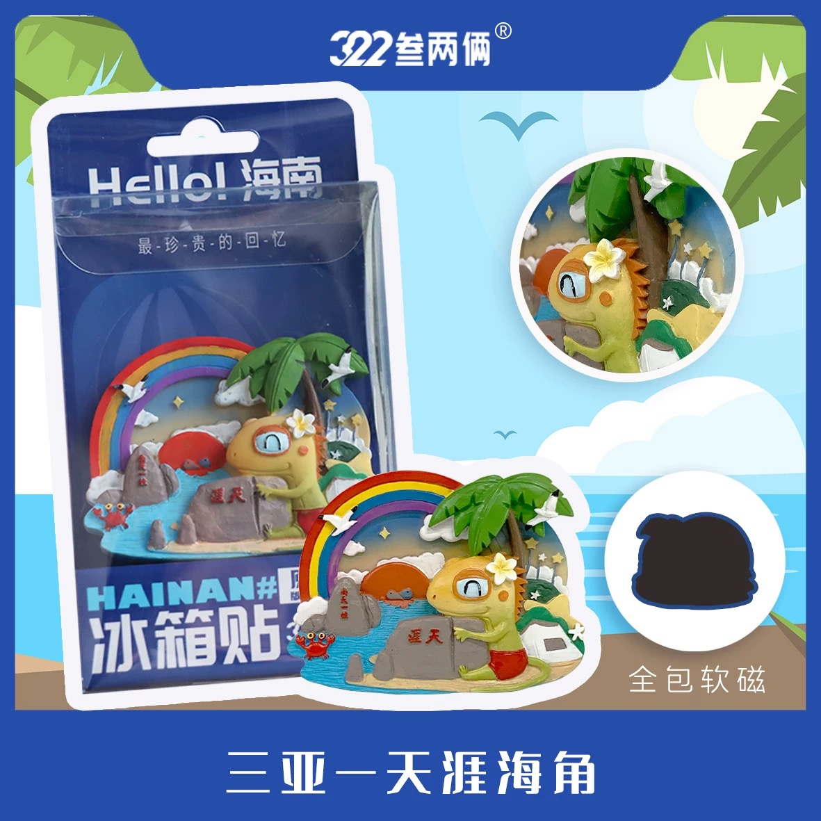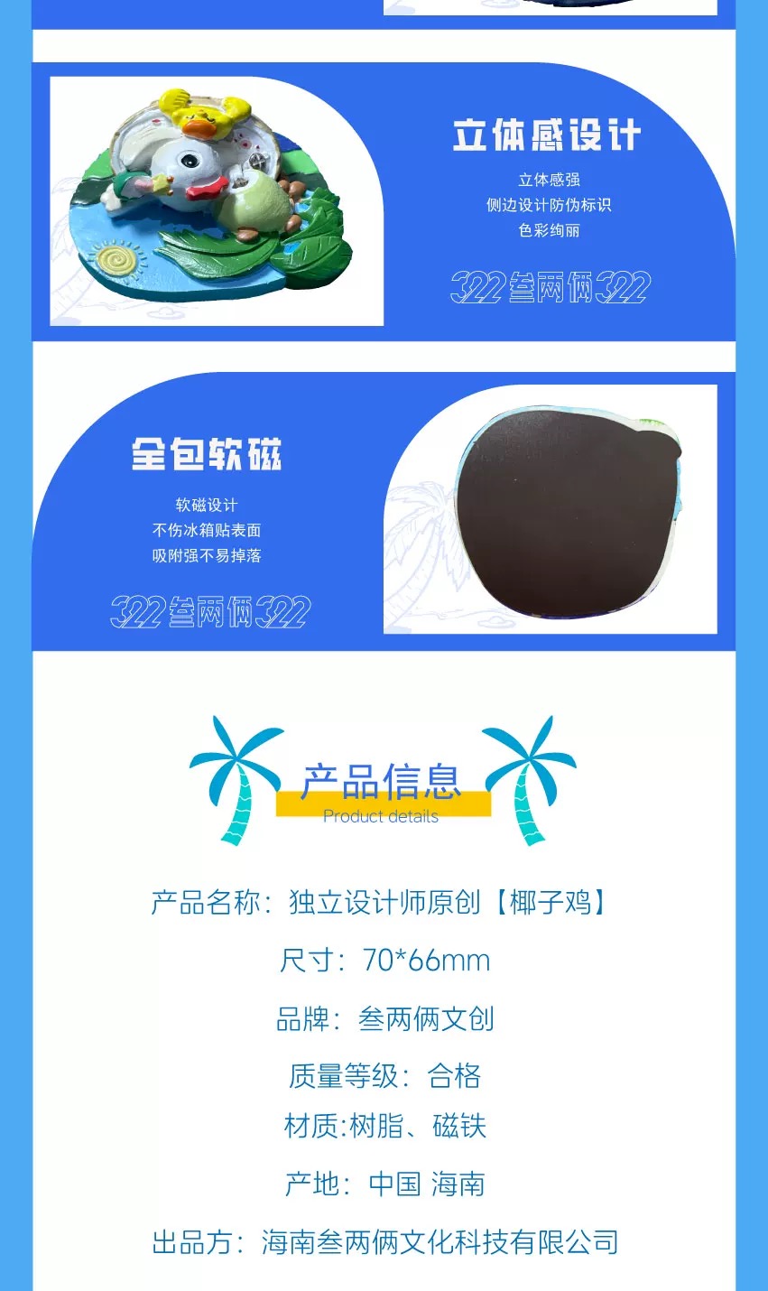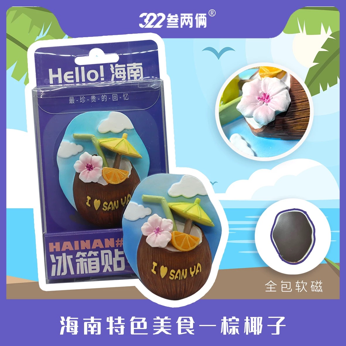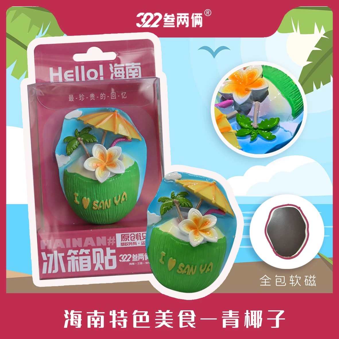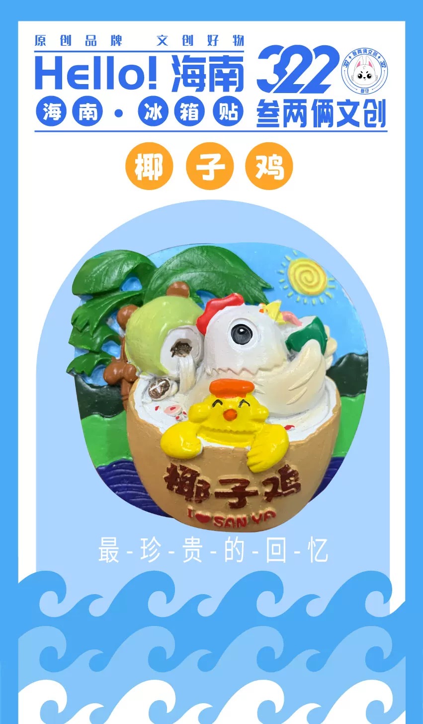 海南三亚叁两俩文创立体椰子鸡冰箱贴创意磁吸装饰旅游纪念品礼物多款可选