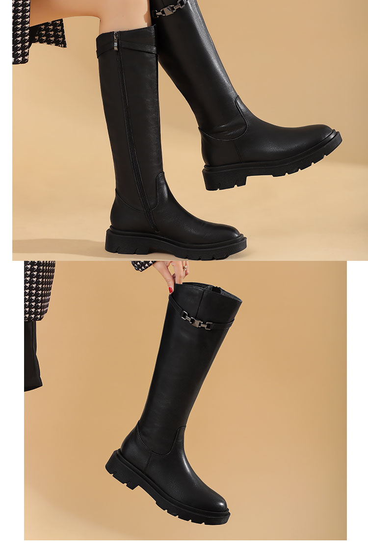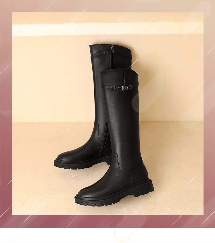西村名物2021冬季新款帅气英伦风骑士靴长筒靴超长靴女皮靴X21DQ46201