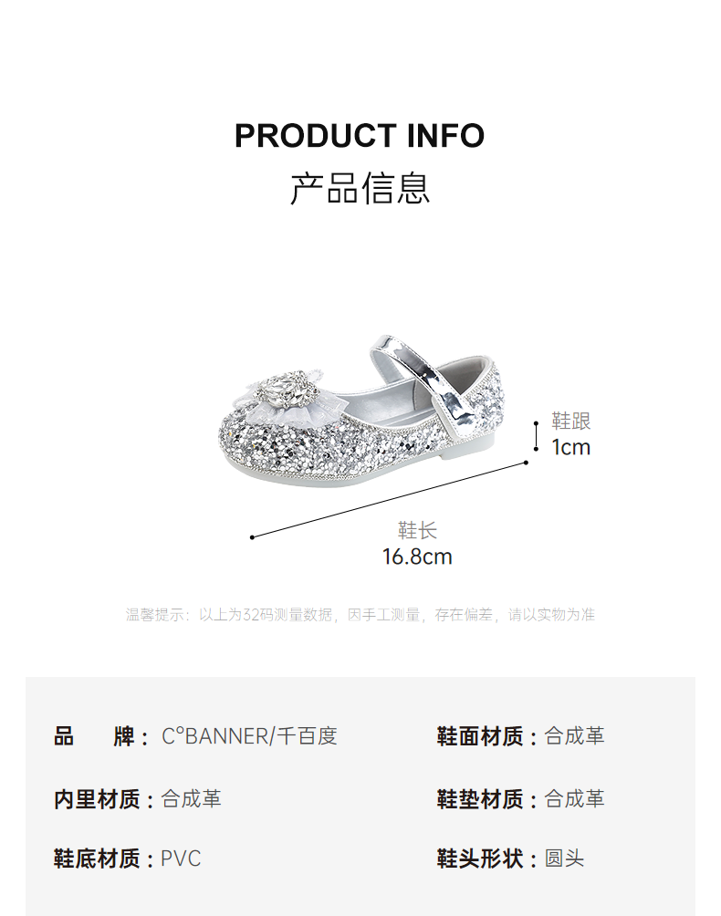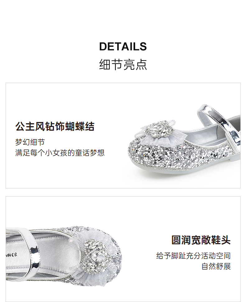 千百度2026春季童鞋公主风钻饰蝴蝶结梦幻细节公主鞋A26161013