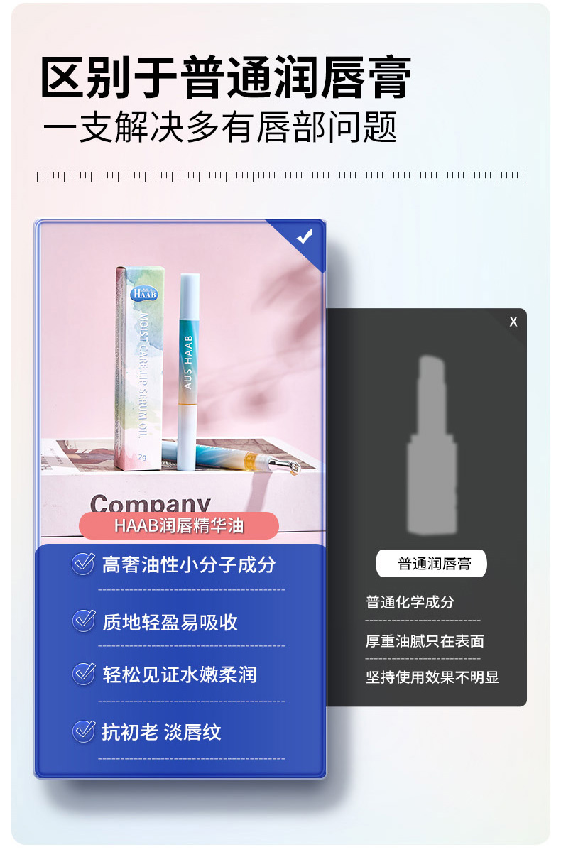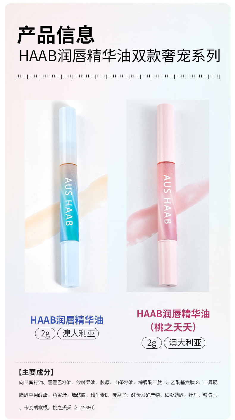 唇部抗初老神器!HAAB澳洲原装进口唇部精华油 不添加香精