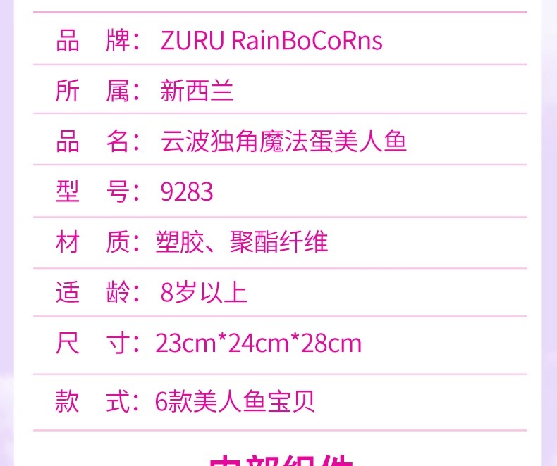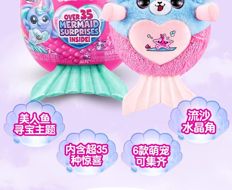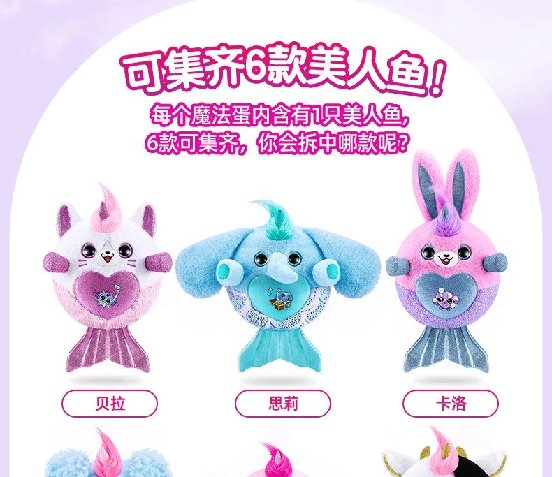 ZURU 云波独角魔法蛋美人鱼 盲盒女孩儿童玩具毛绒公仔生日礼物 8岁+