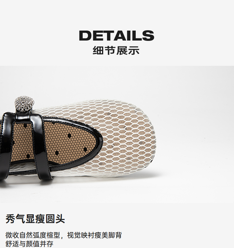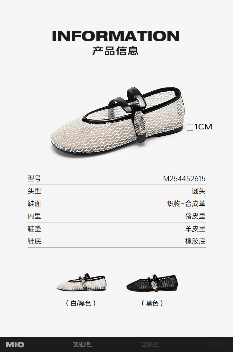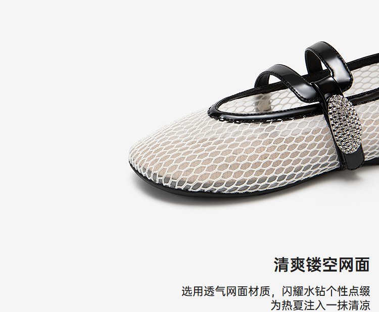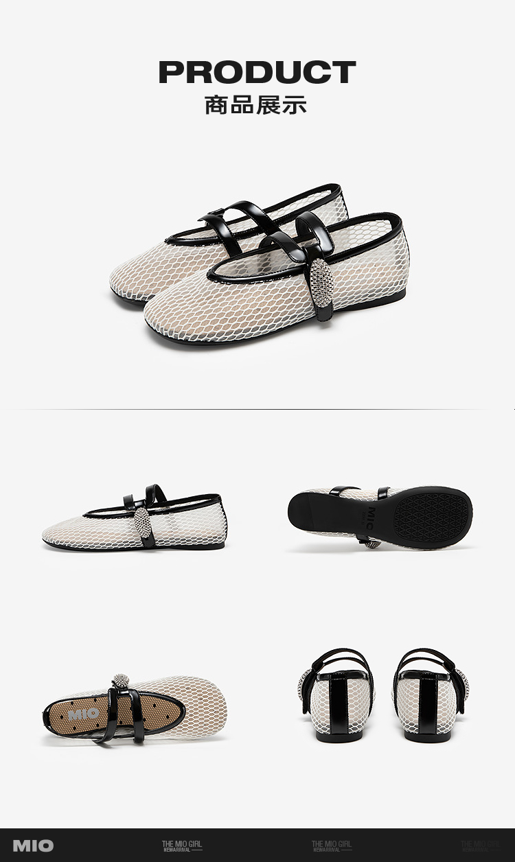 MIO米奥玛丽珍女新款钻饰魔术贴一字带渔网鞋平底单鞋M254452615
