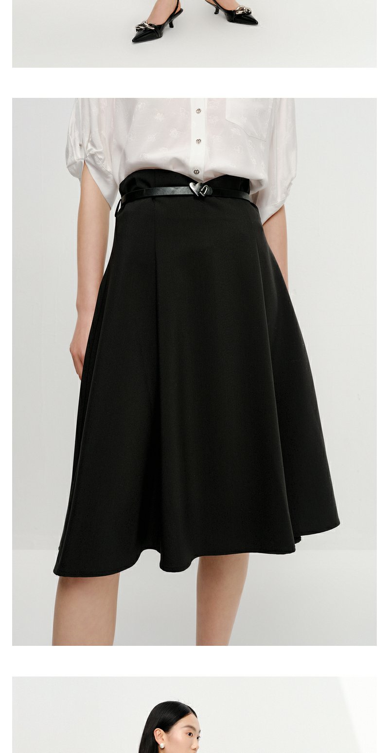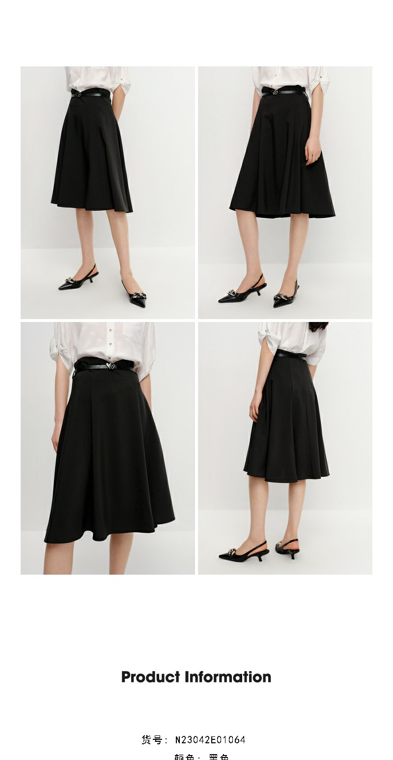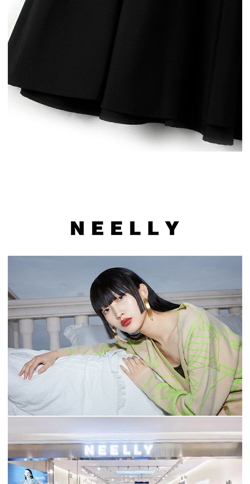 NEELLY纳俪商场同款黑色半身裙女高腰显瘦伞裙通勤A字过膝裙夏季N23042E01064