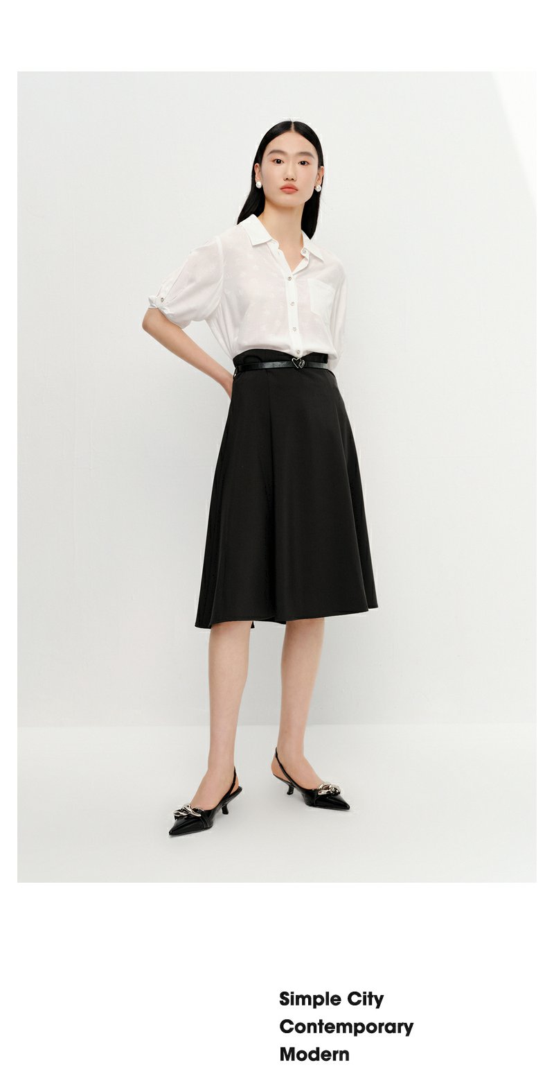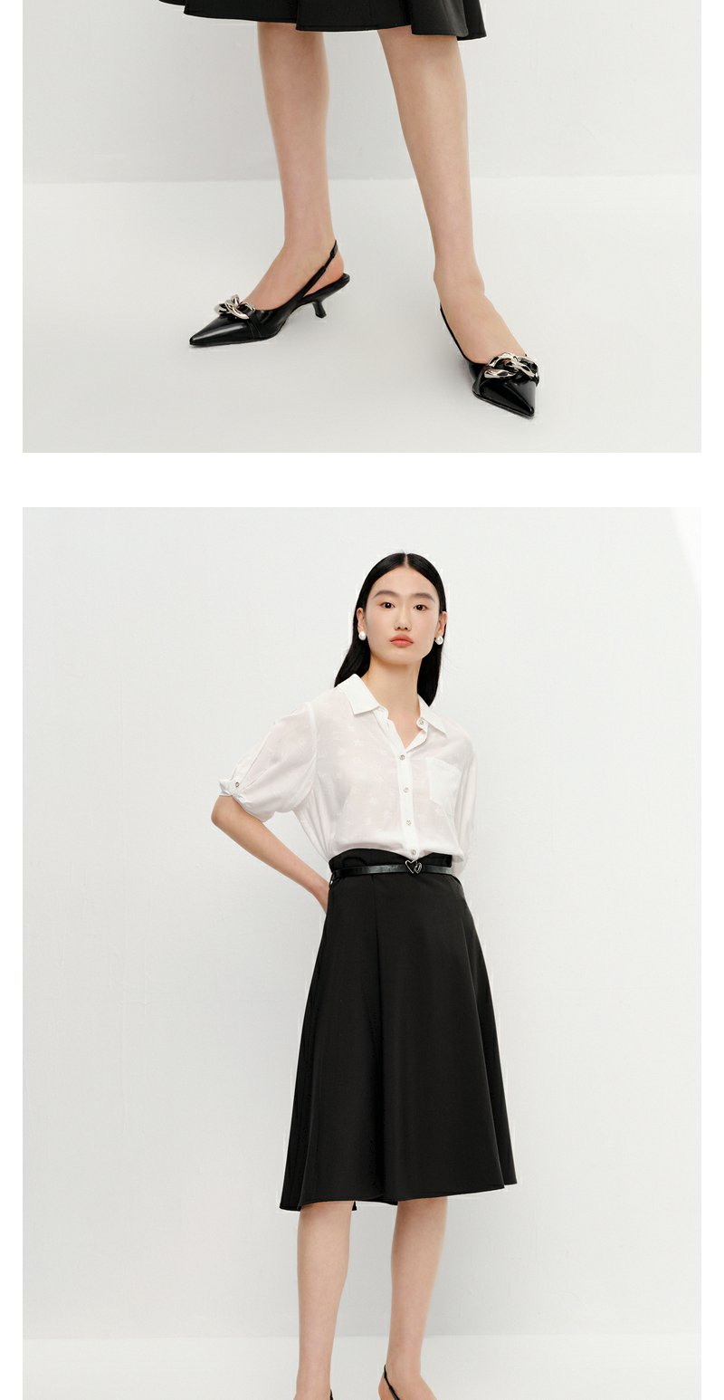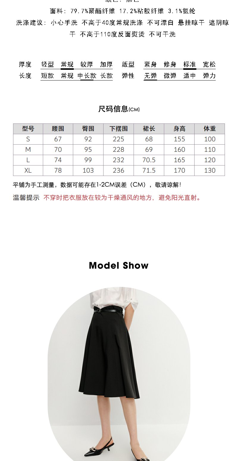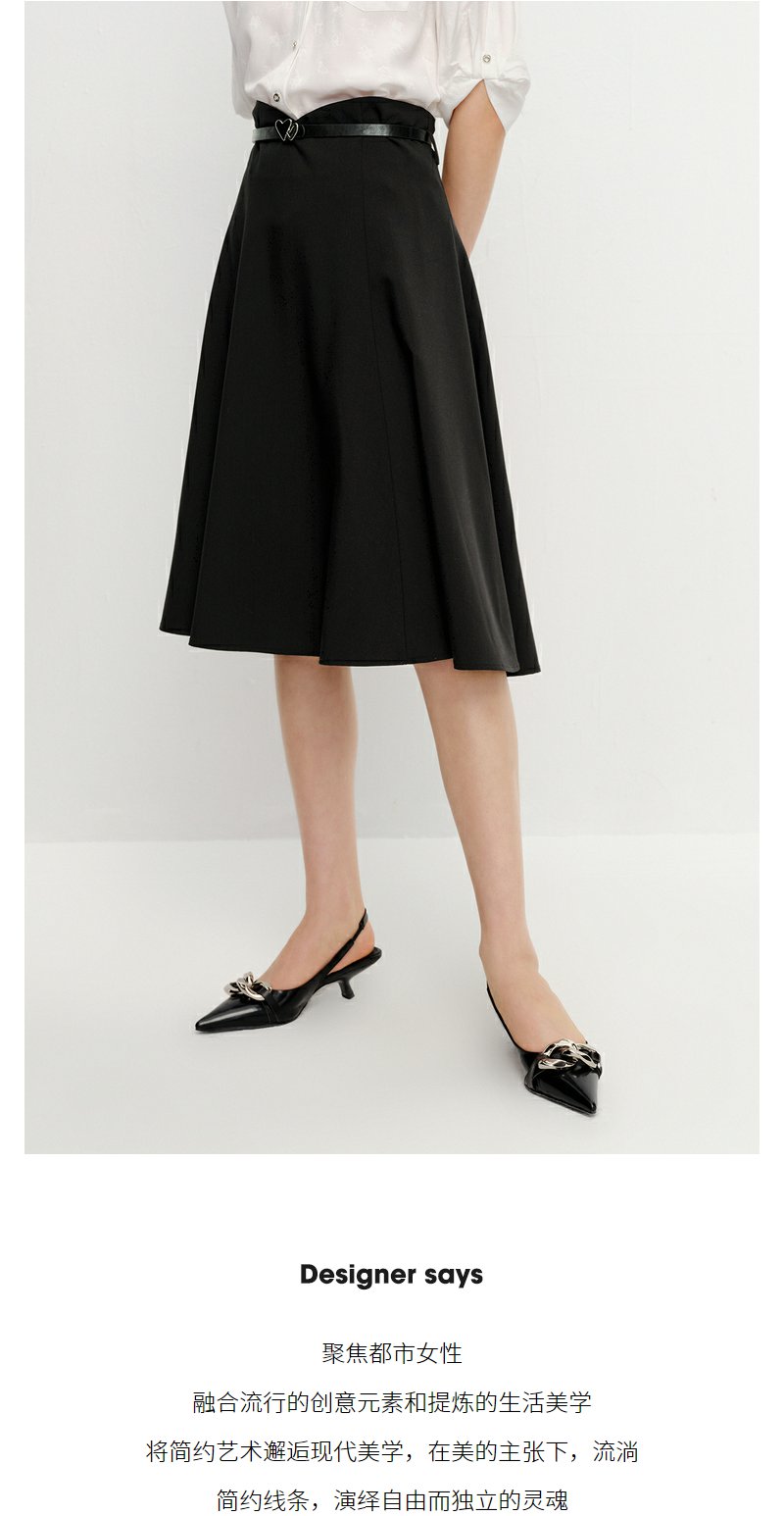 NEELLY纳俪商场同款黑色半身裙女高腰显瘦伞裙通勤A字过膝裙夏季N23042E01064