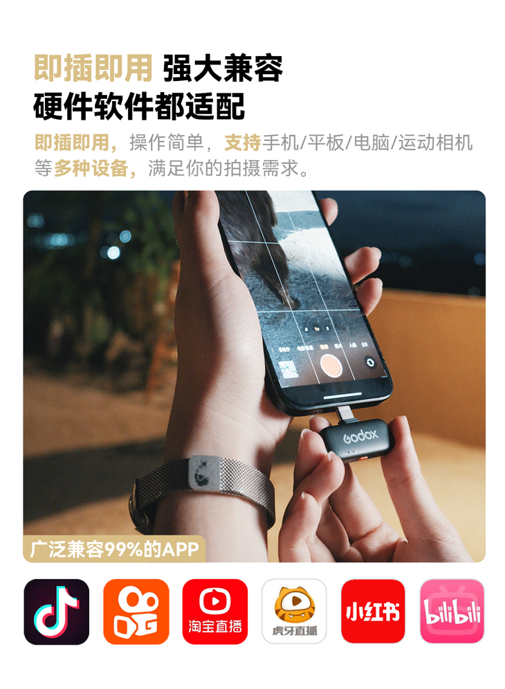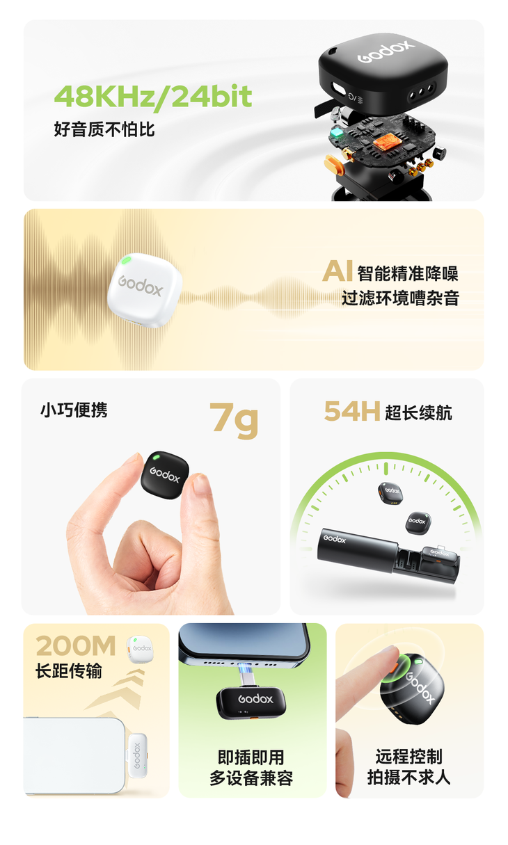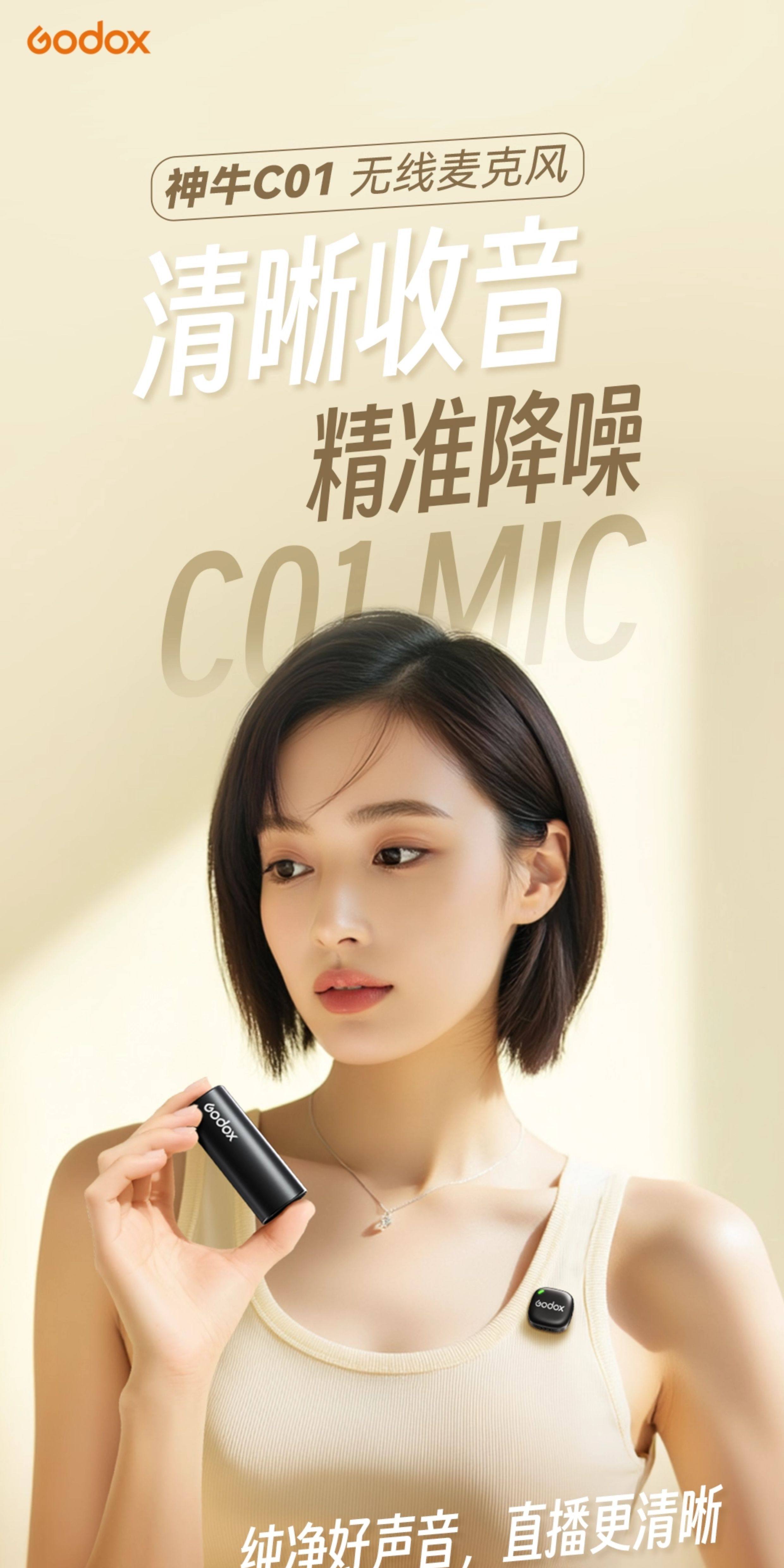 神牛(Godox)C01无线领夹麦克风Type-c安卓版一拖一小蜜蜂直播间录音vlog视频收音mini纽扣麦克风