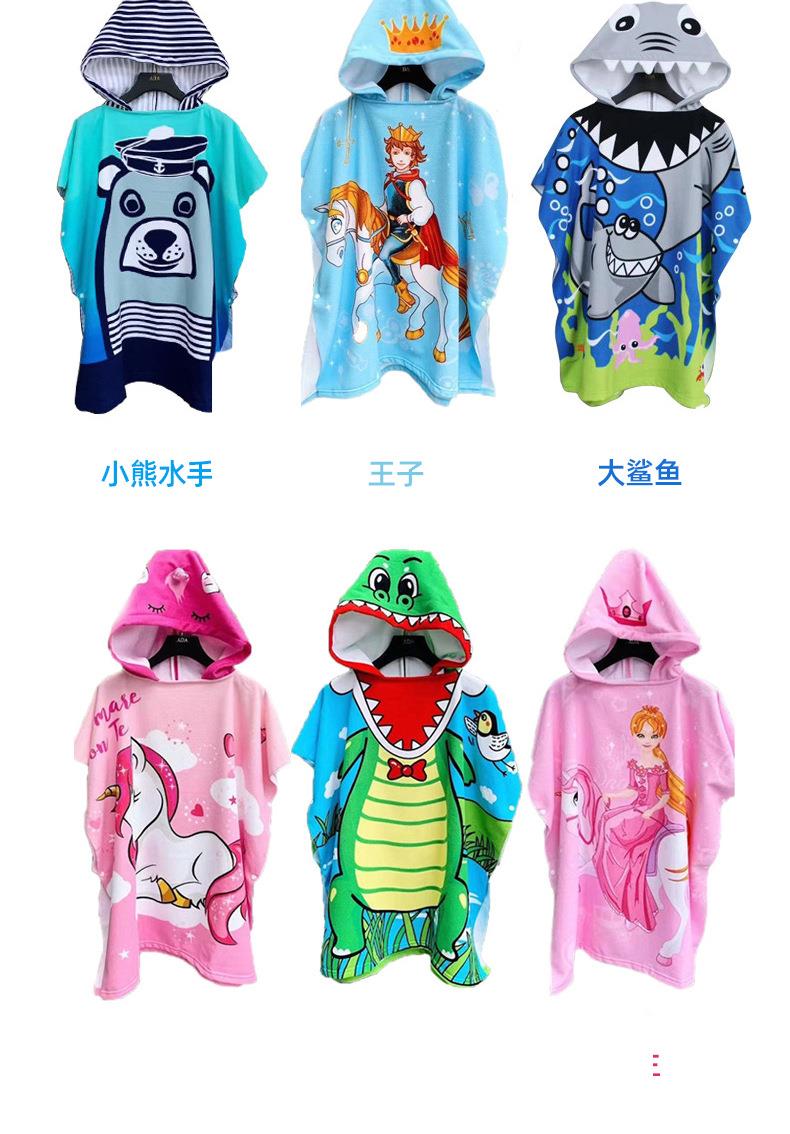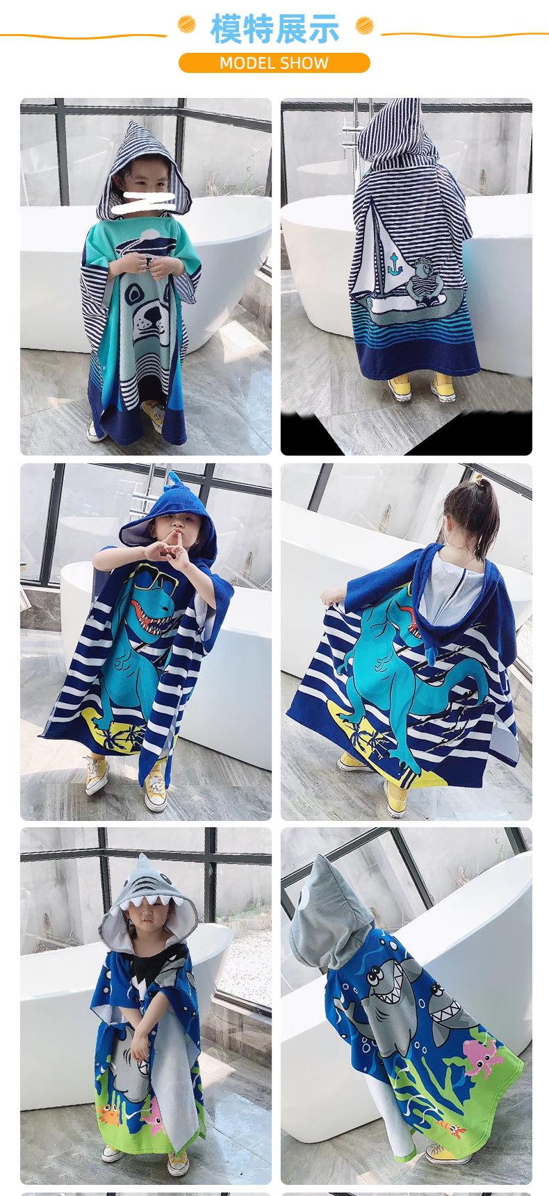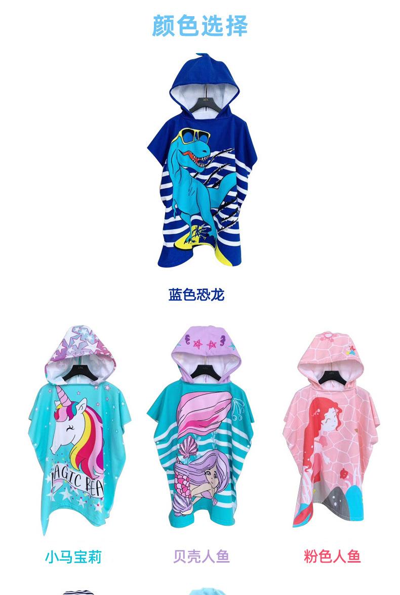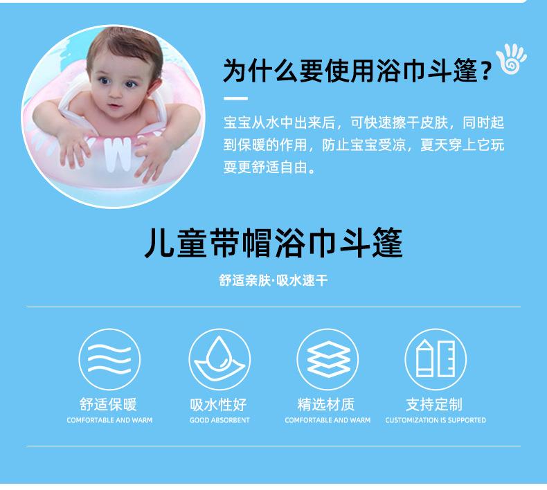 宝宝连帽浴巾卡通带帽婴儿浴袍沙滩儿童披风大号吸水儿童浴巾斗篷