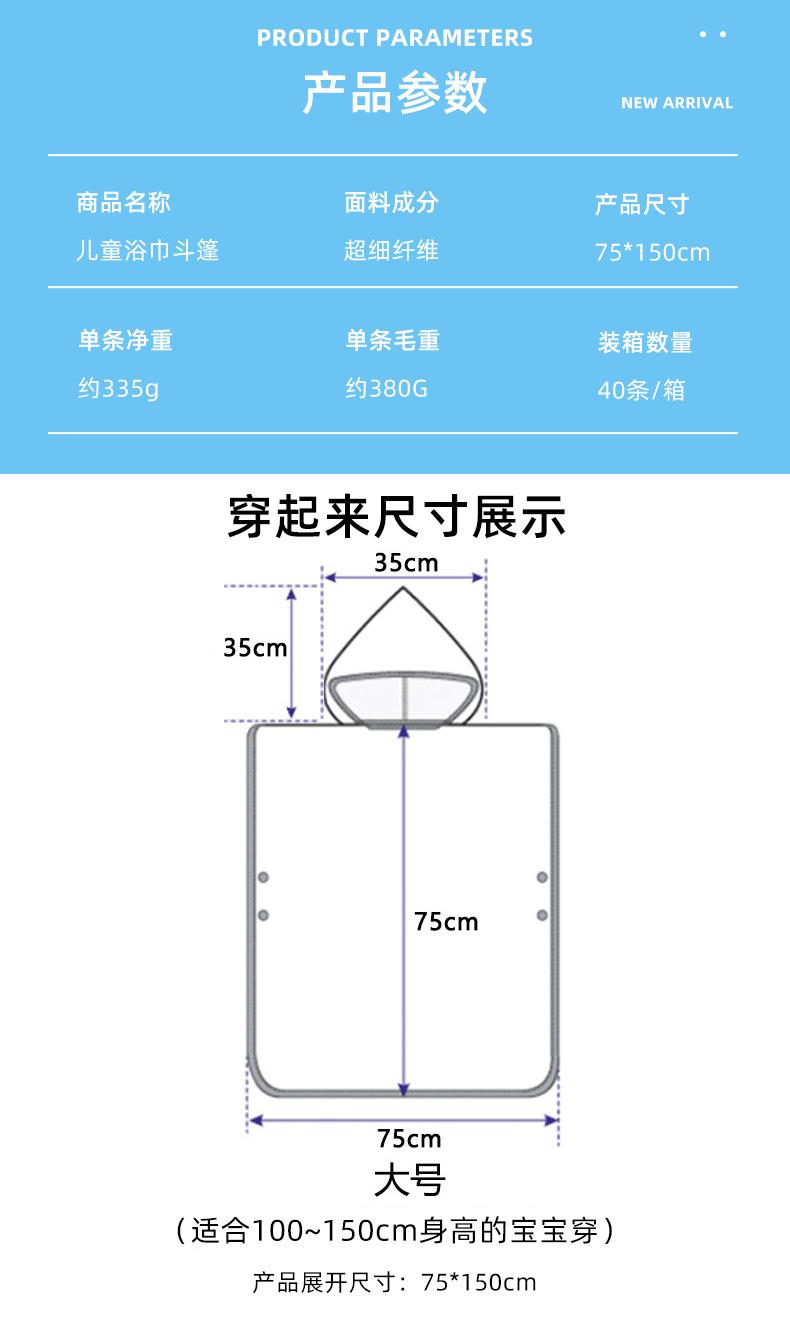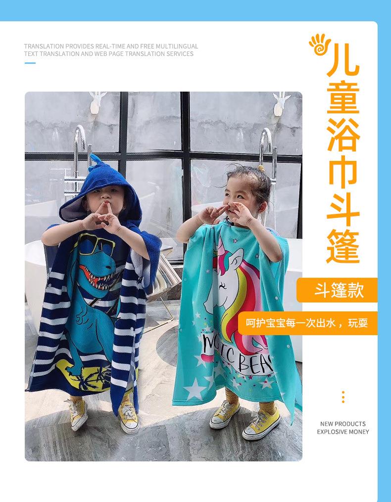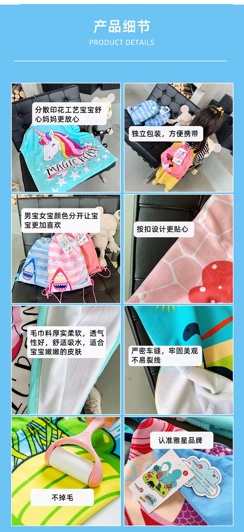 宝宝连帽浴巾卡通带帽婴儿浴袍沙滩儿童披风大号吸水儿童浴巾斗篷